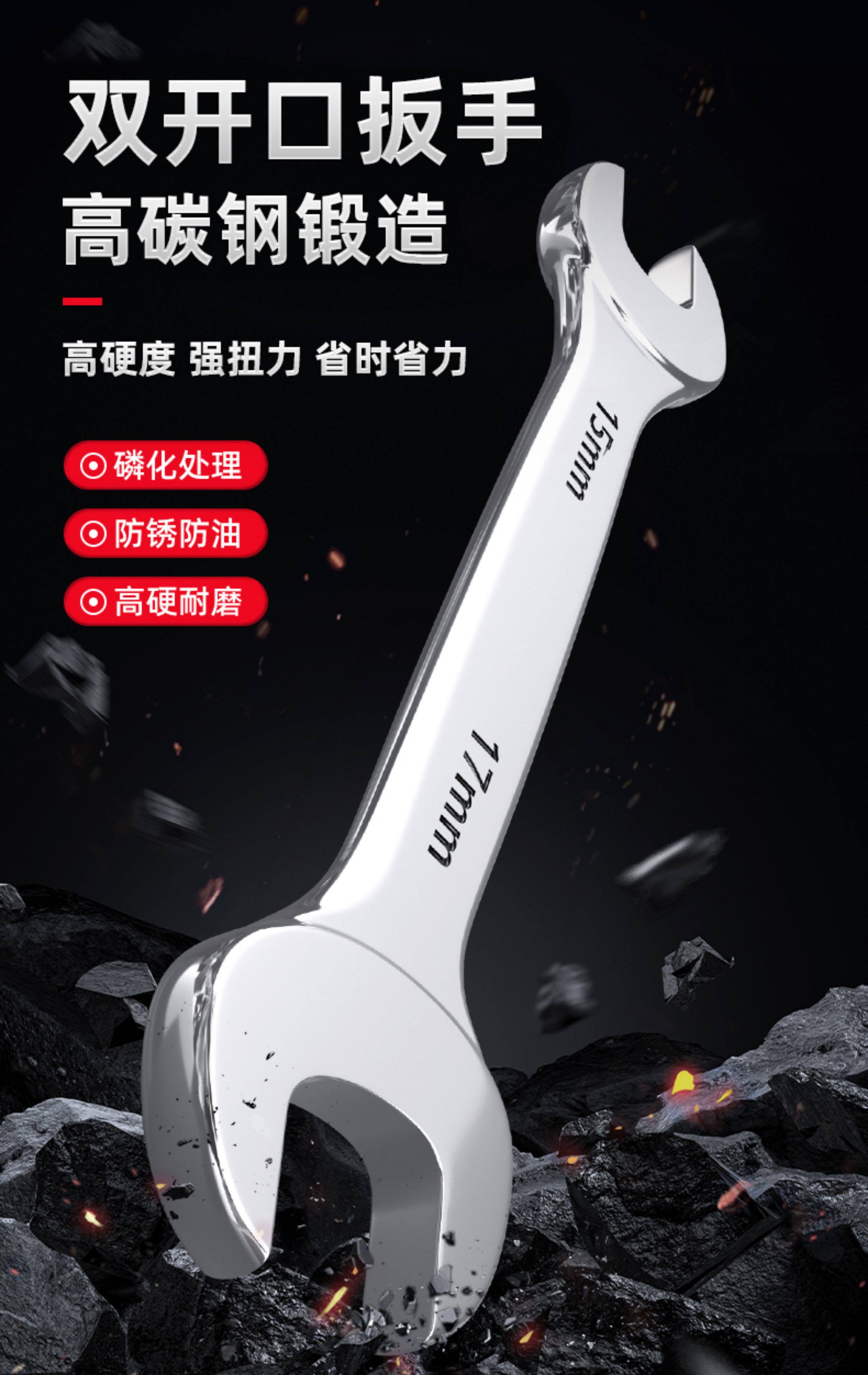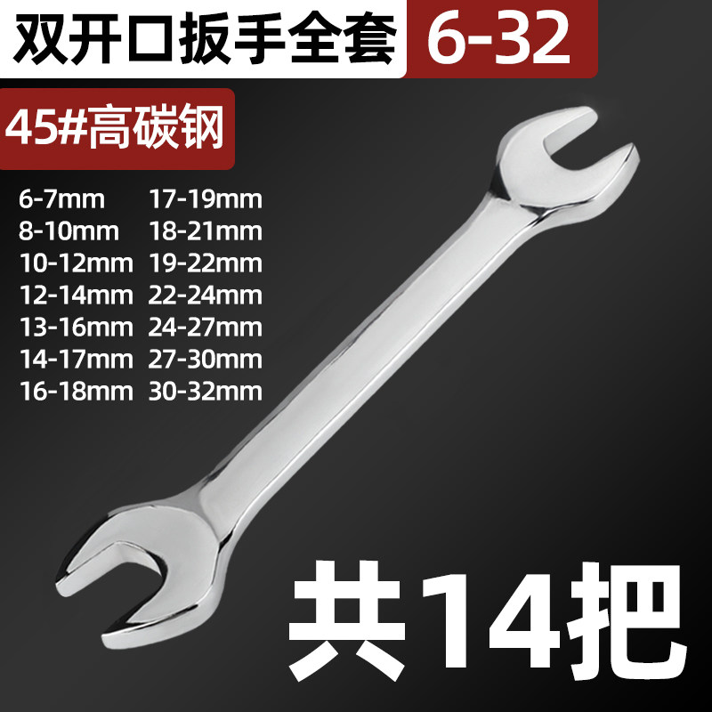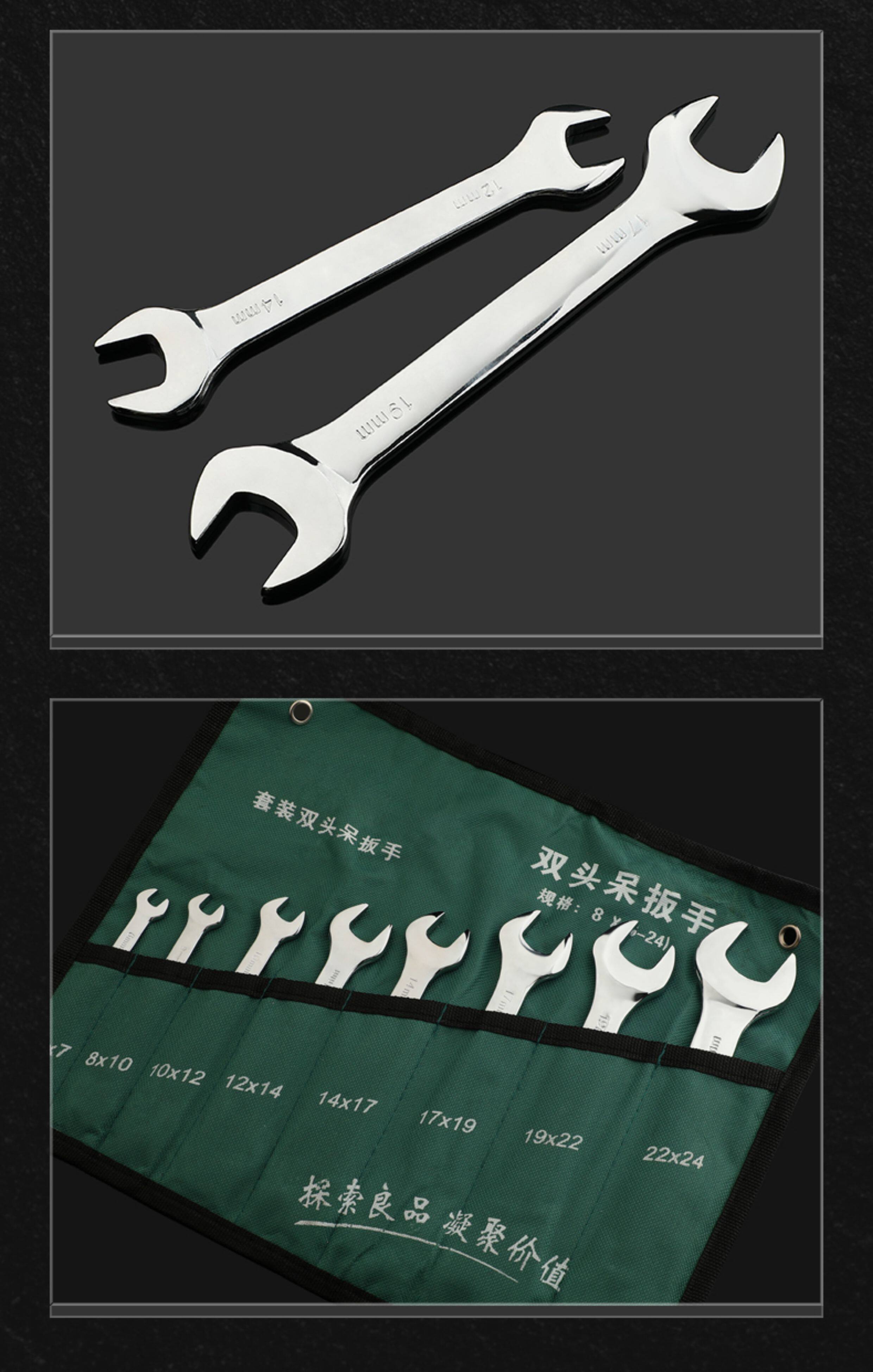 双开口扳手加硬五金工具叉死口大双头呆扳子 8-10-12-13-14-17-19