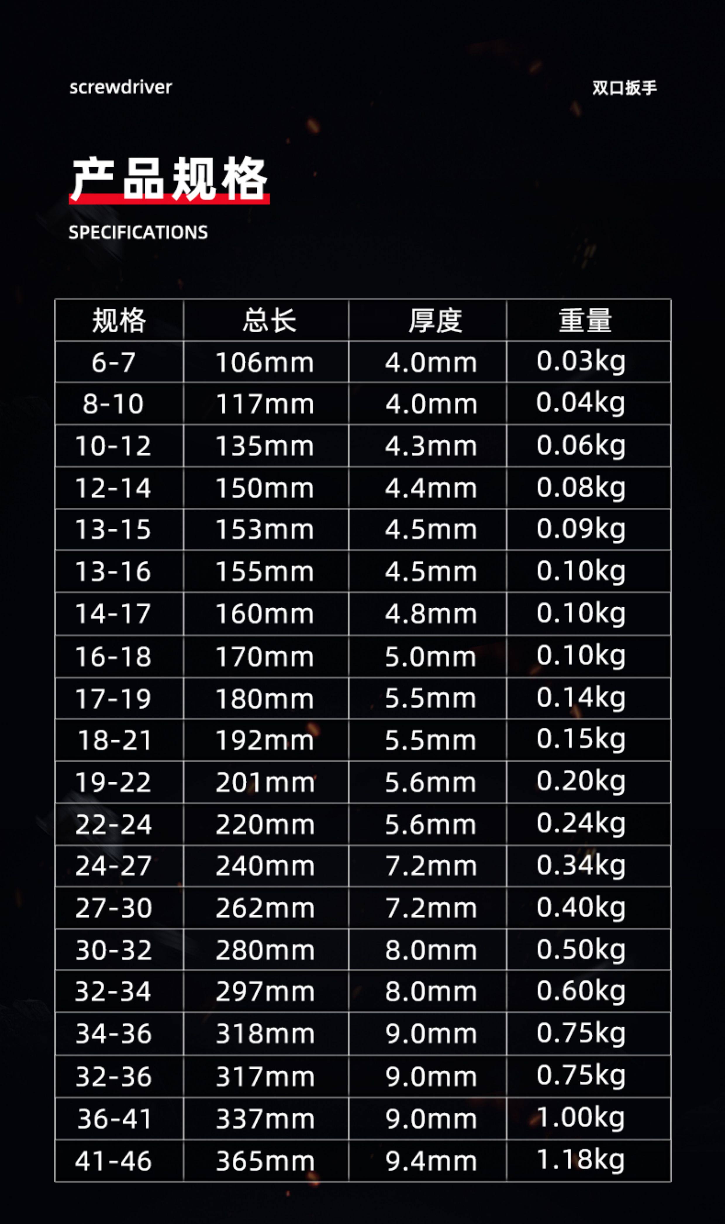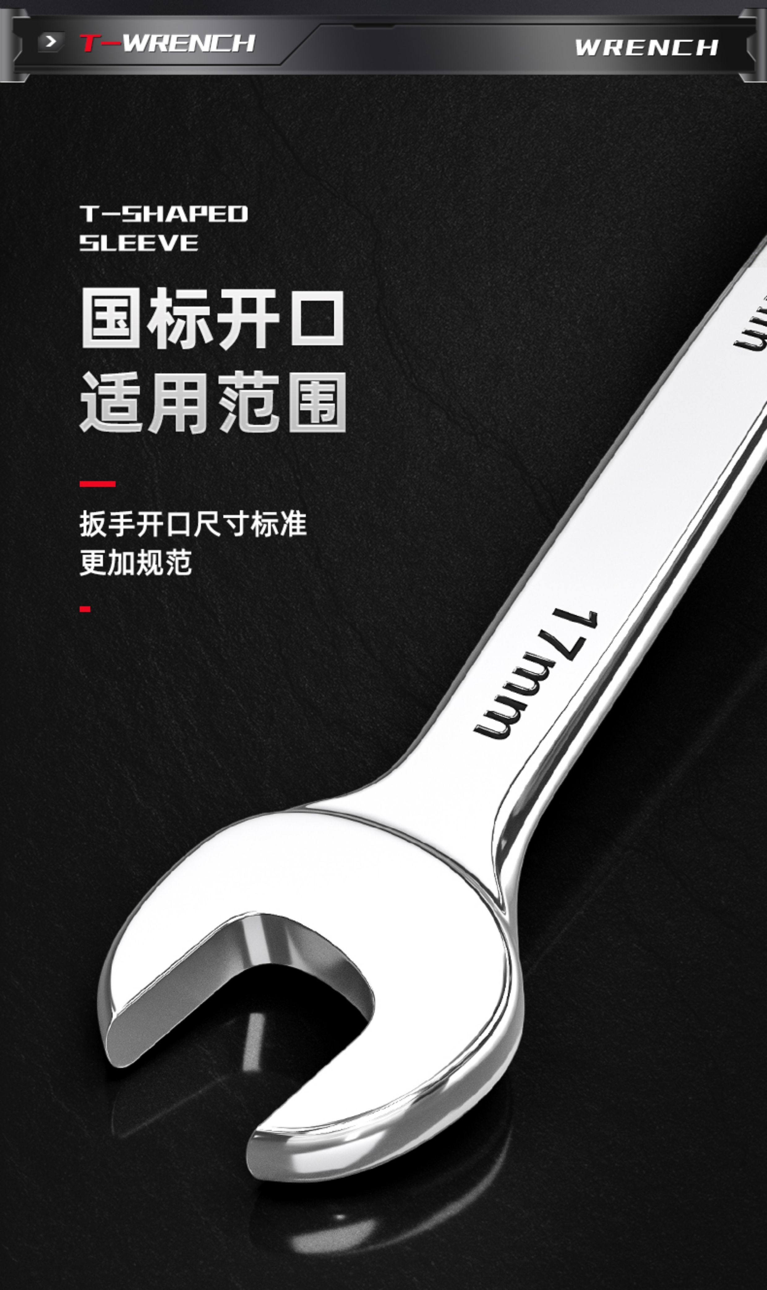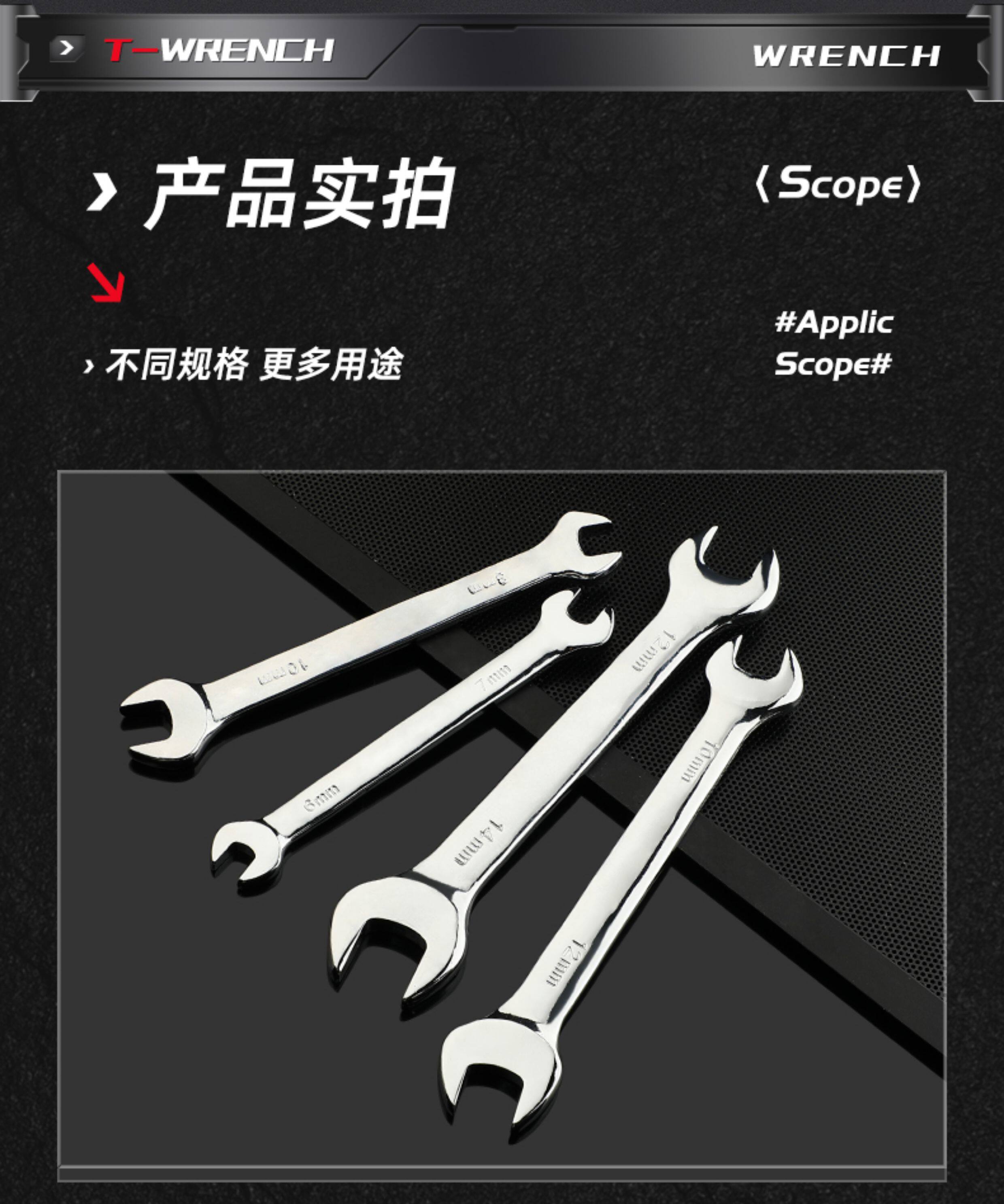双开口扳手加硬五金工具叉死口大双头呆扳子 8-10-12-13-14-17-19