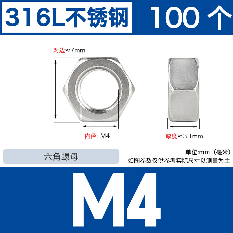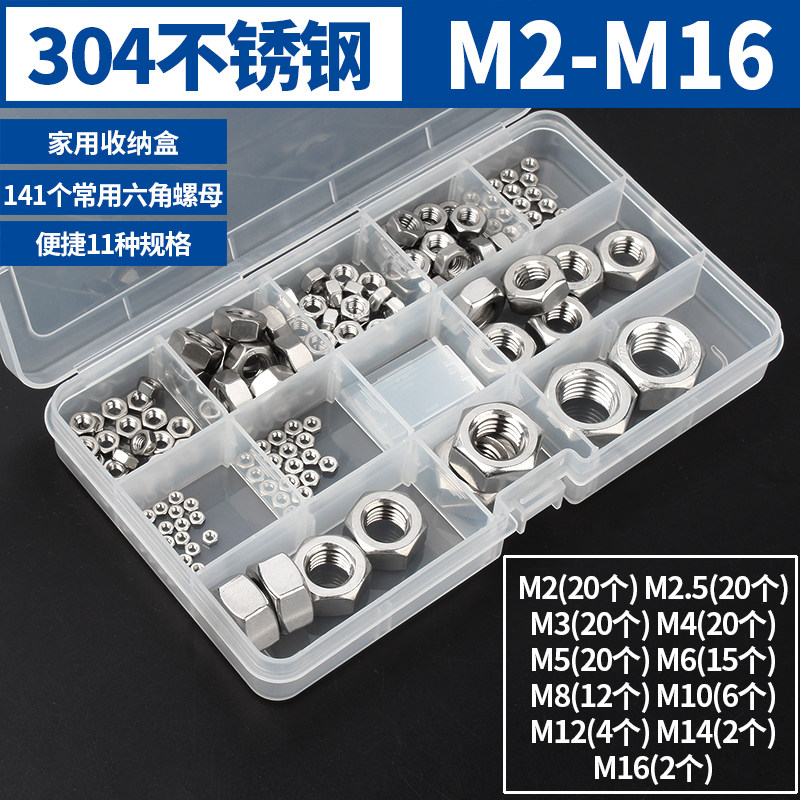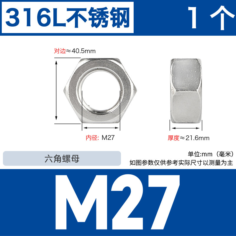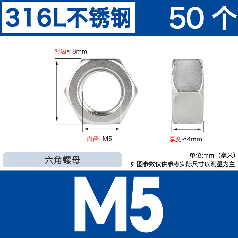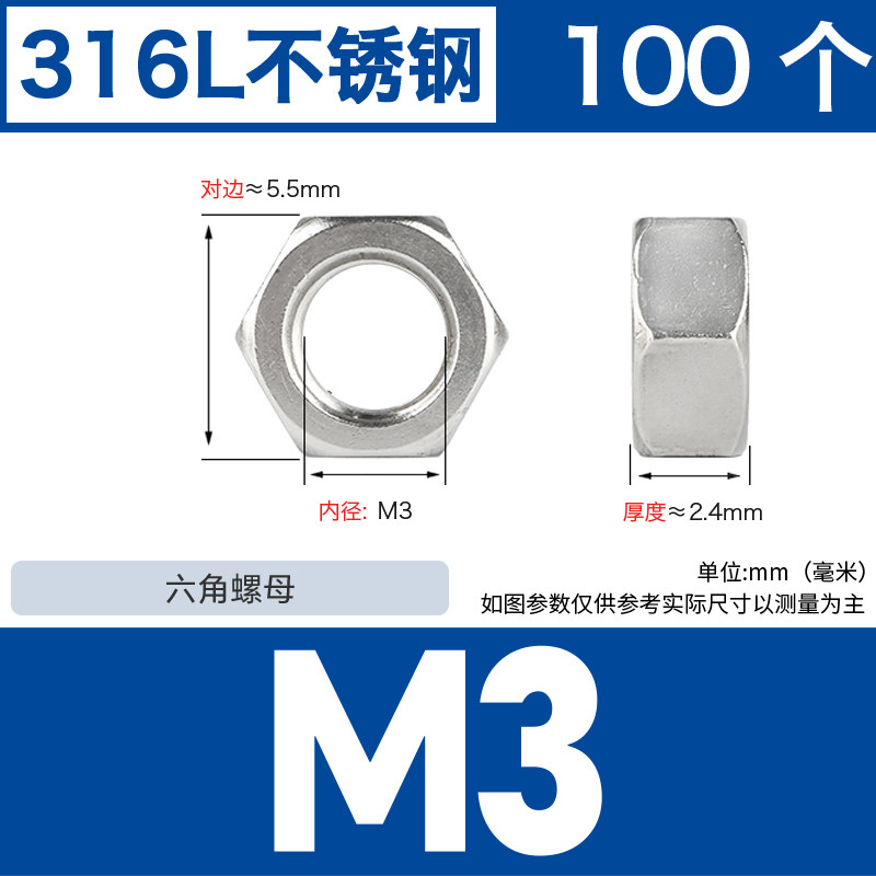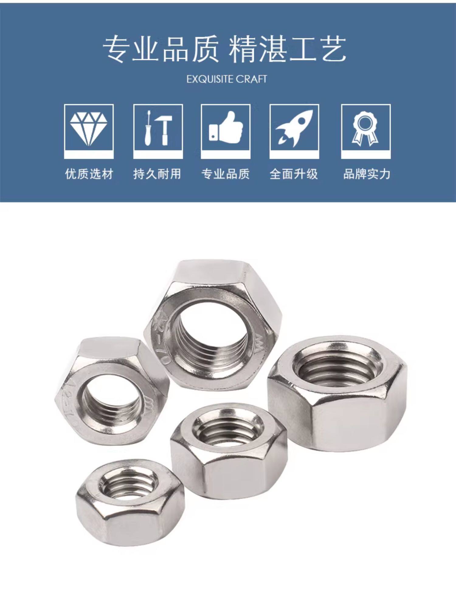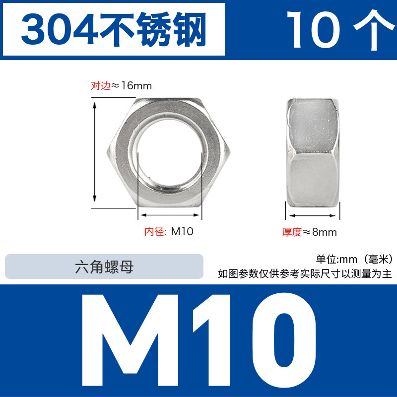 304不锈钢螺母六角螺帽螺丝帽大全M1M2M3M4M5M6M8M10M12M14M16M33