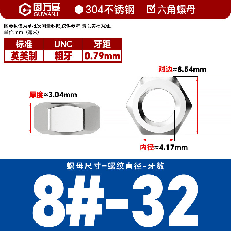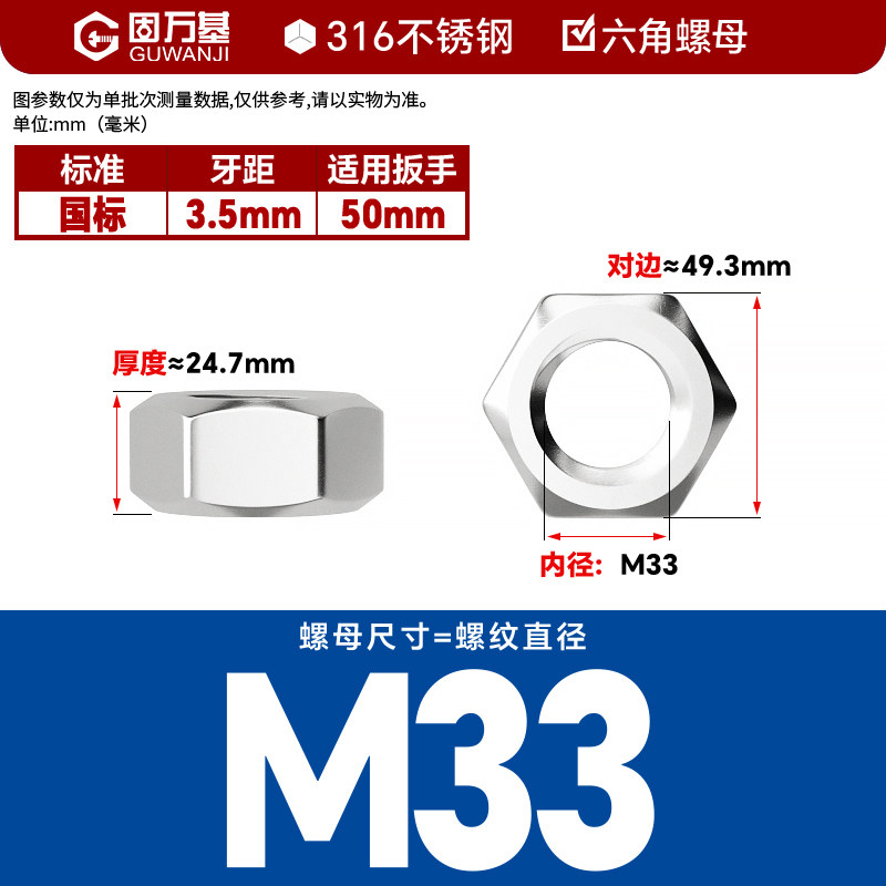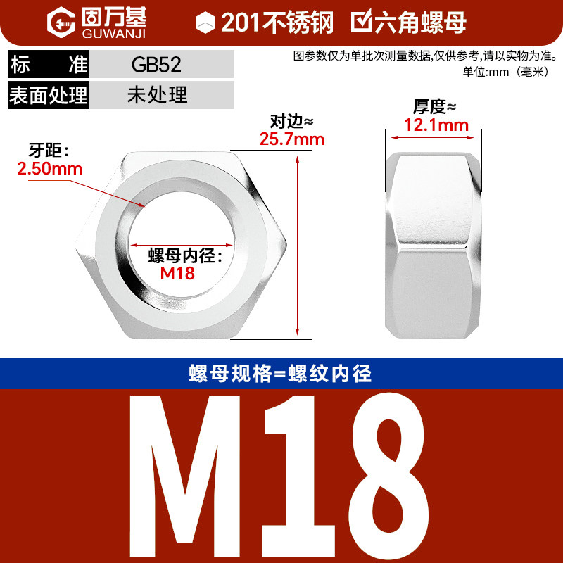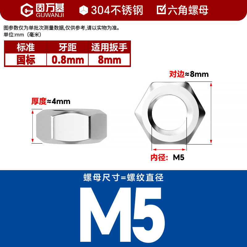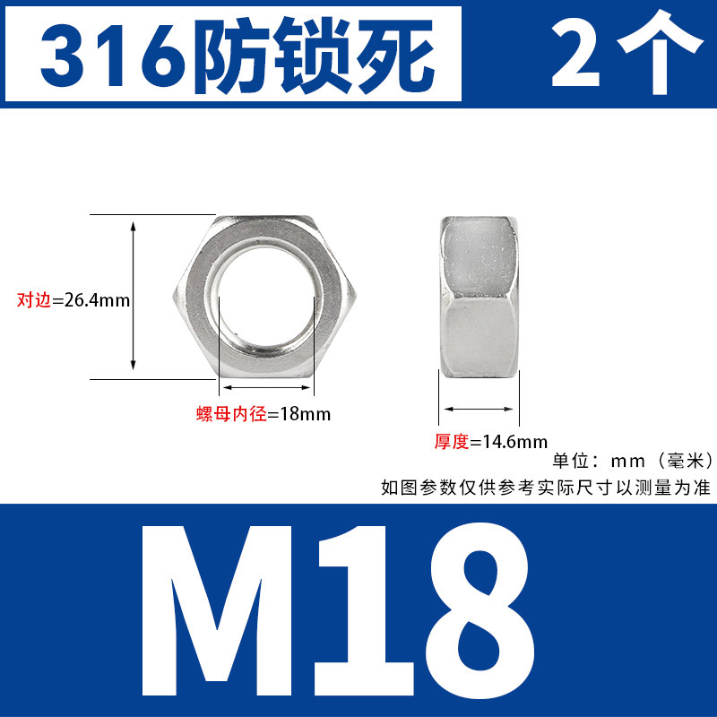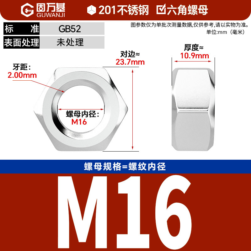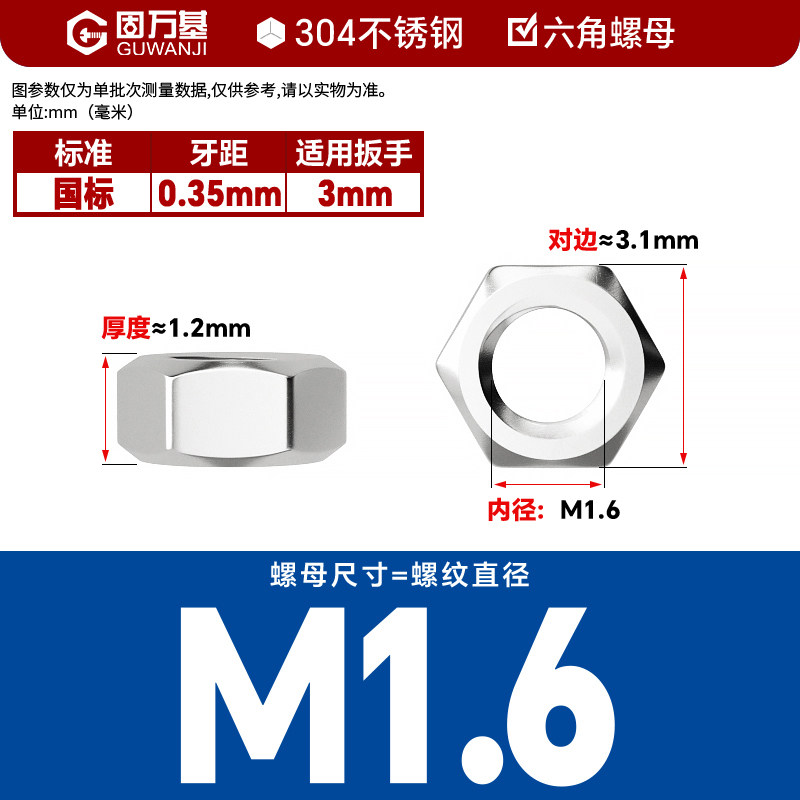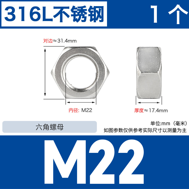 304不锈钢螺母六角螺帽螺丝帽大全M1M2M3M4M5M6M8M10M12M14M16M33