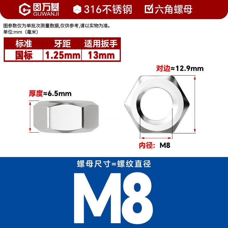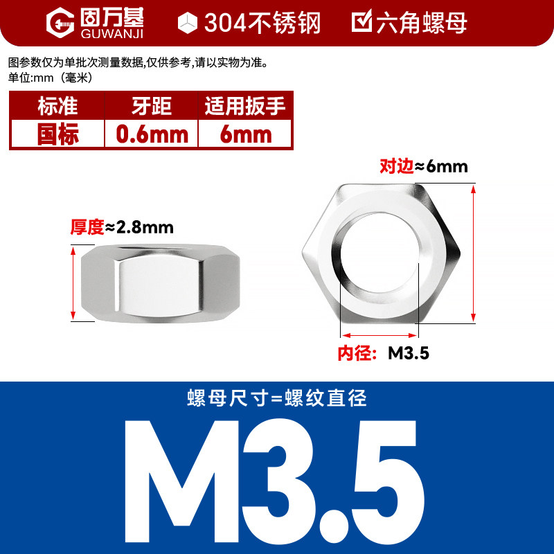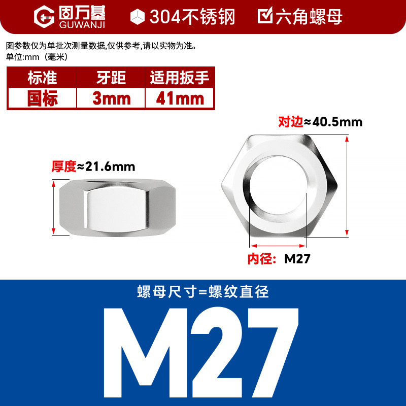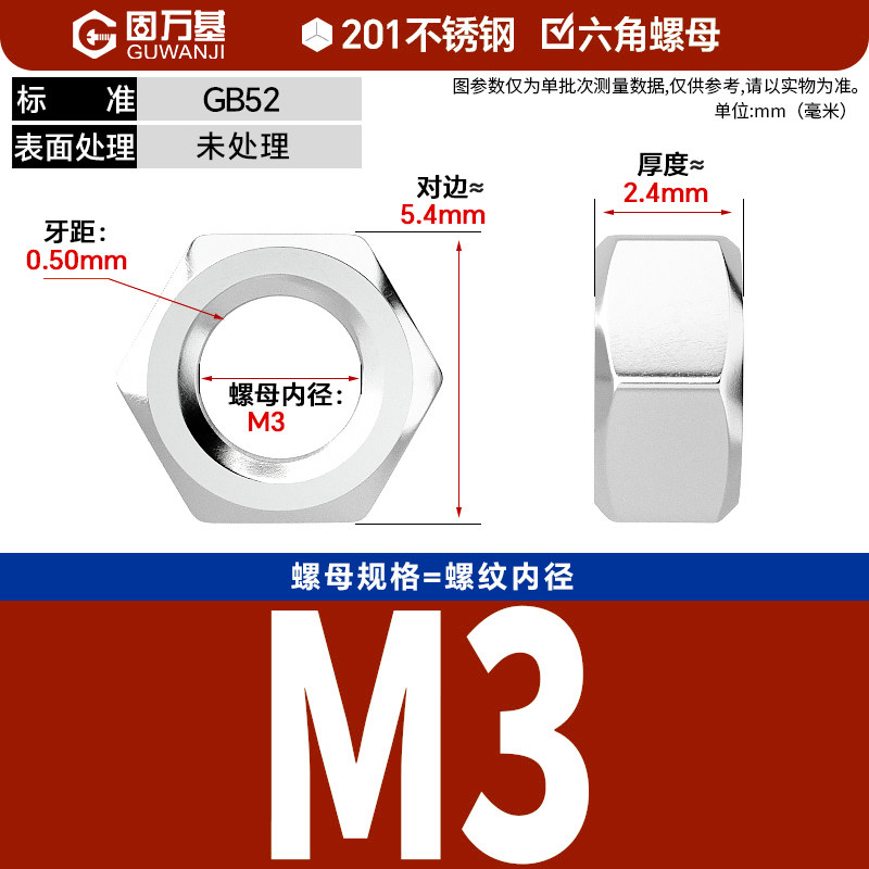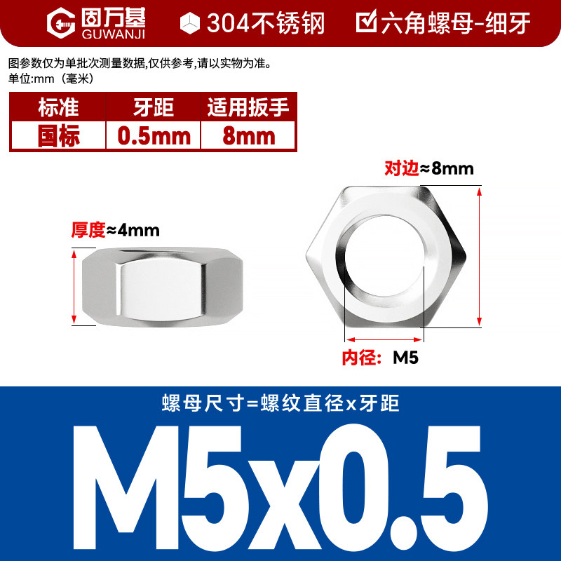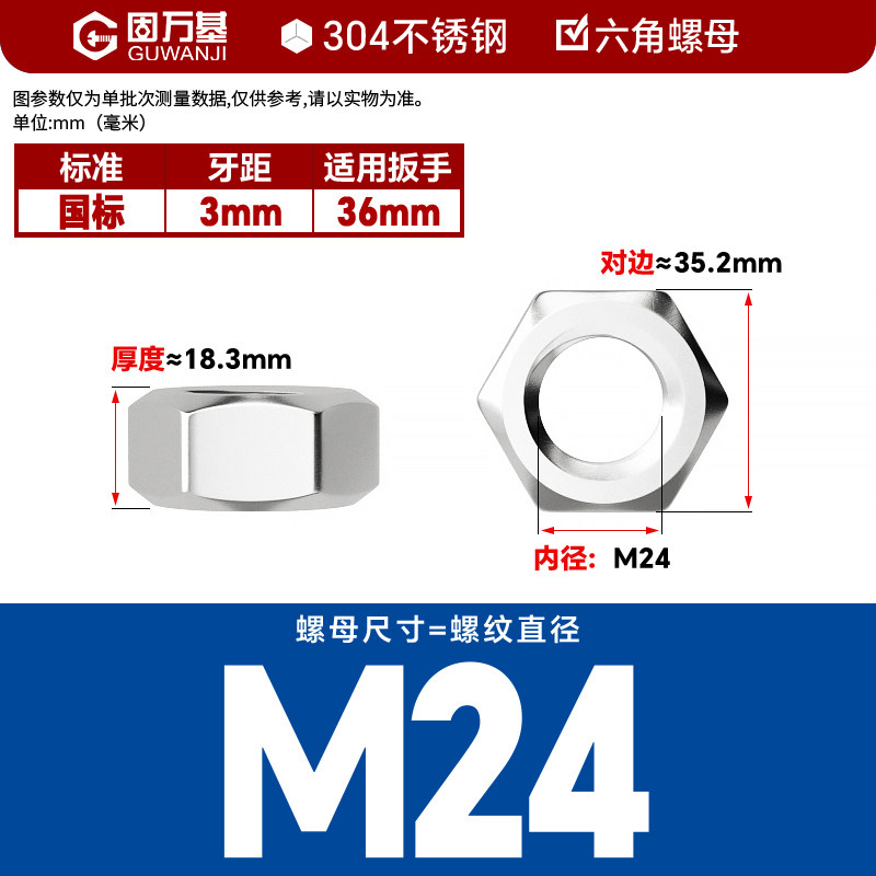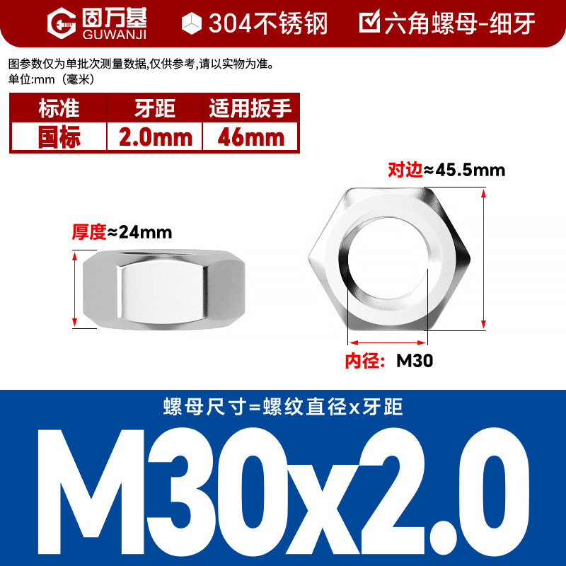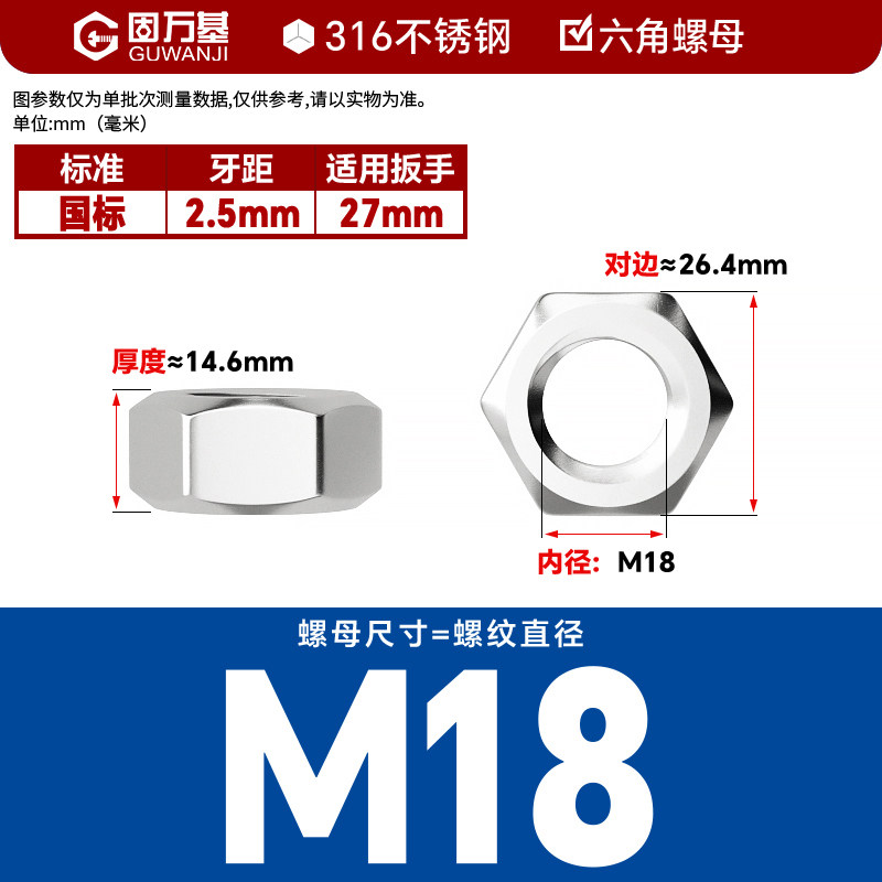 304不锈钢螺母六角螺帽螺丝帽大全M1M2M3M4M5M6M8M10M12M14M16M33