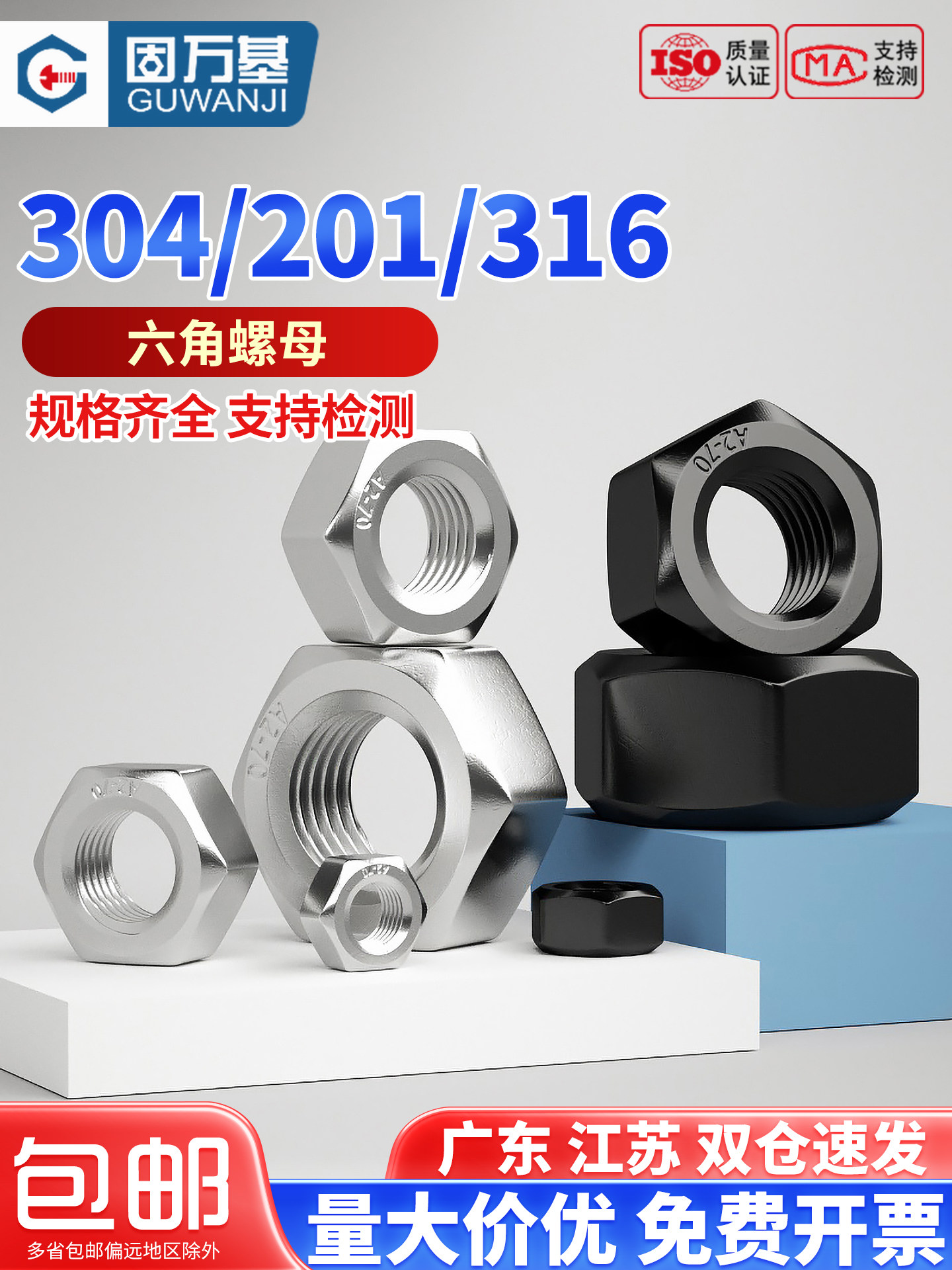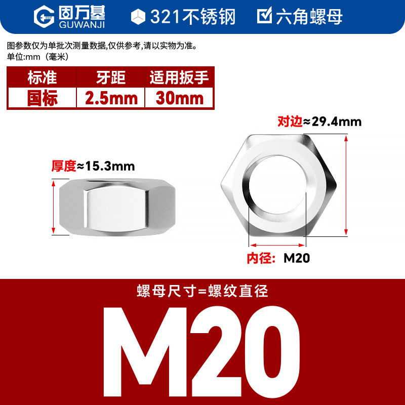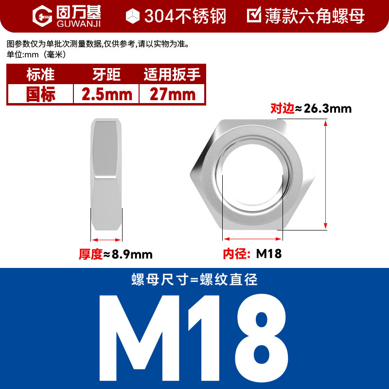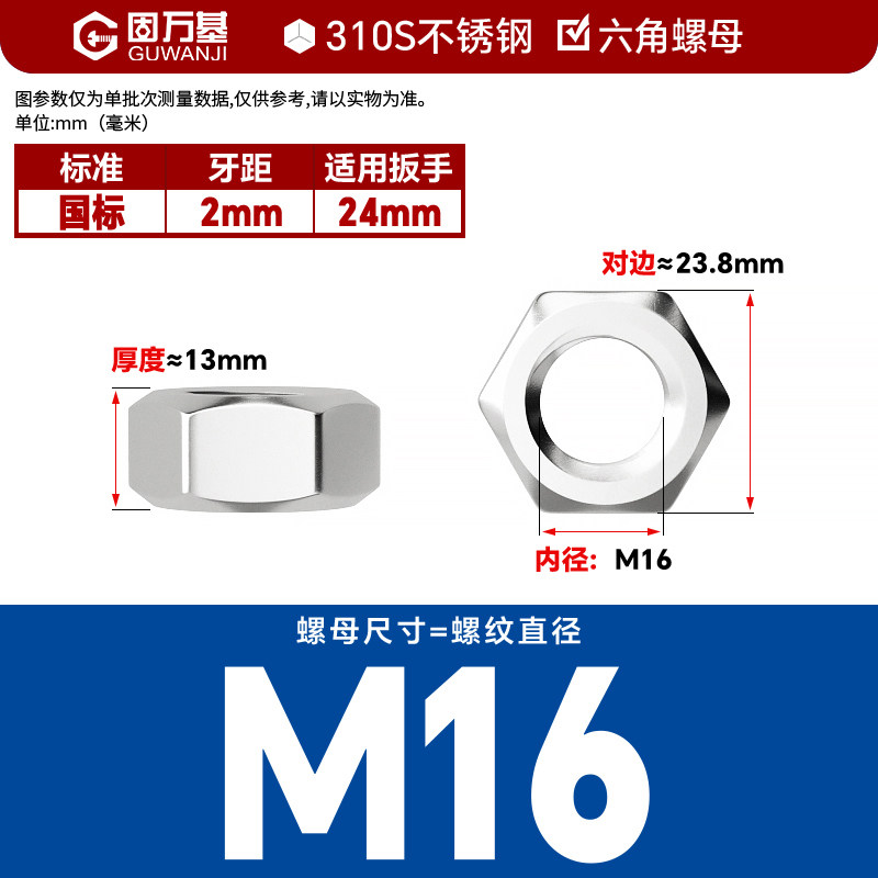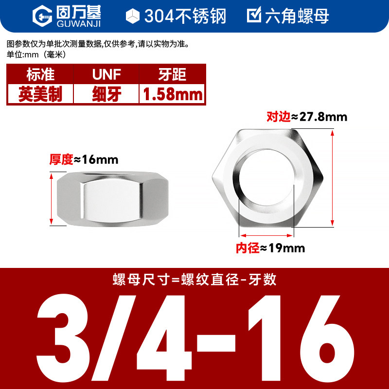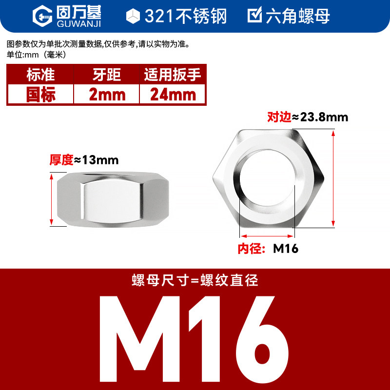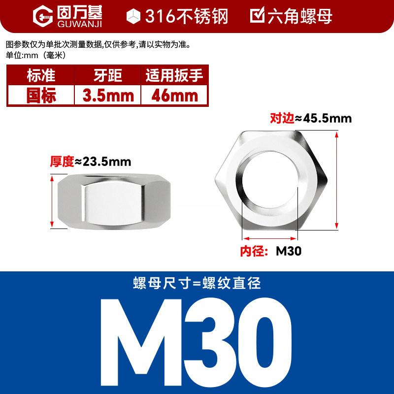 304不锈钢螺母六角螺帽螺丝帽大全M1M2M3M4M5M6M8M10M12M14M16M33
