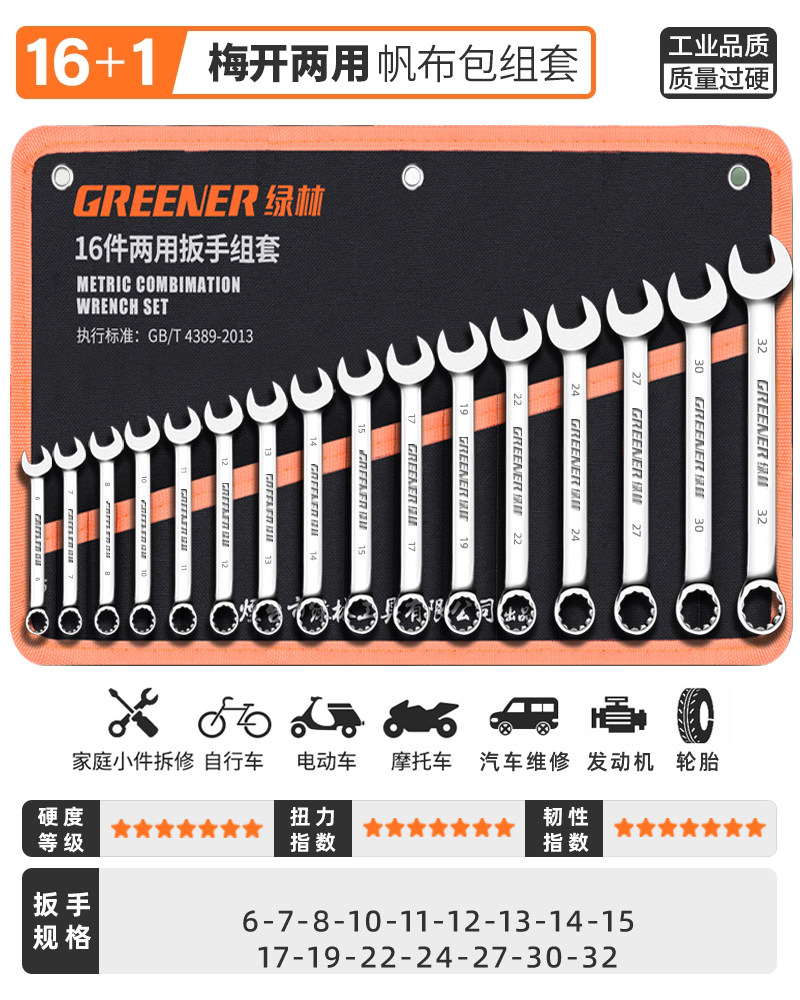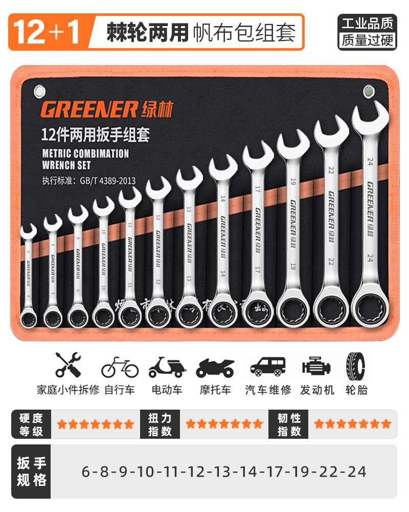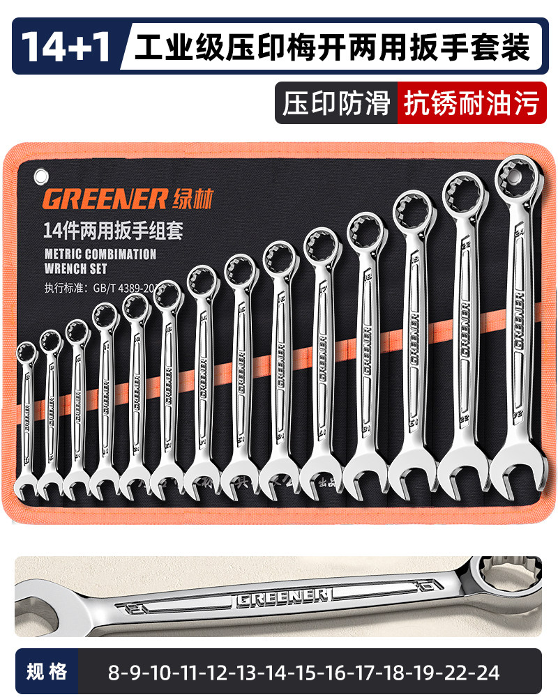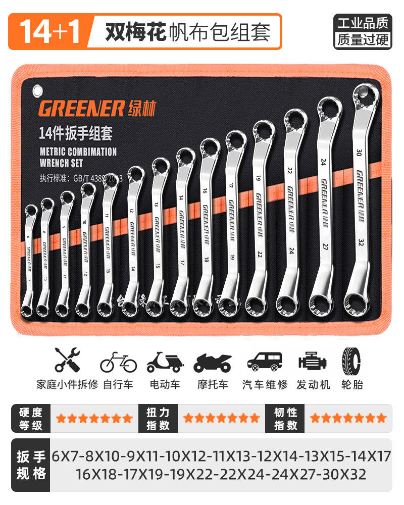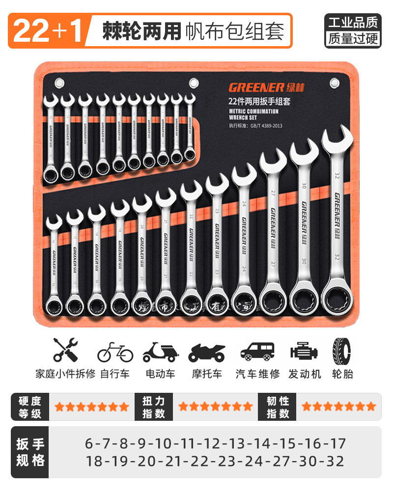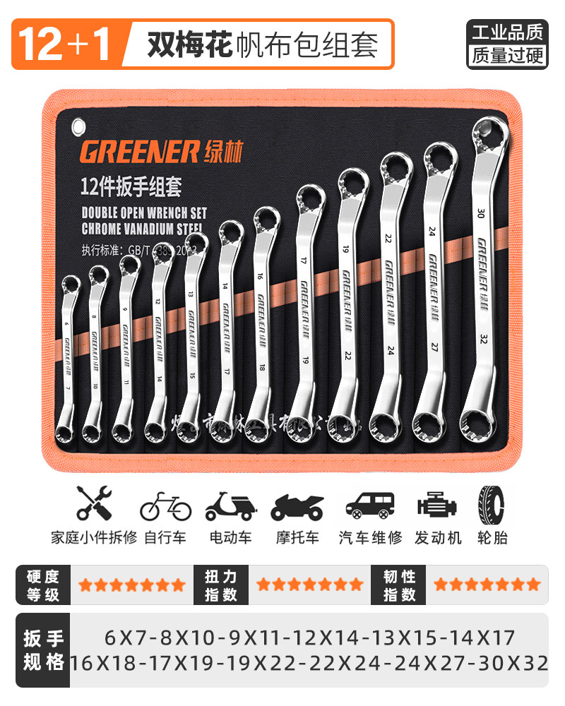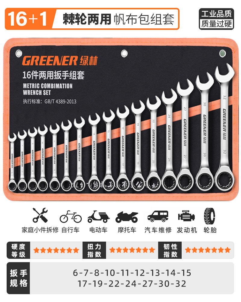 绿林扳手工具套装德国梅花开口两用呆扳手棘轮梅开板子五金大全一