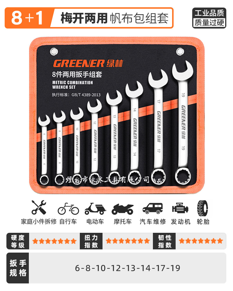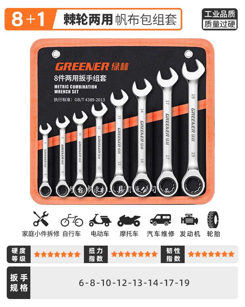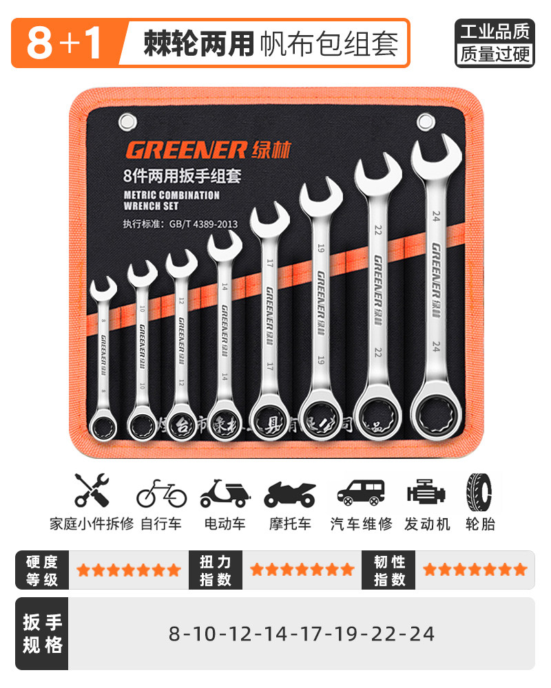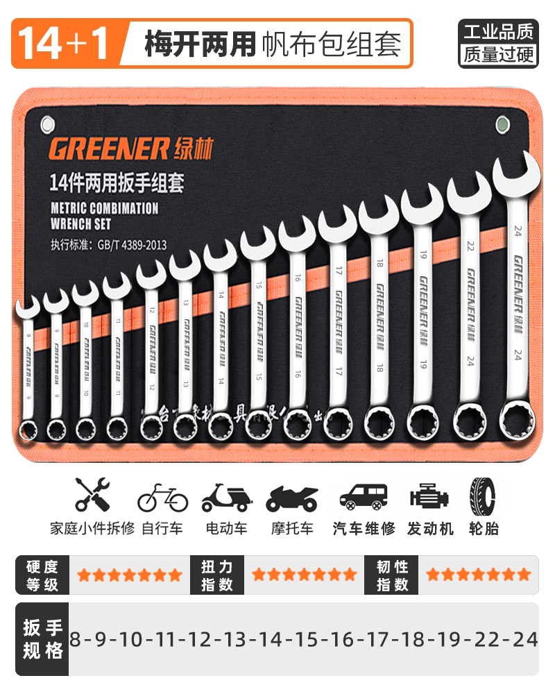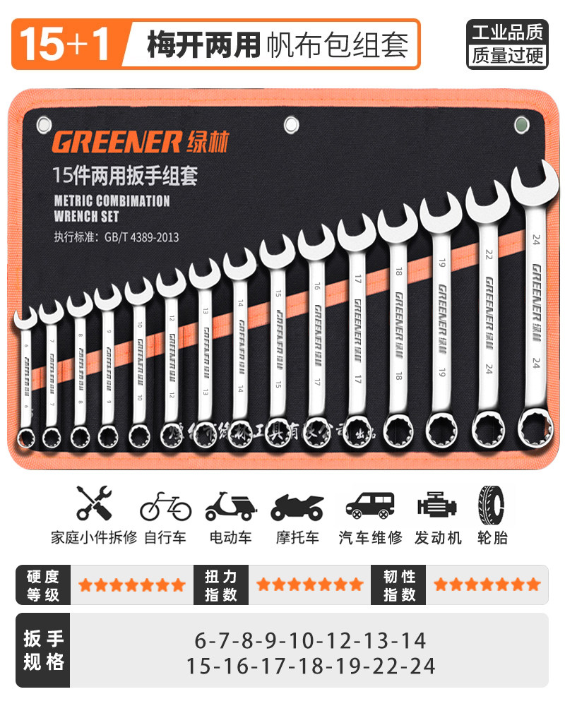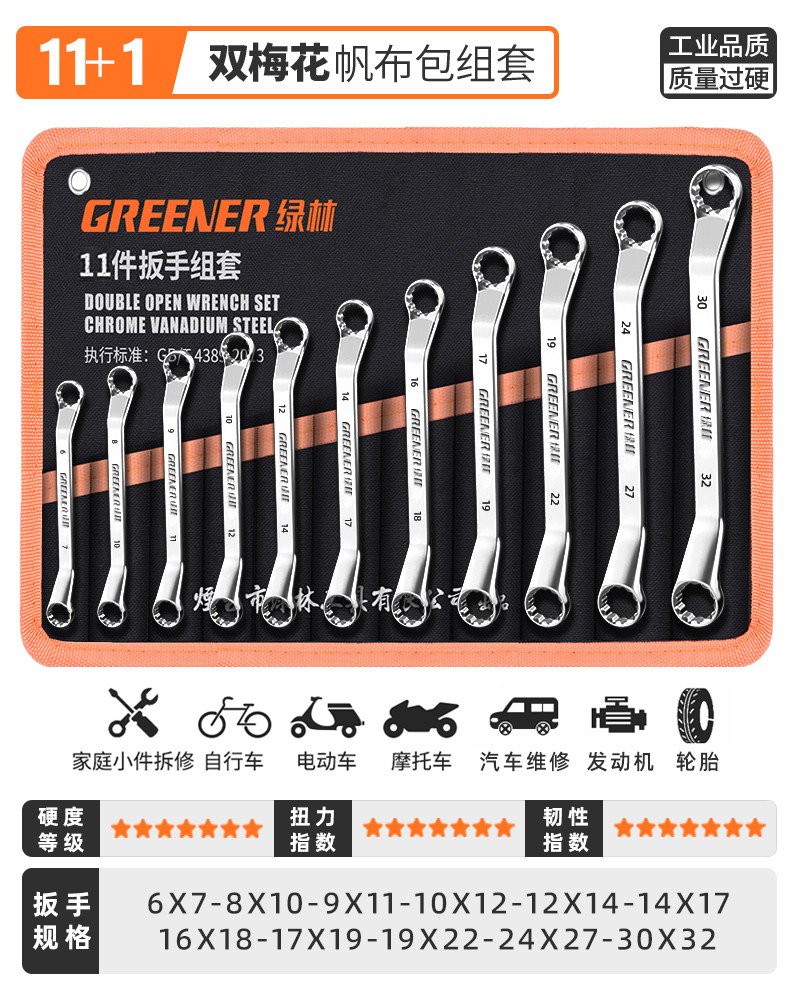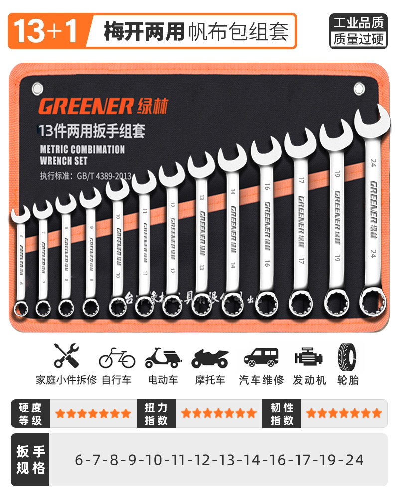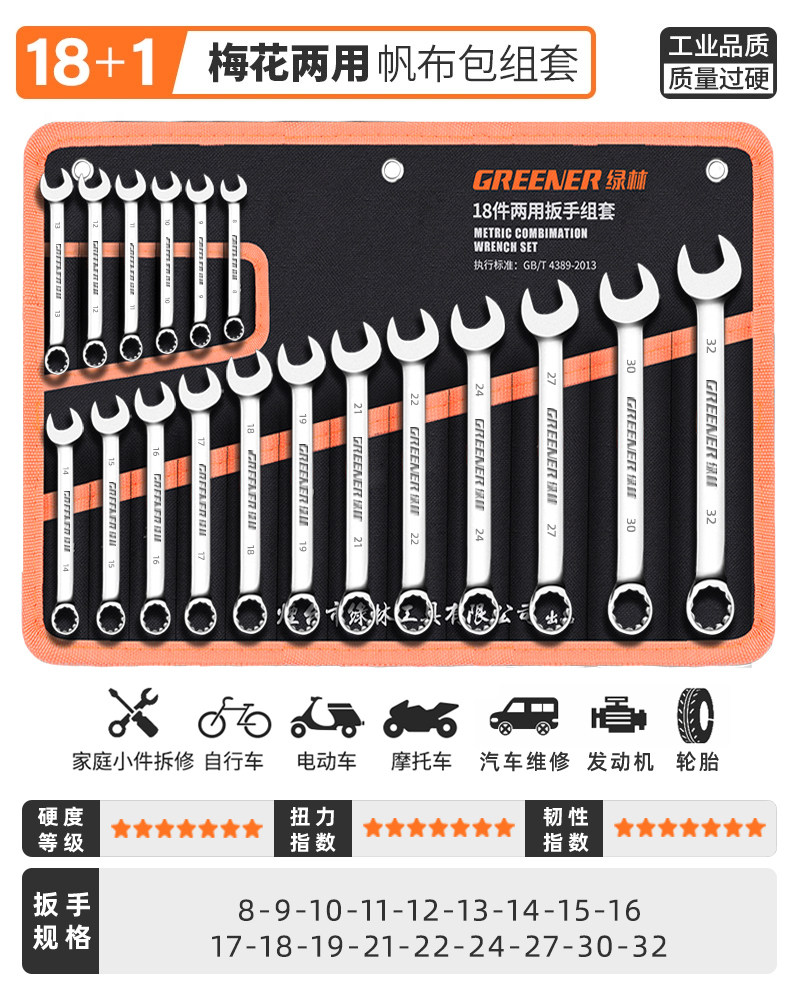 绿林扳手工具套装德国梅花开口两用呆扳手棘轮梅开板子五金大全一