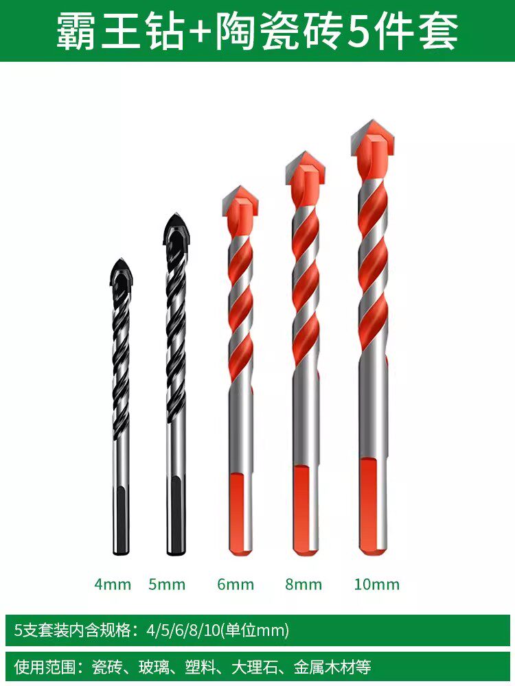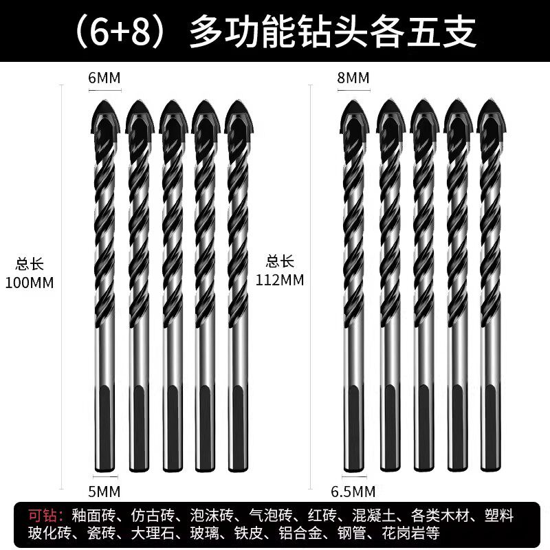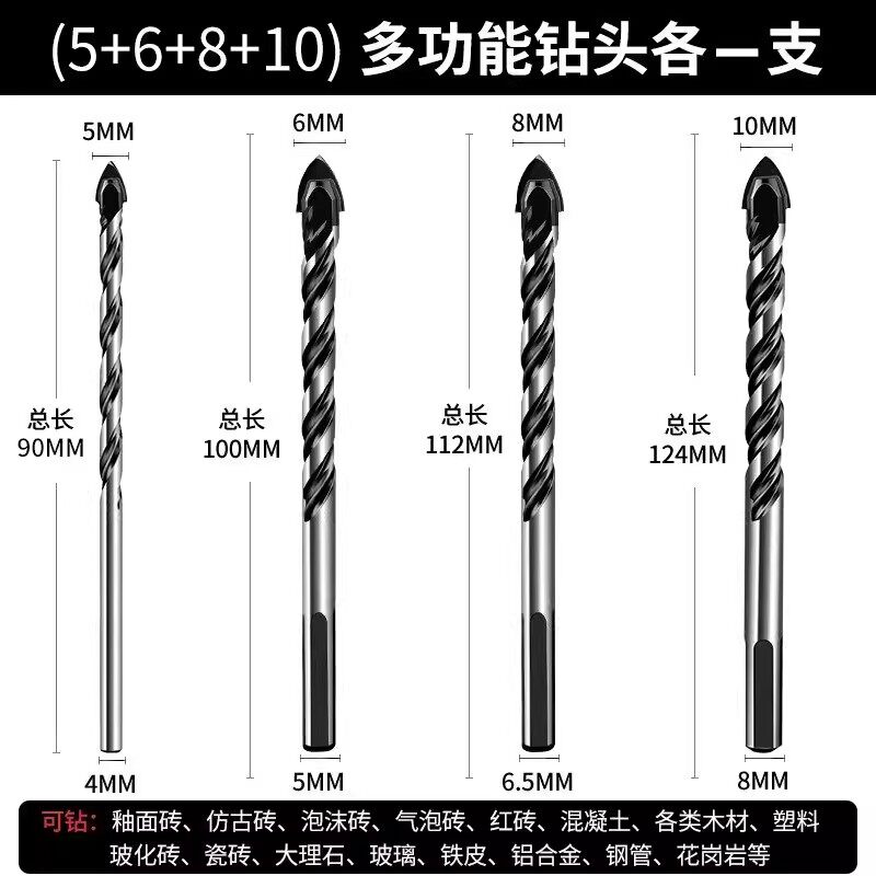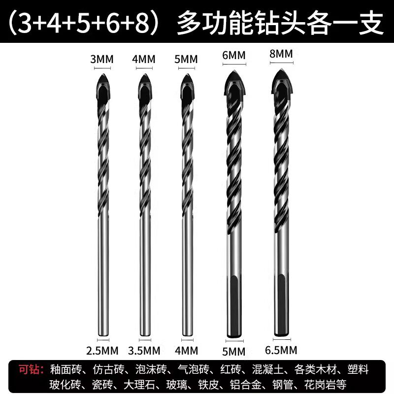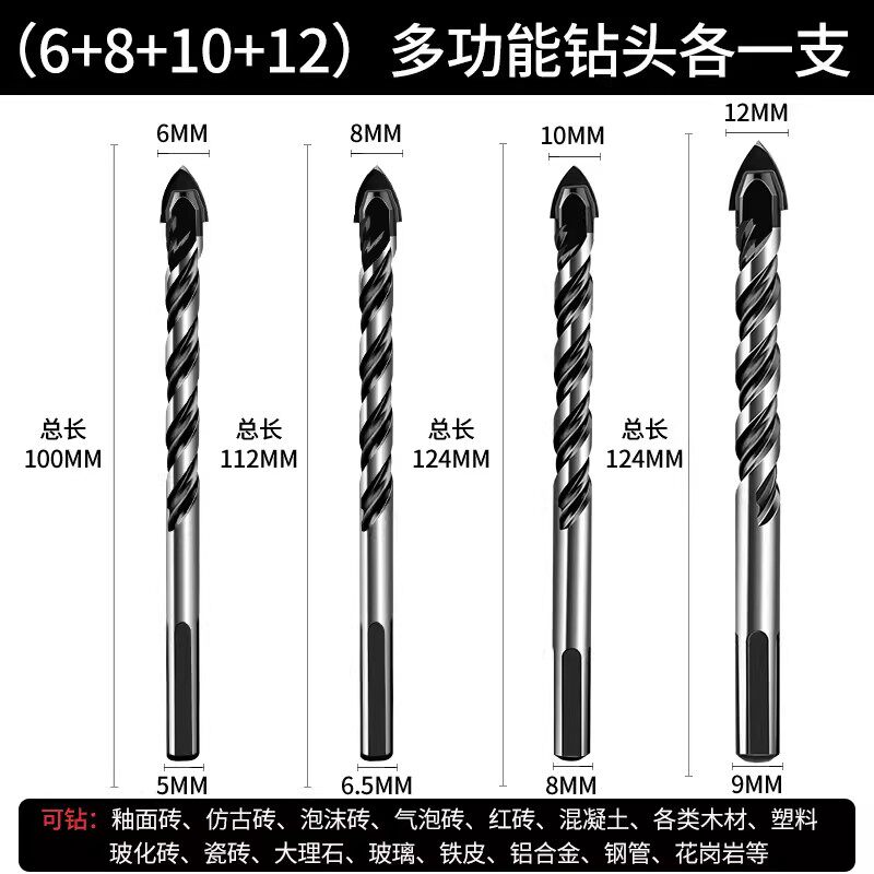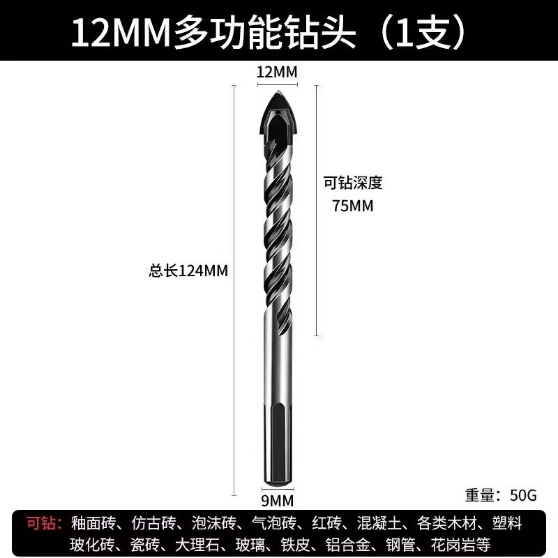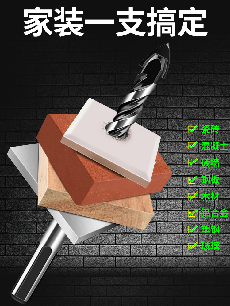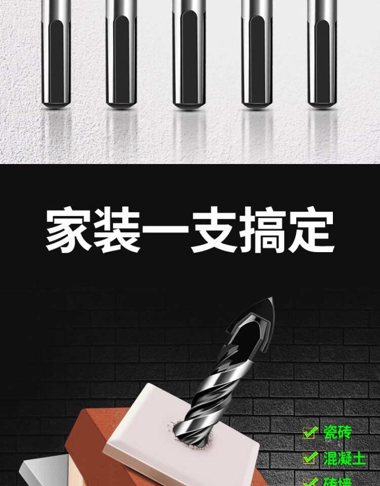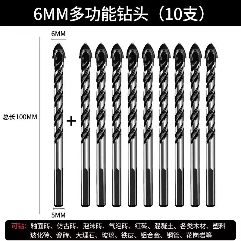 瓷砖钻头混凝土打孔开孔霸王钻合金三角钻6mm玻璃水泥大全手电钻