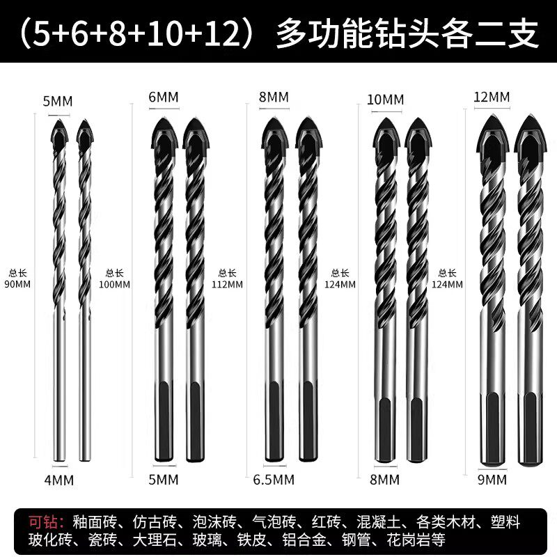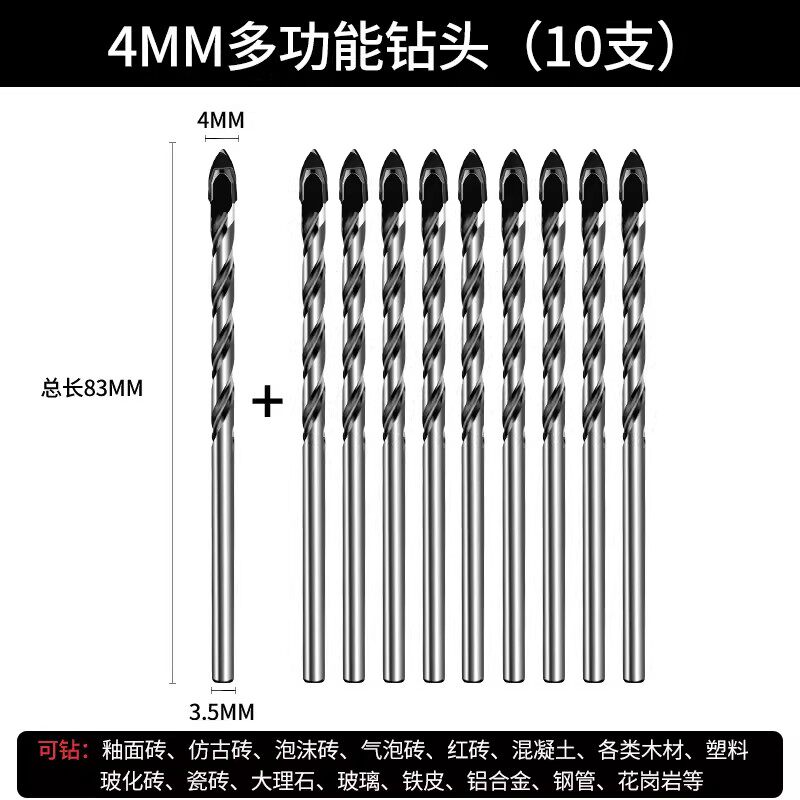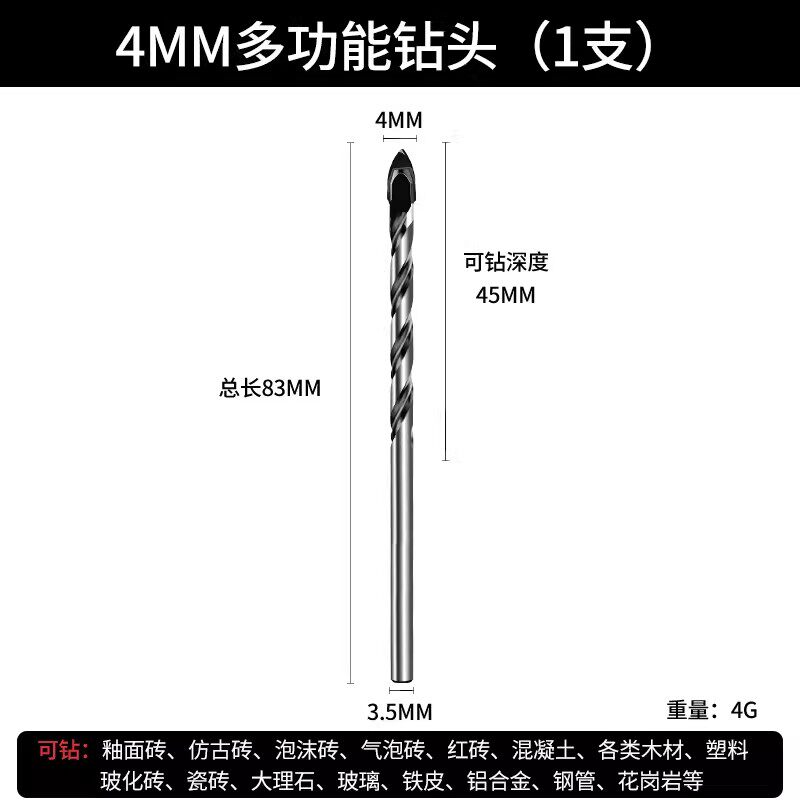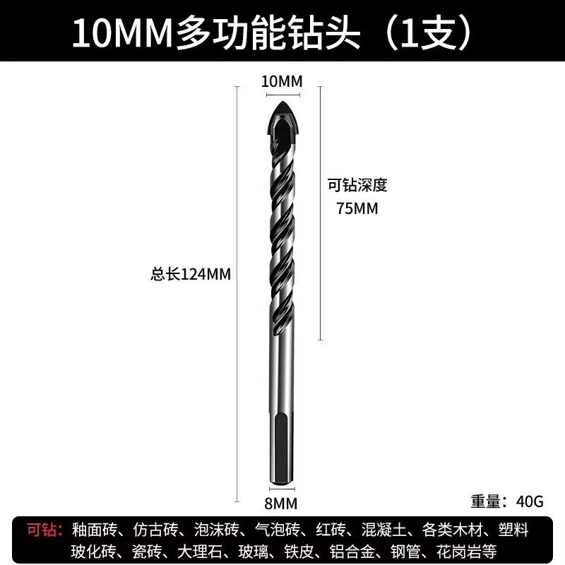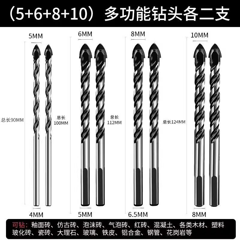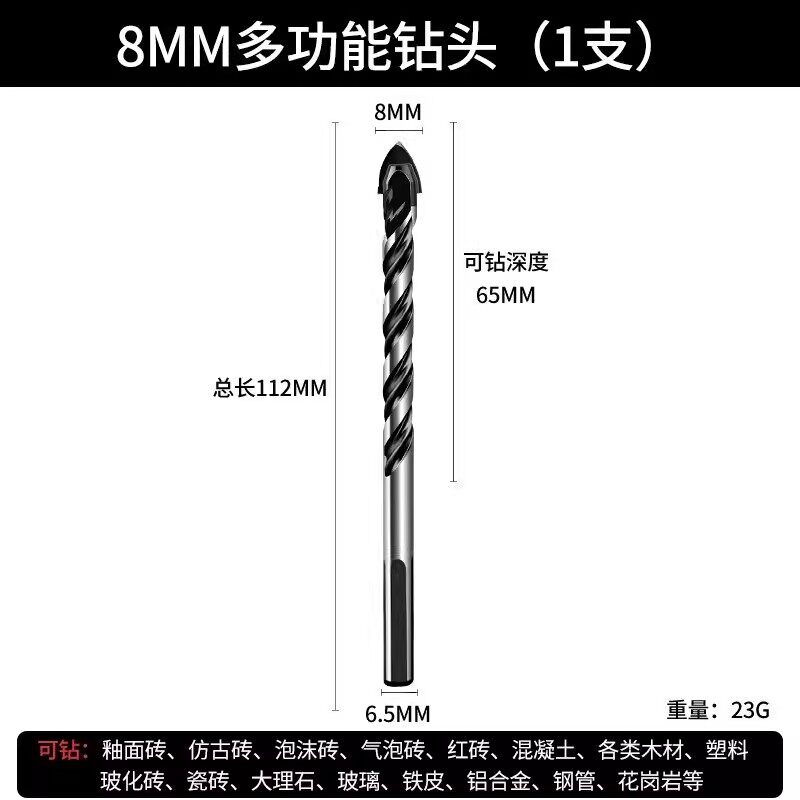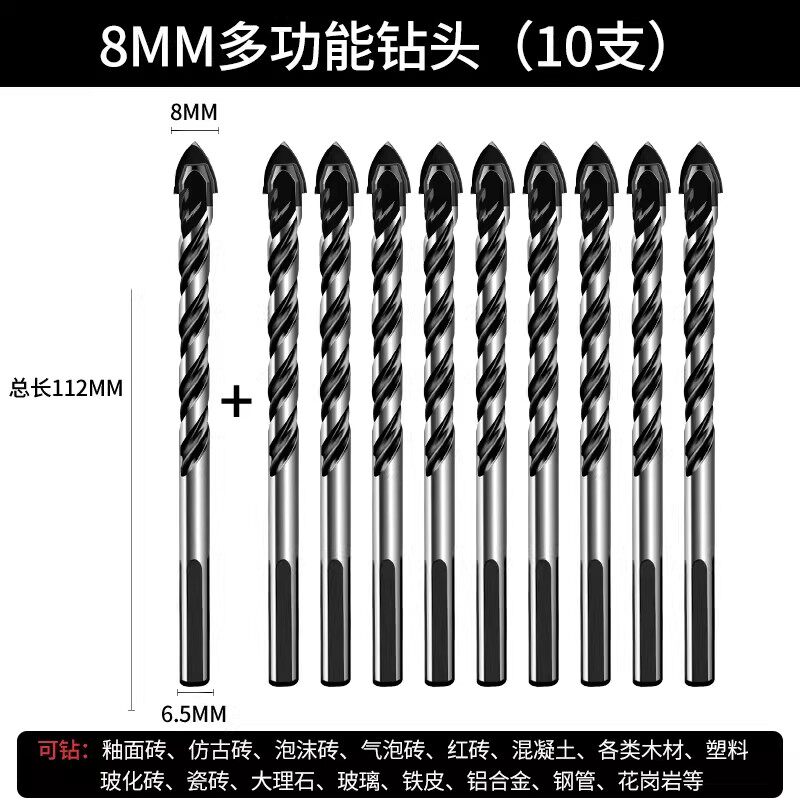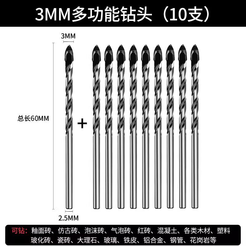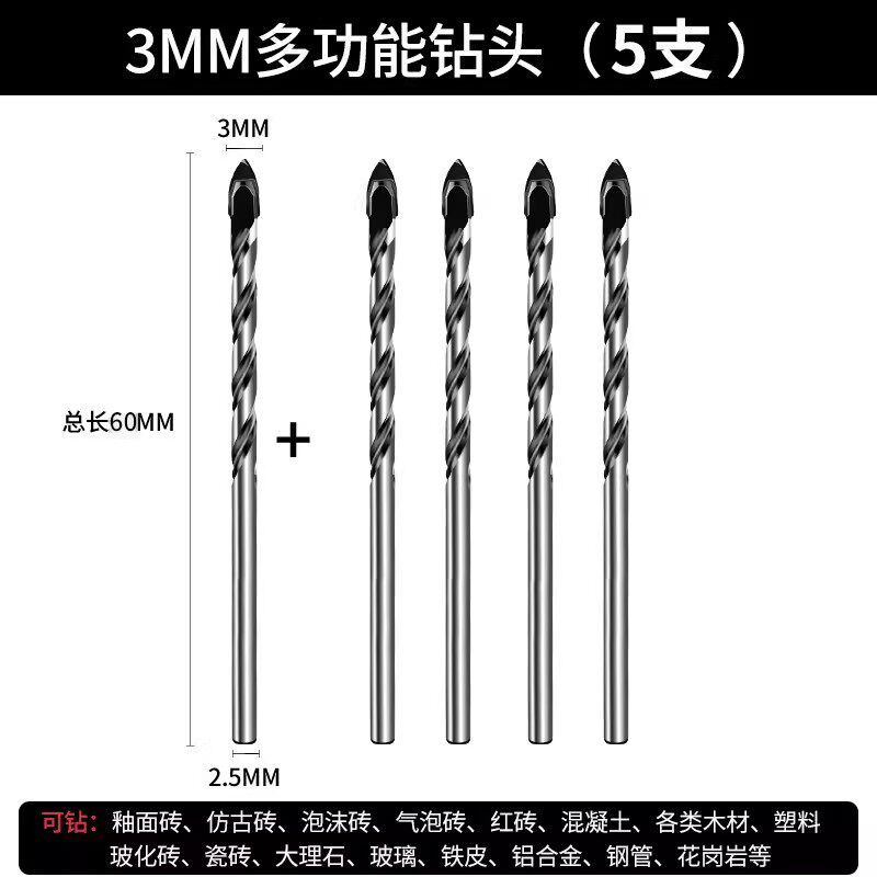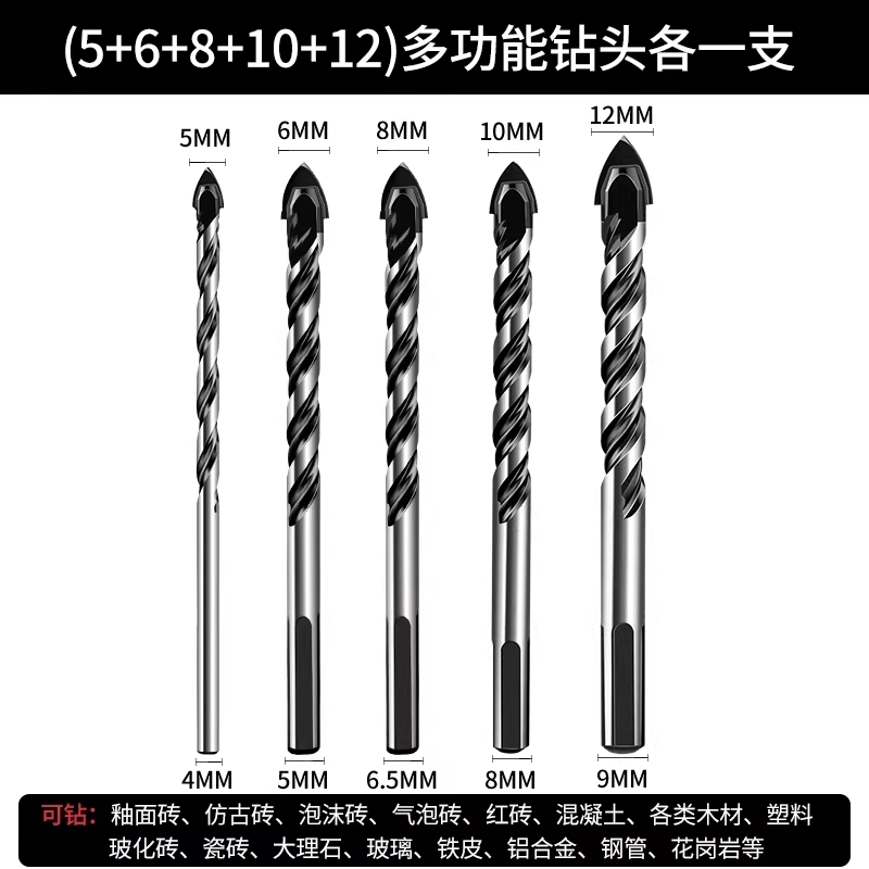 瓷砖钻头混凝土打孔开孔霸王钻合金三角钻6mm玻璃水泥大全手电钻