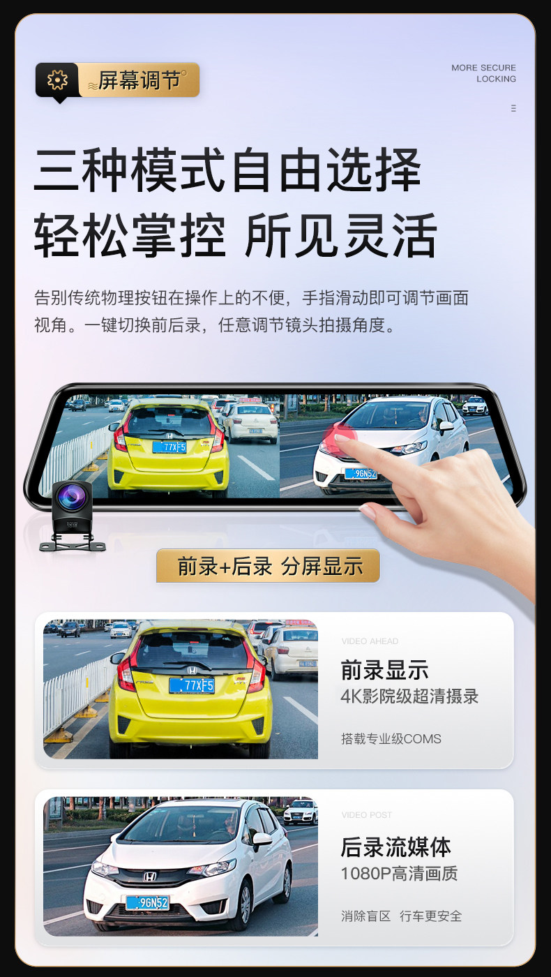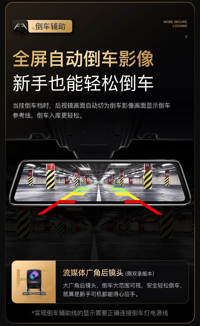 凌度行车记录仪高清前后双摄流媒体后视镜免走线倒车影像2026新款