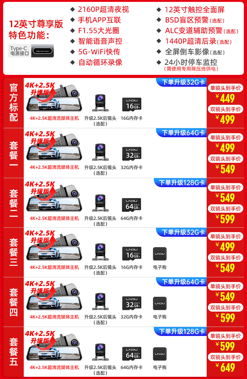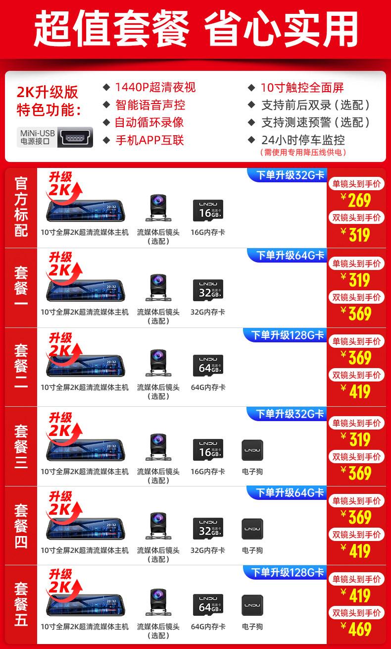官方标配【升级32G卡】 / 双镜头 / 2K升级版【1440P+APP】