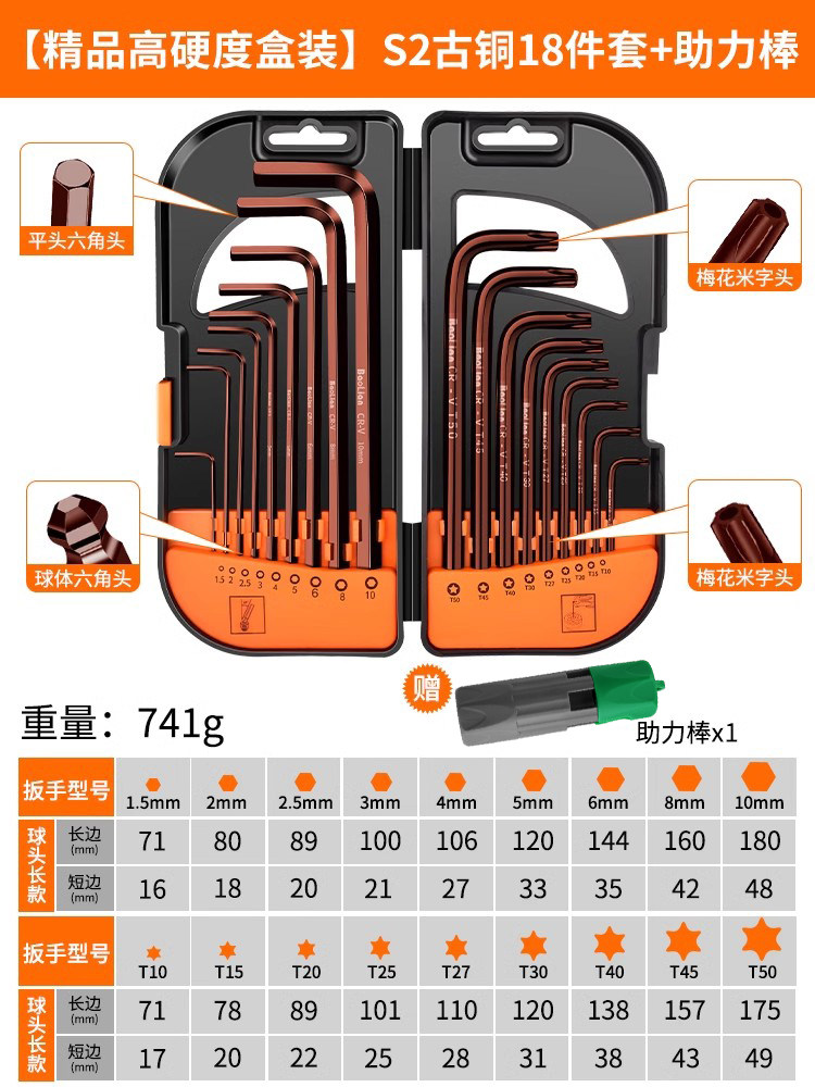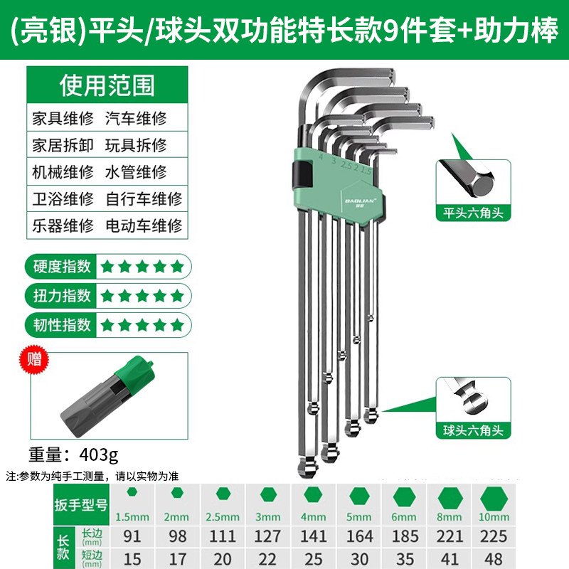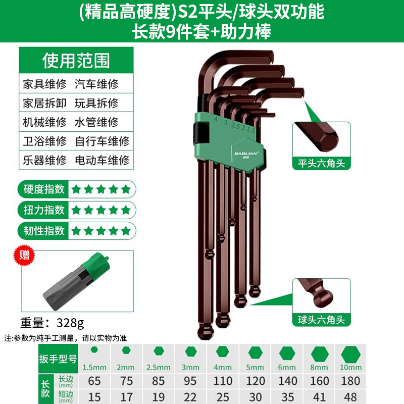 内六角扳手套装内六方六棱6角螺丝刀工具组合梅花扳手加长六边形