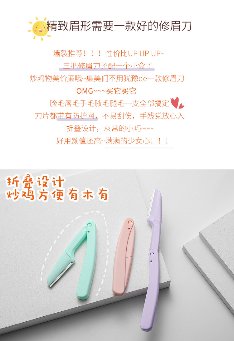 折叠修眉刀安全刮眉刀剃毛刀初学者修眉器3把装防刮伤迷你便携