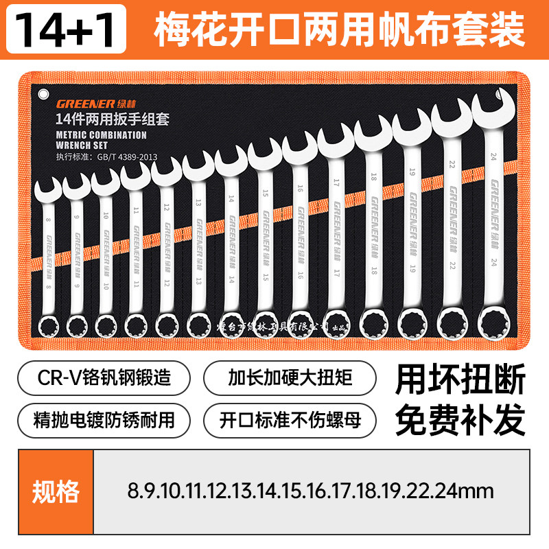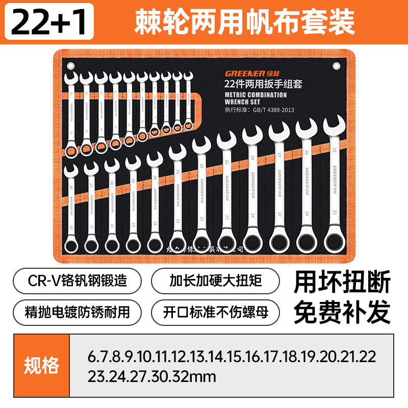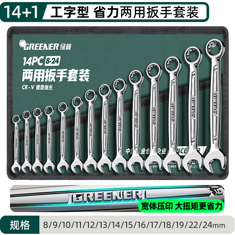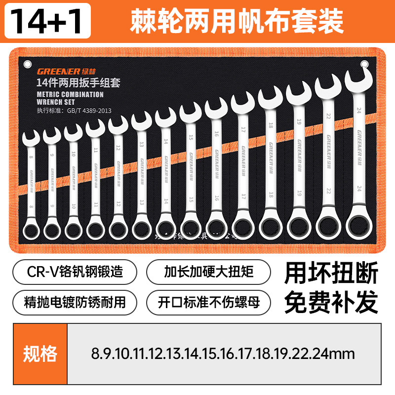 绿林扳手工具套装两用板手棘轮扳子工具大全一套梅花开口扳手套装