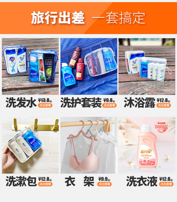 旅行装洗护套装洗浴小瓶洗发水沐浴露小样洗漱用品全套便携洗漱包