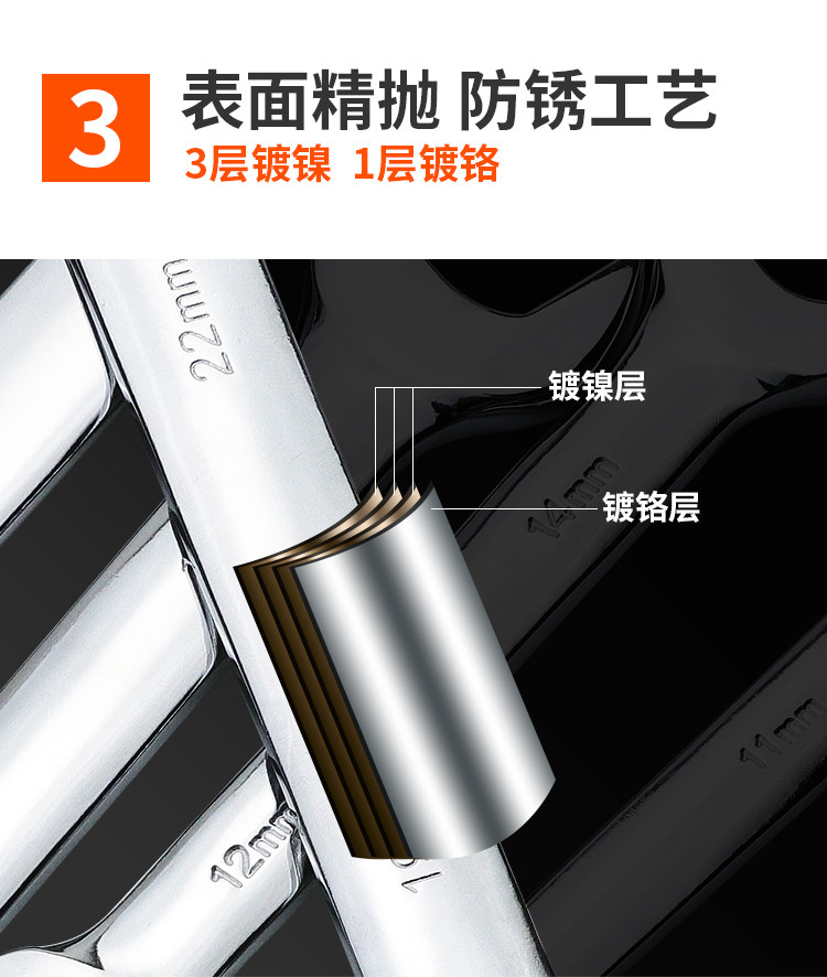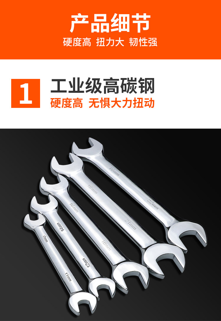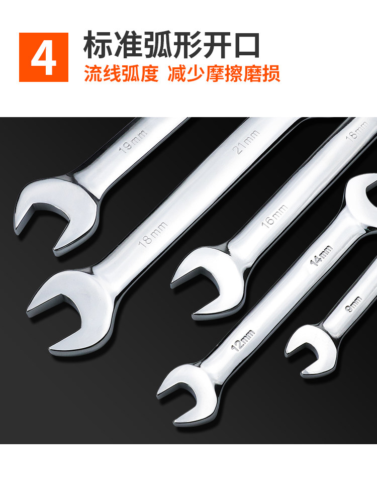 公制开口扳手双头呆扳手镜面扳手两用呆头扳手套装汽修扳手工具