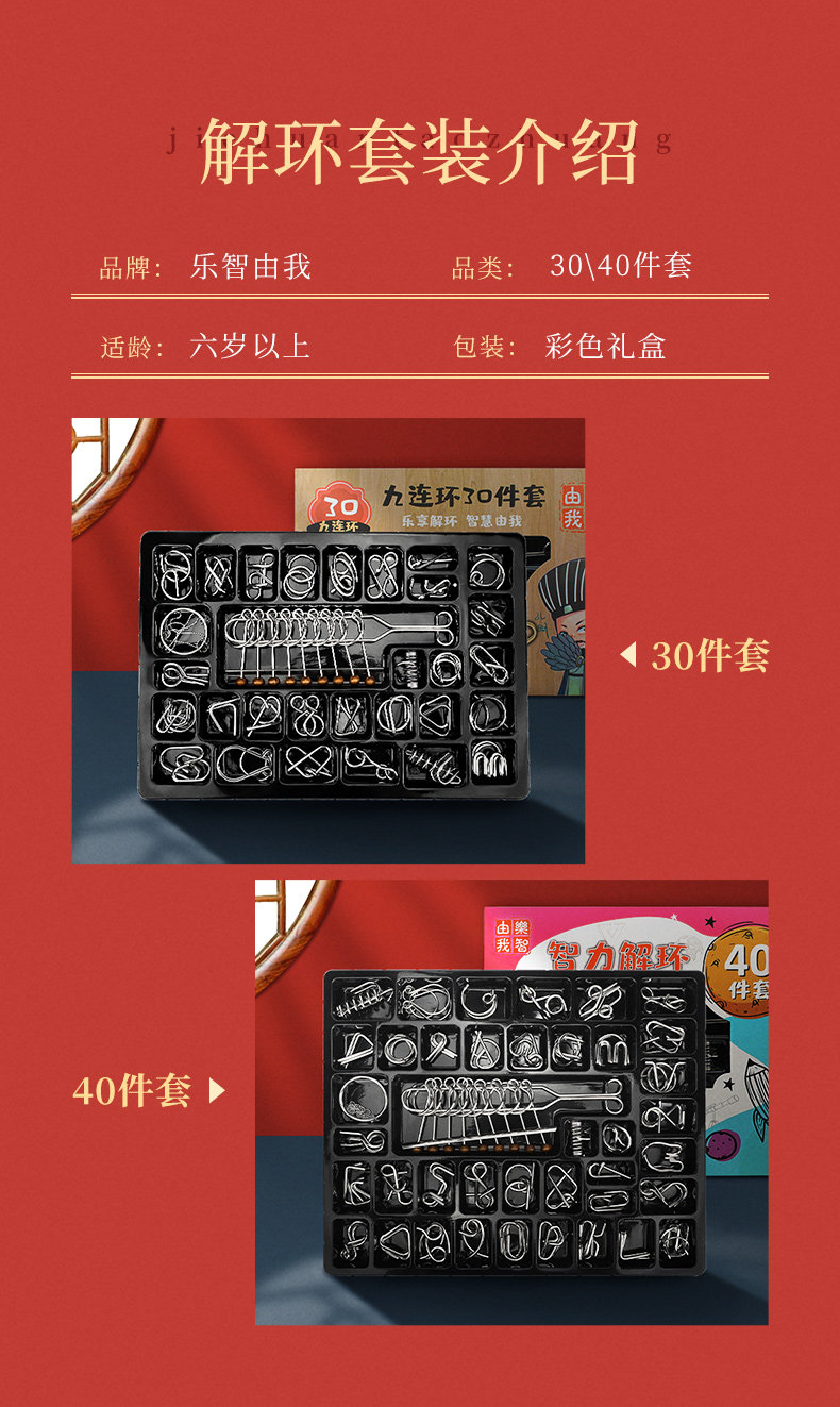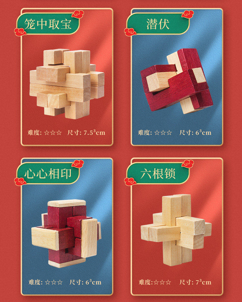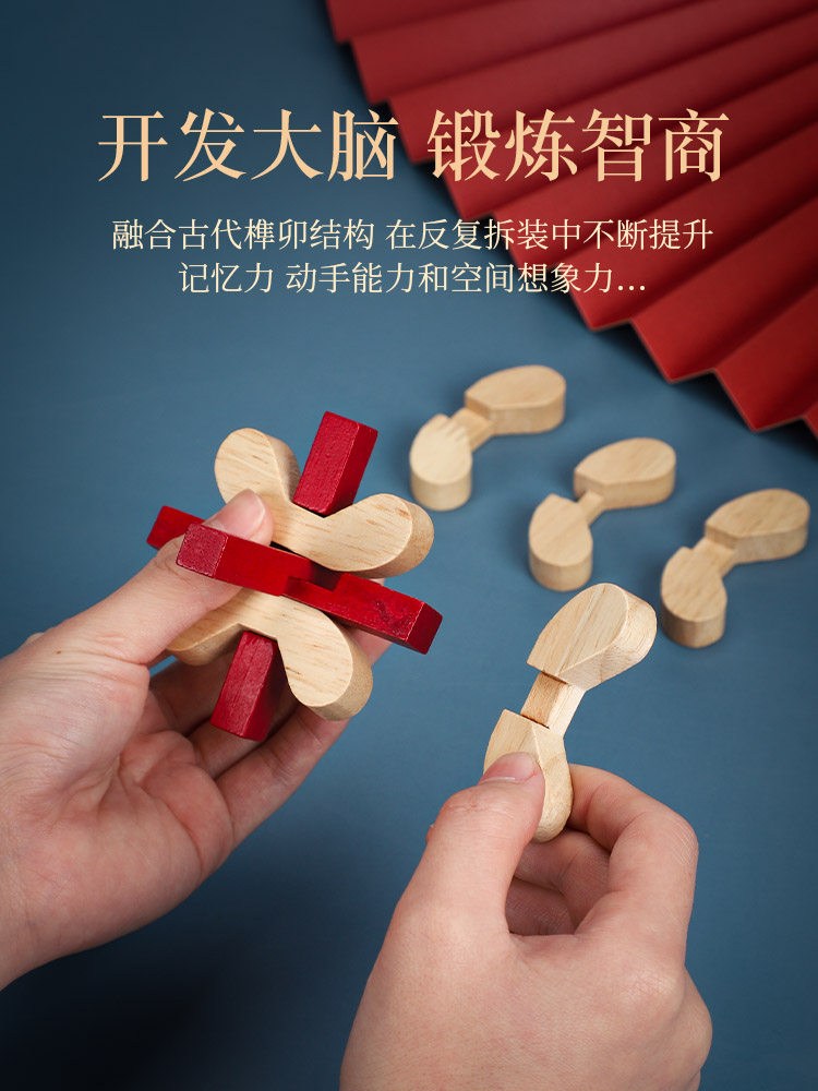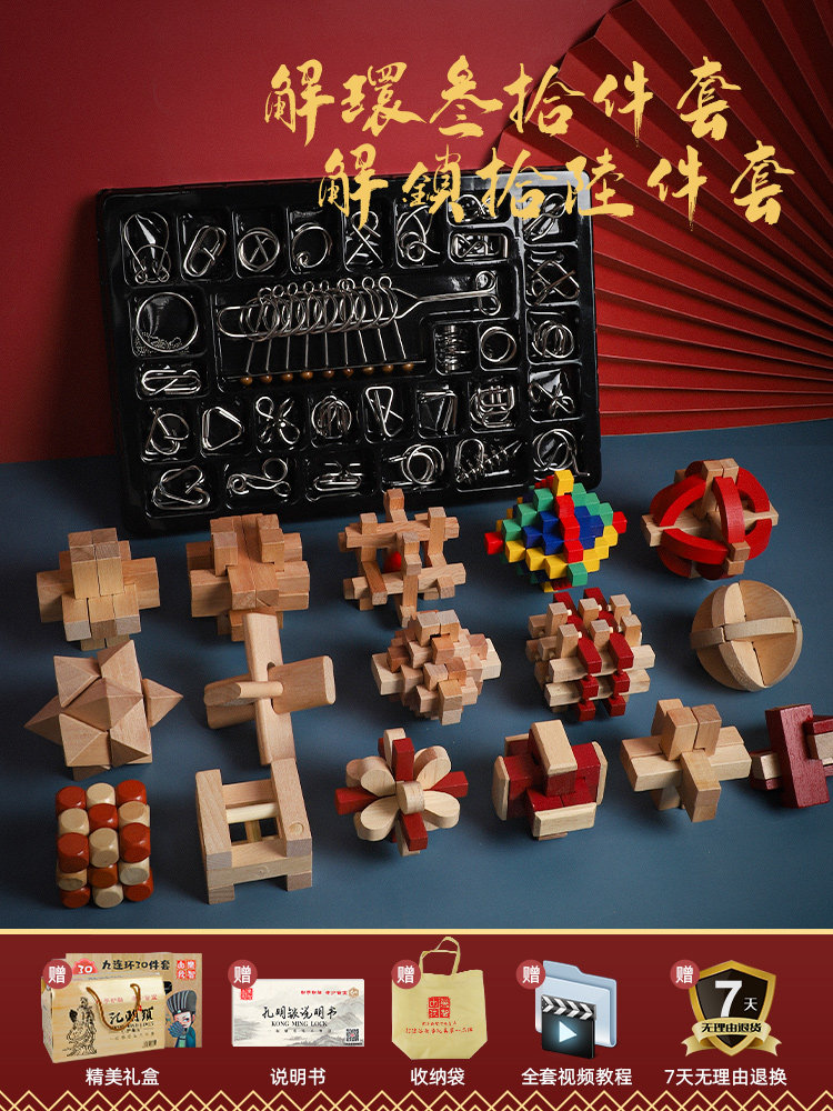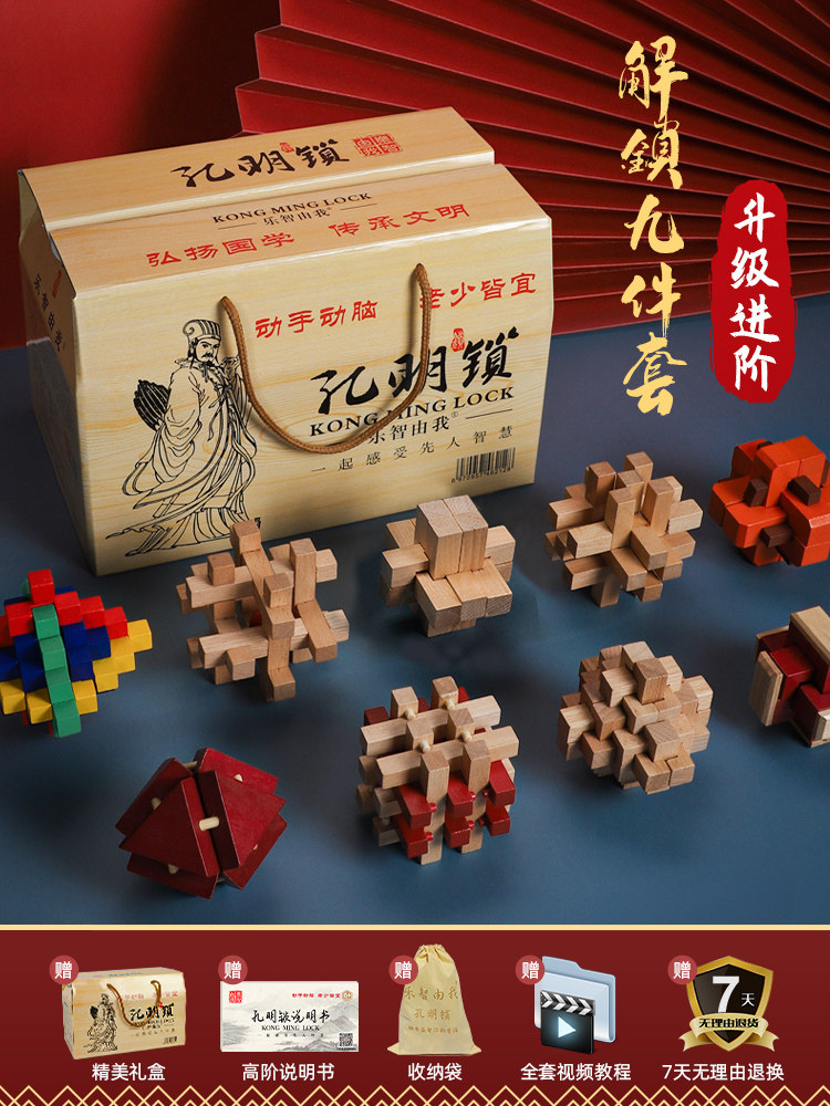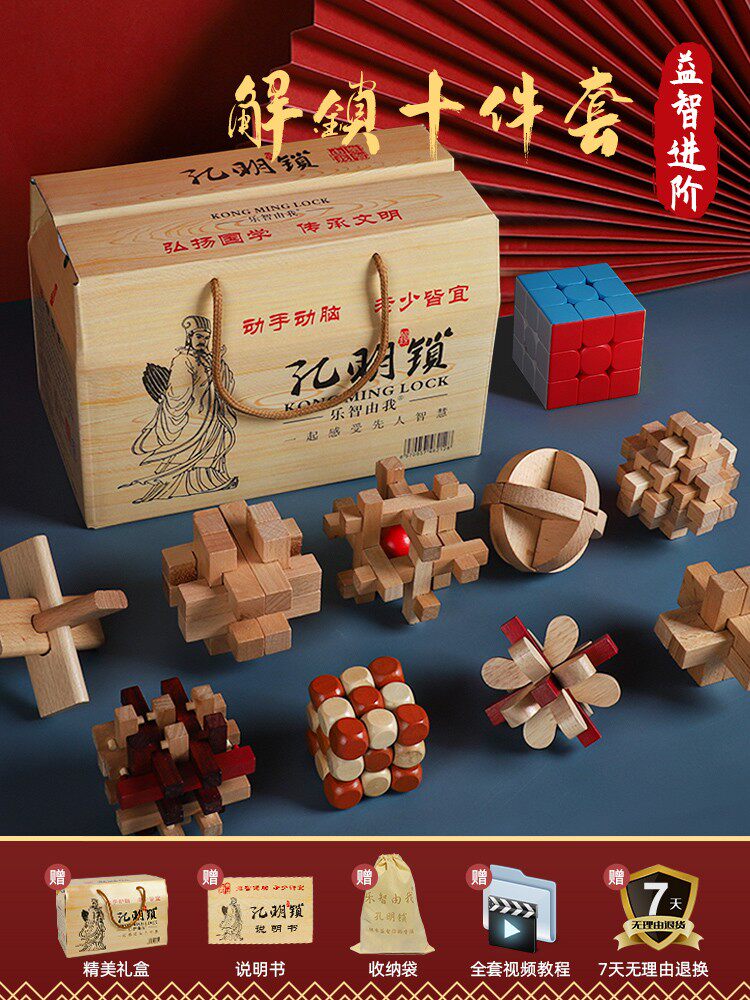 鲁班锁孔明锁全套小学生智力锁解扣榫卯积木9儿童8一12岁益智玩具