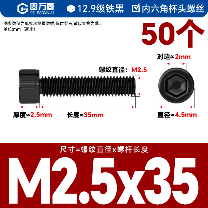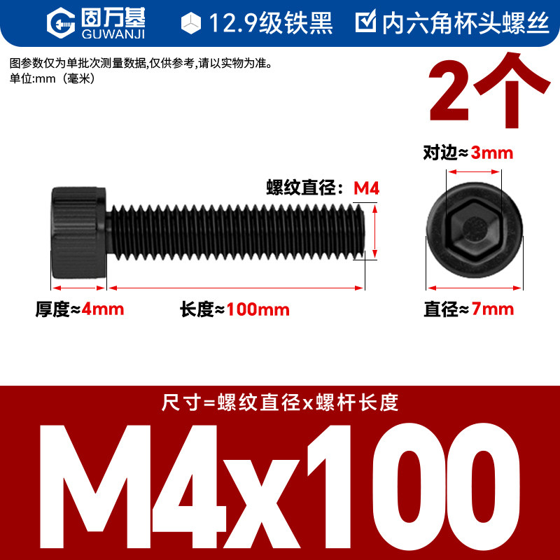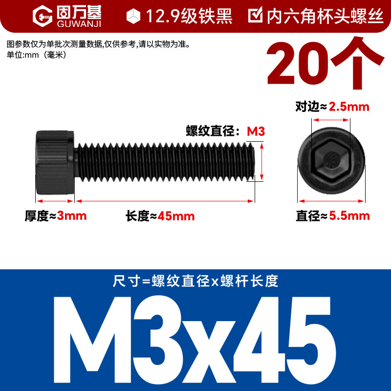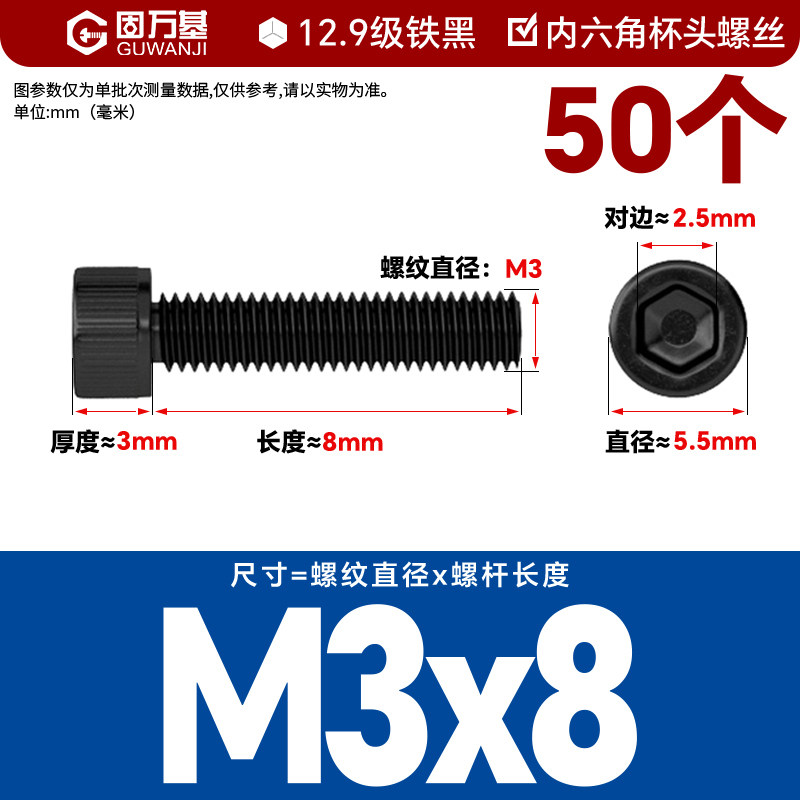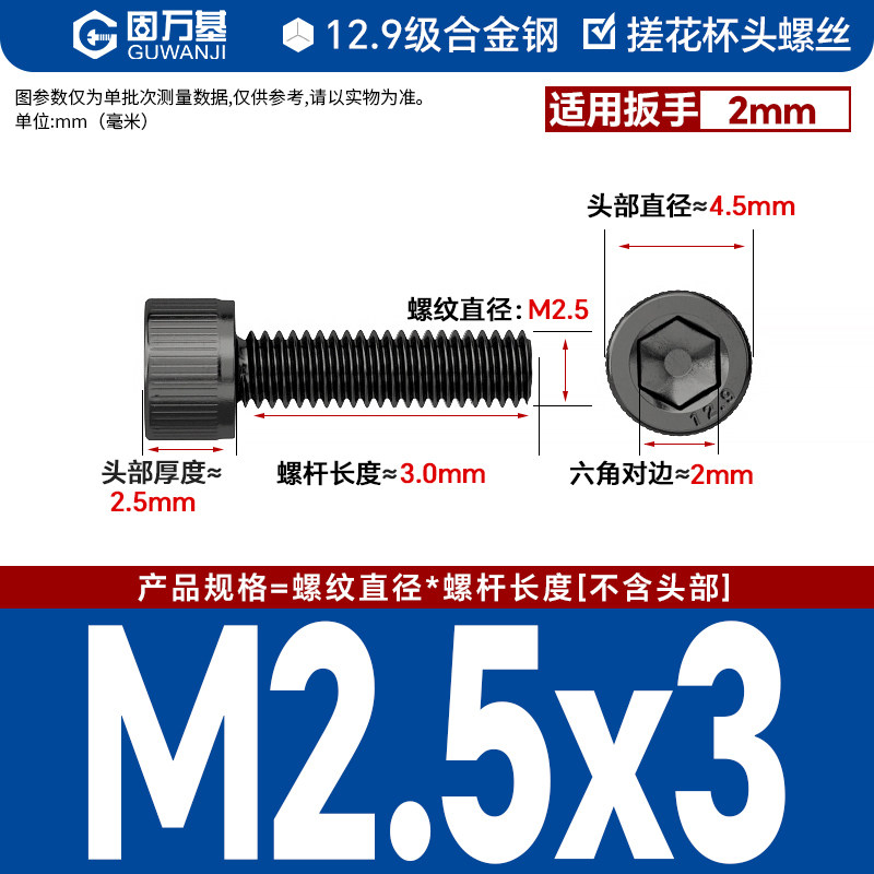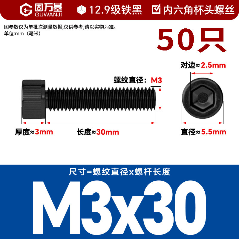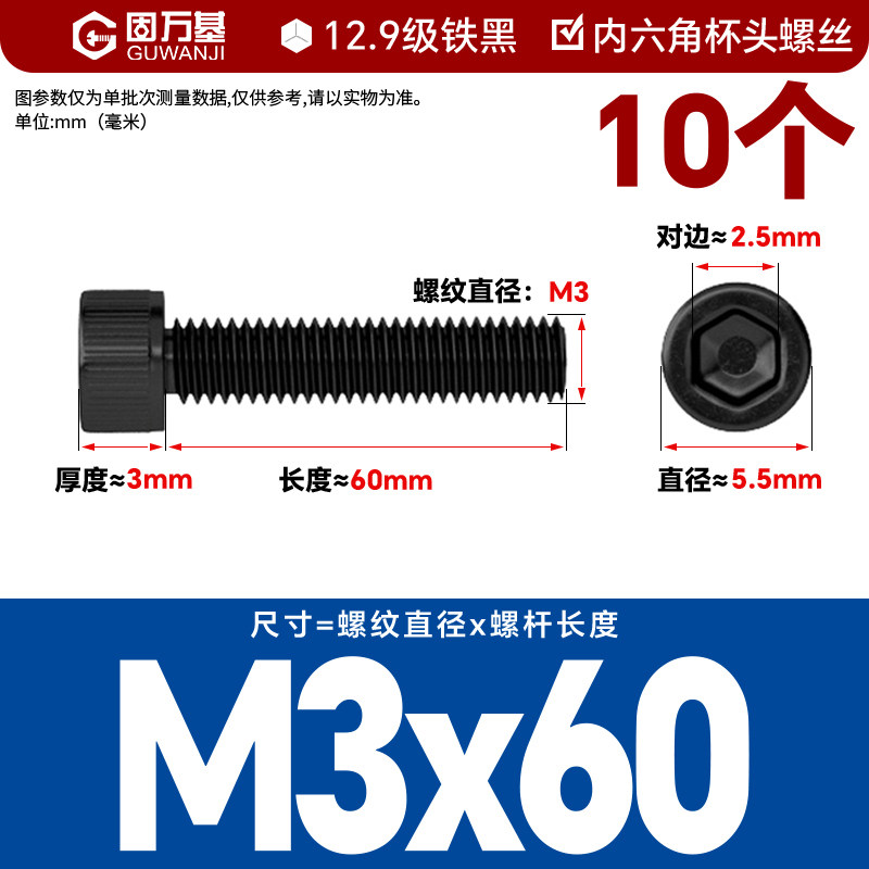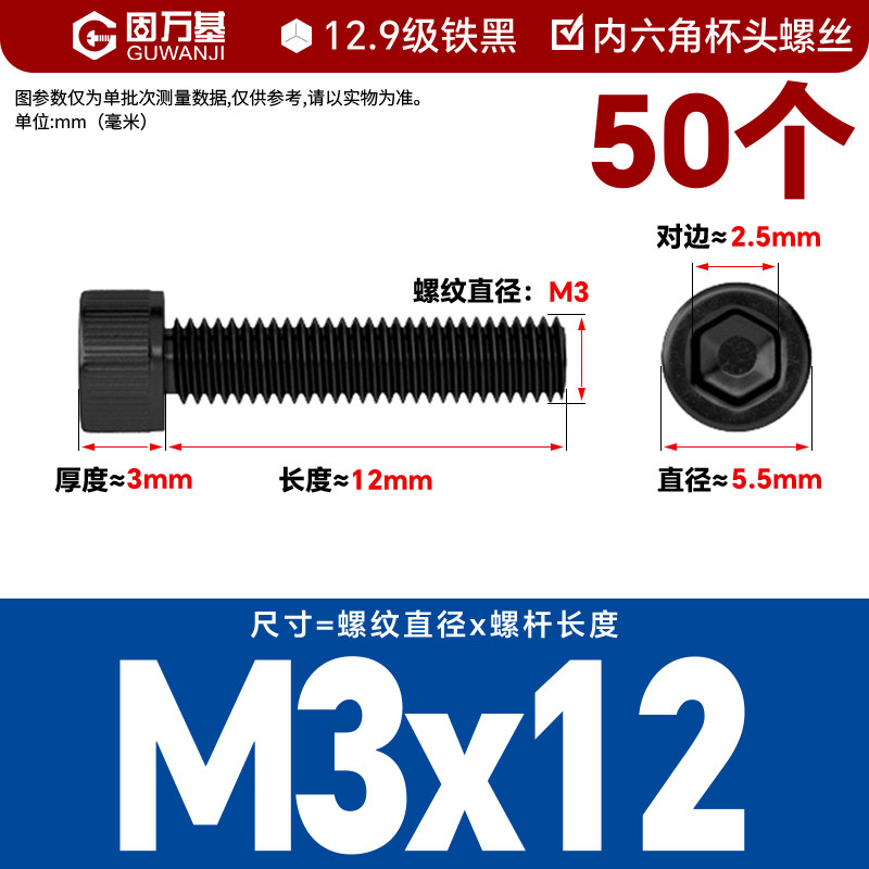 内六角螺丝 12.9级高强度螺钉圆柱头螺栓杯头螺丝钉M2M3M4M5M6M8