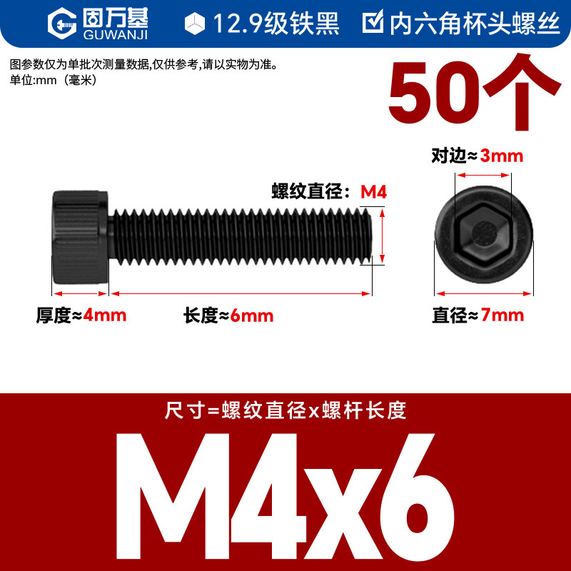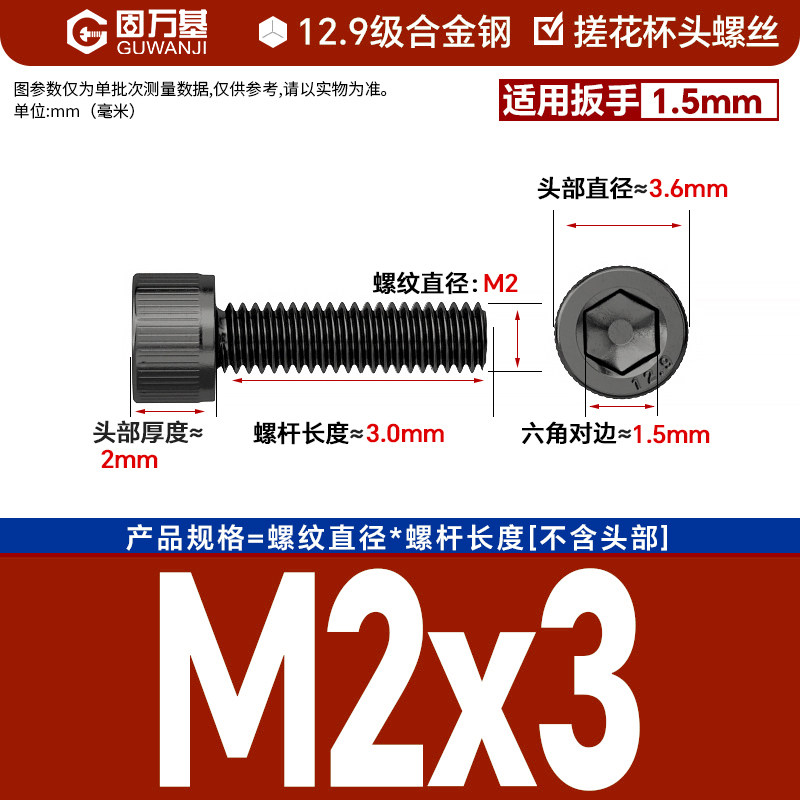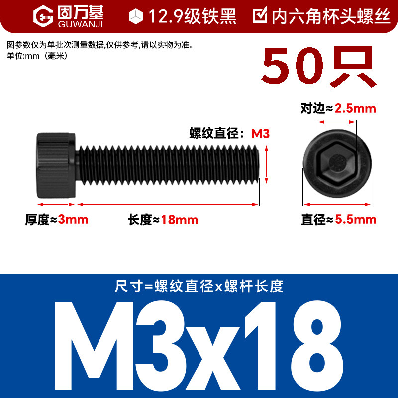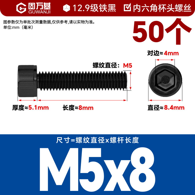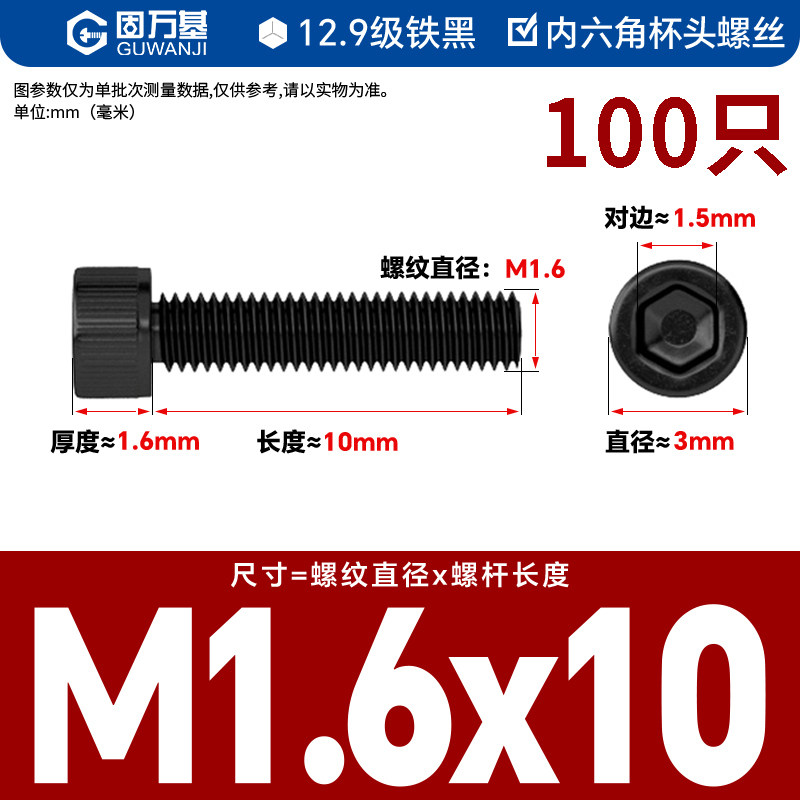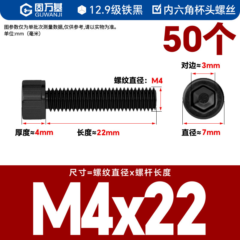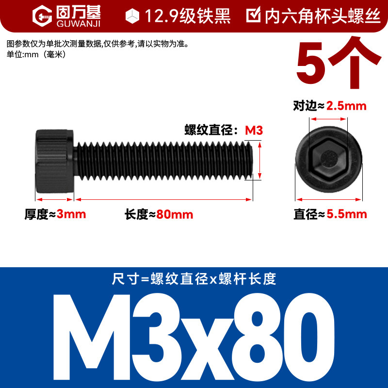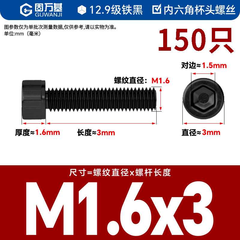 内六角螺丝 12.9级高强度螺钉圆柱头螺栓杯头螺丝钉M2M3M4M5M6M8