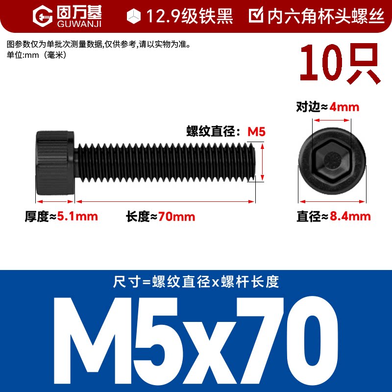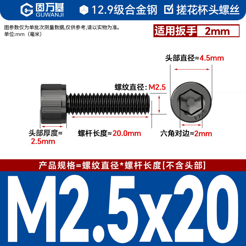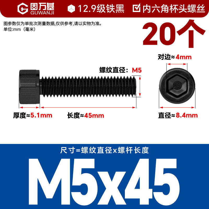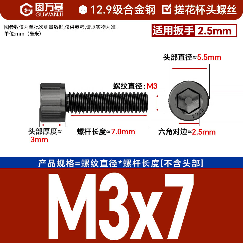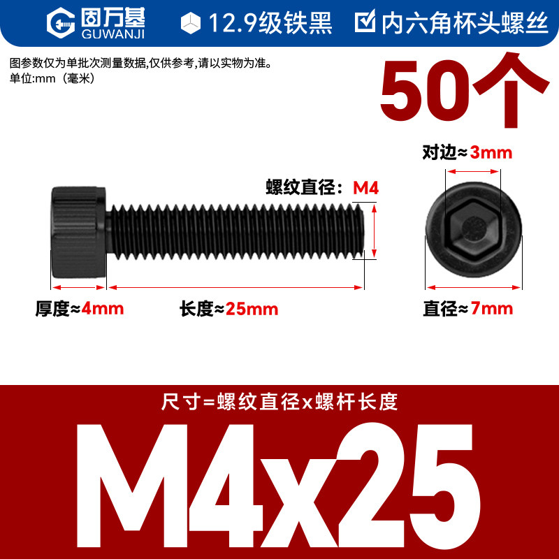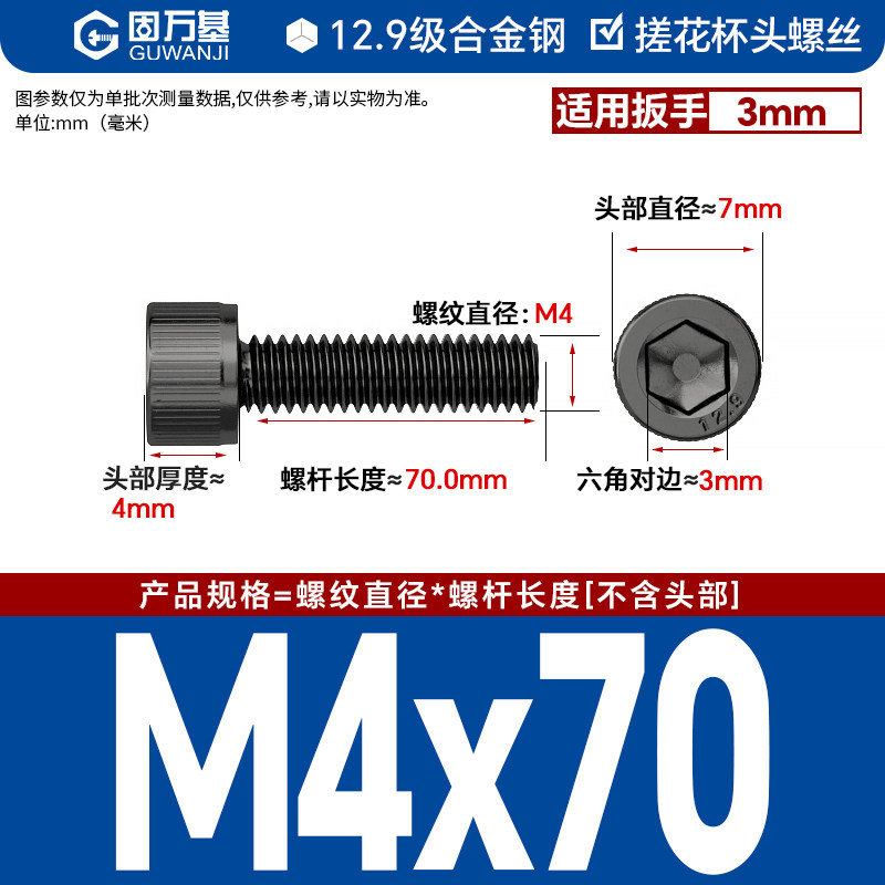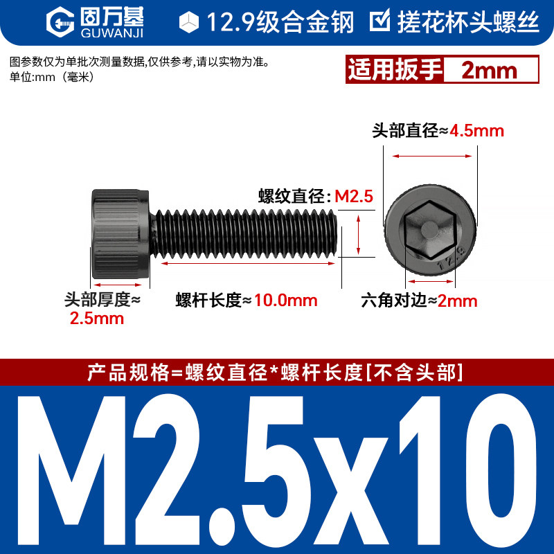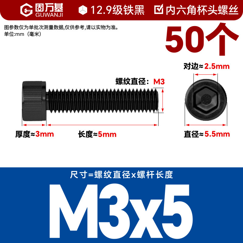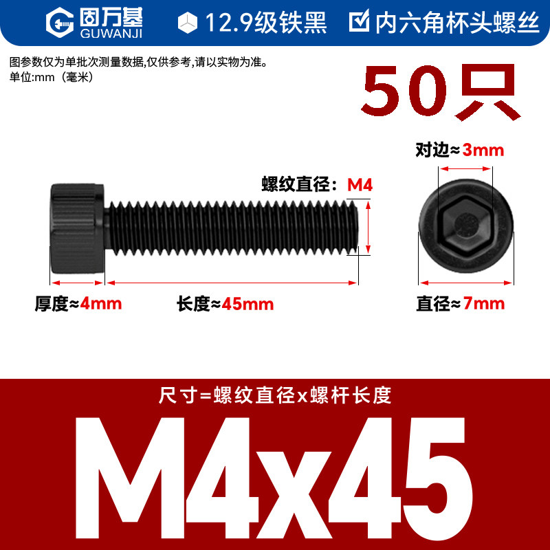 内六角螺丝 12.9级高强度螺钉圆柱头螺栓杯头螺丝钉M2M3M4M5M6M8