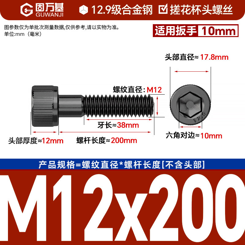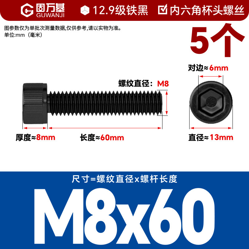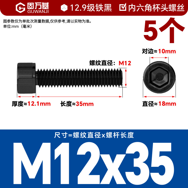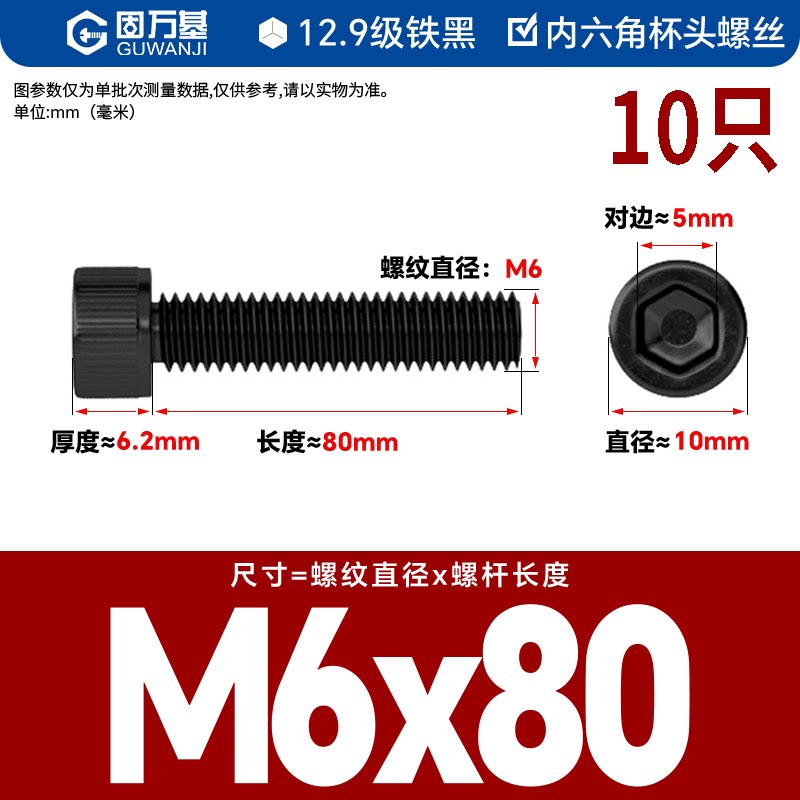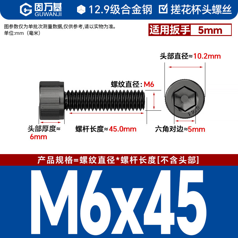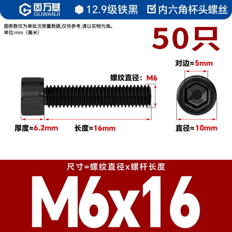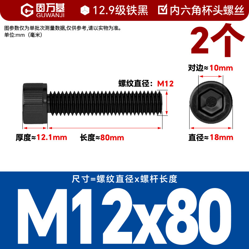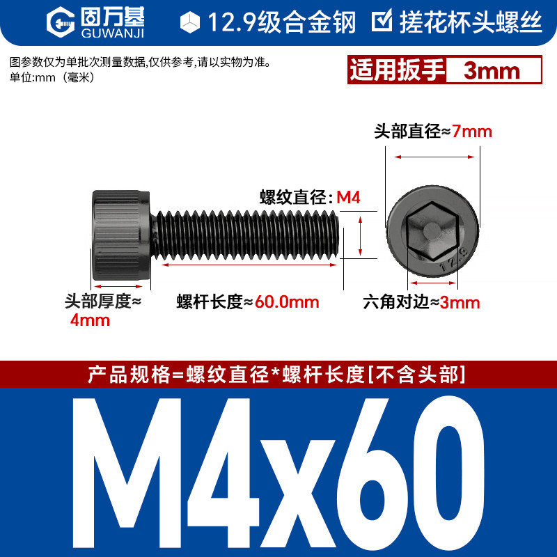 内六角螺丝 12.9级高强度螺钉圆柱头螺栓杯头螺丝钉M2M3M4M5M6M8