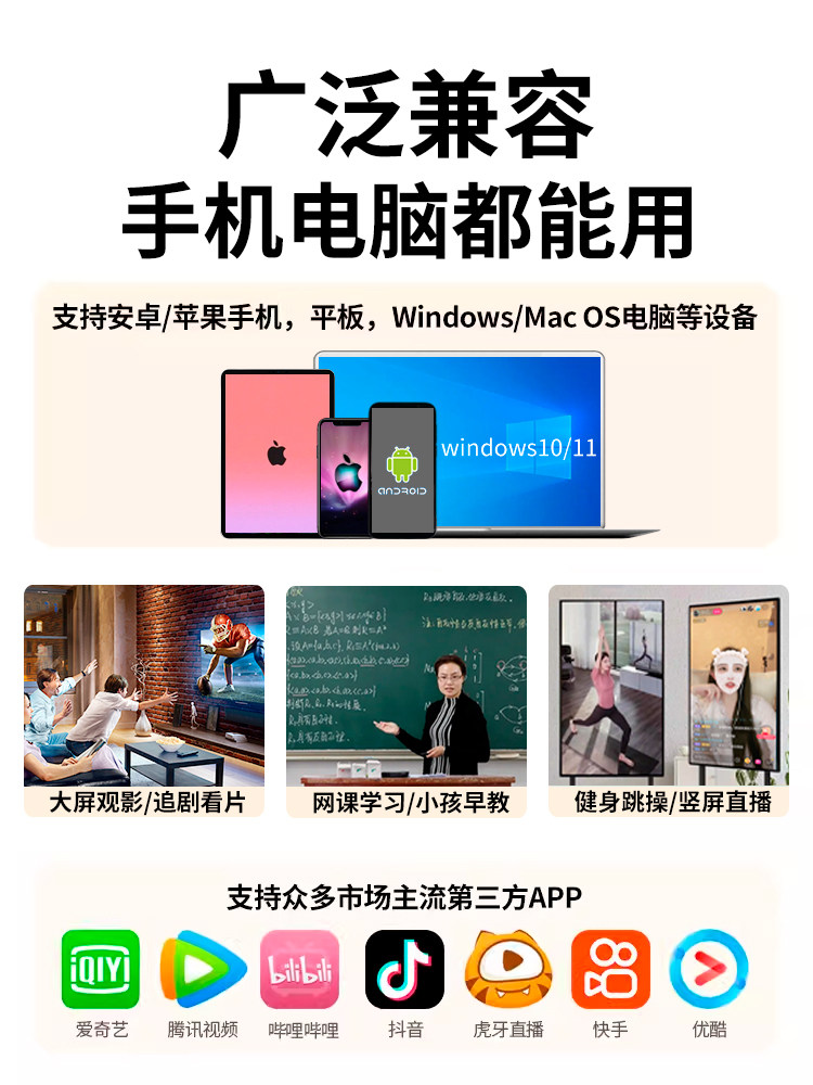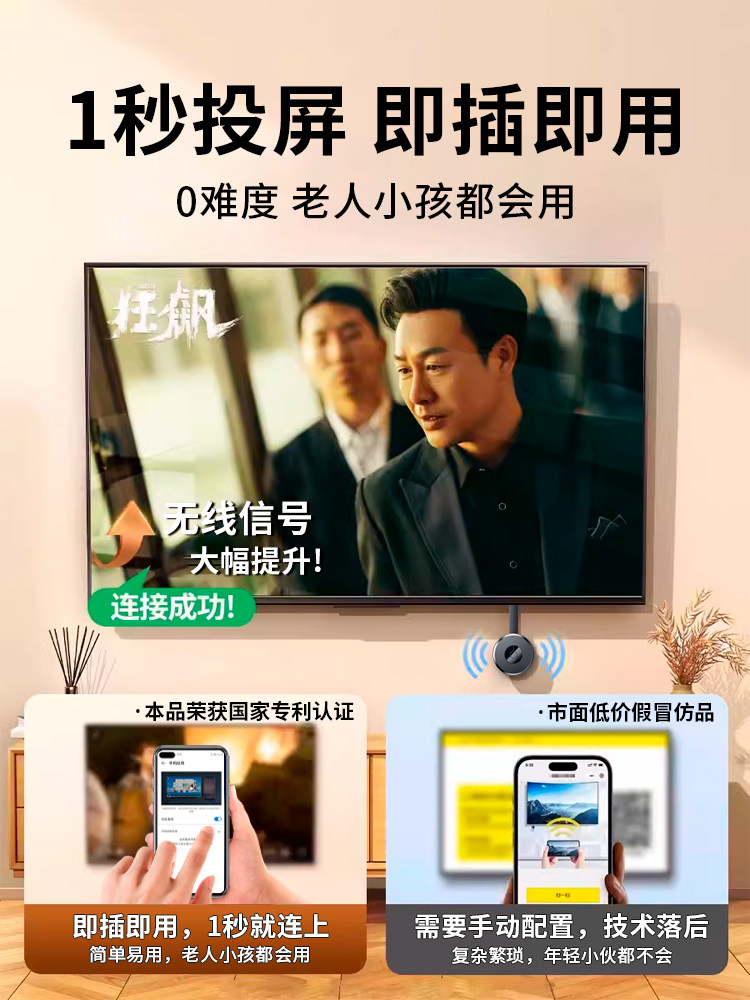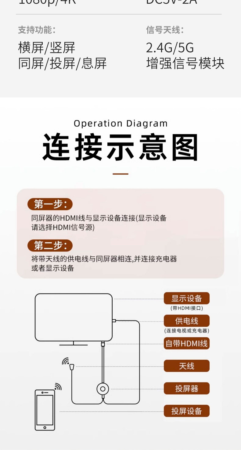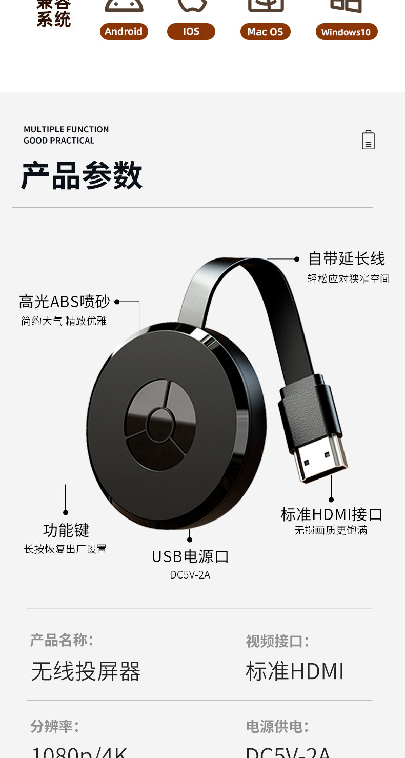 无线投屏器手机连电视同屏神器转接投影仪hdmi电脑传输显示转换器