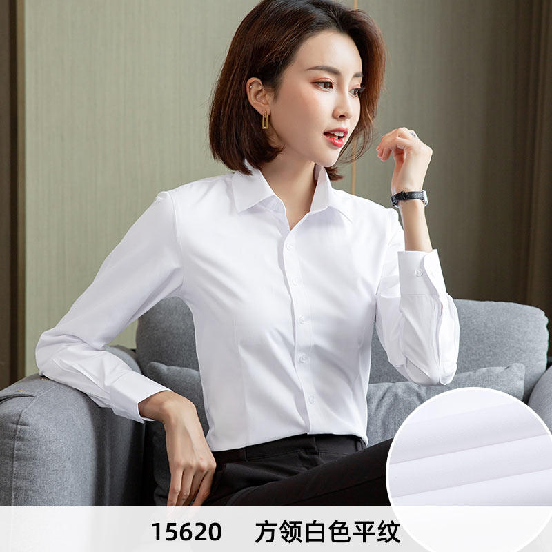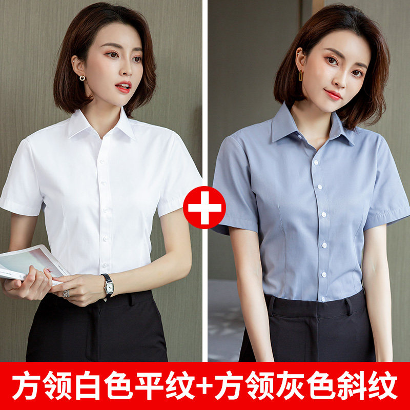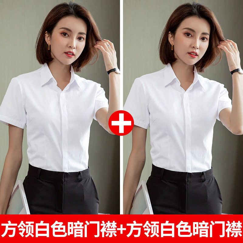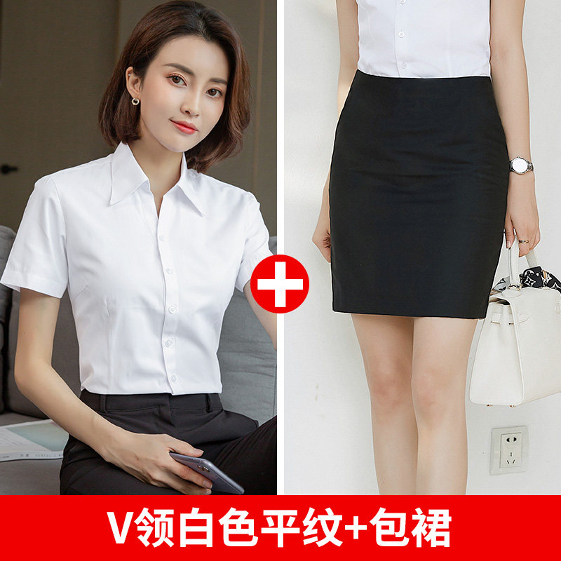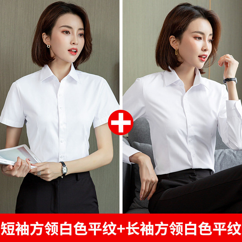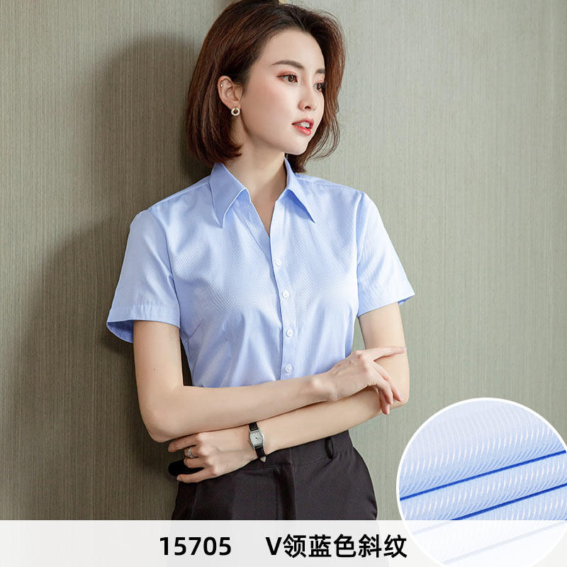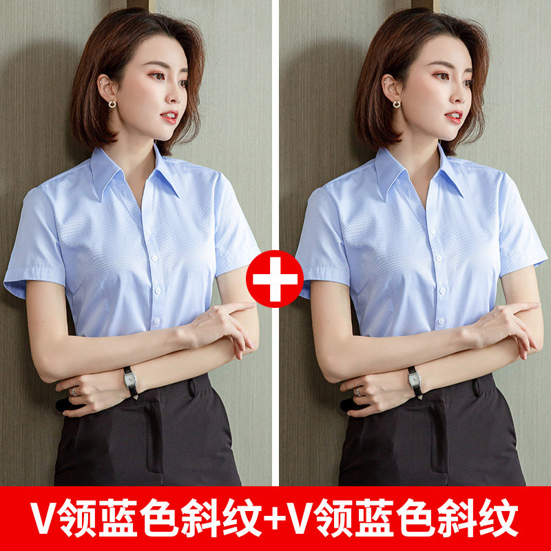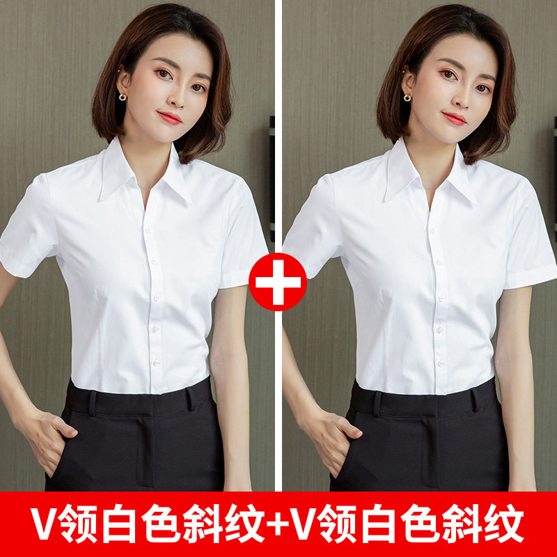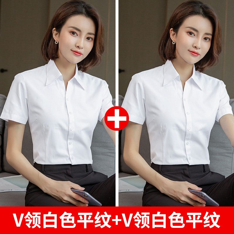 HomeProducts白色短袖衬衫女职业夏季2026新款V领通勤正装工作服长袖气质衬衣