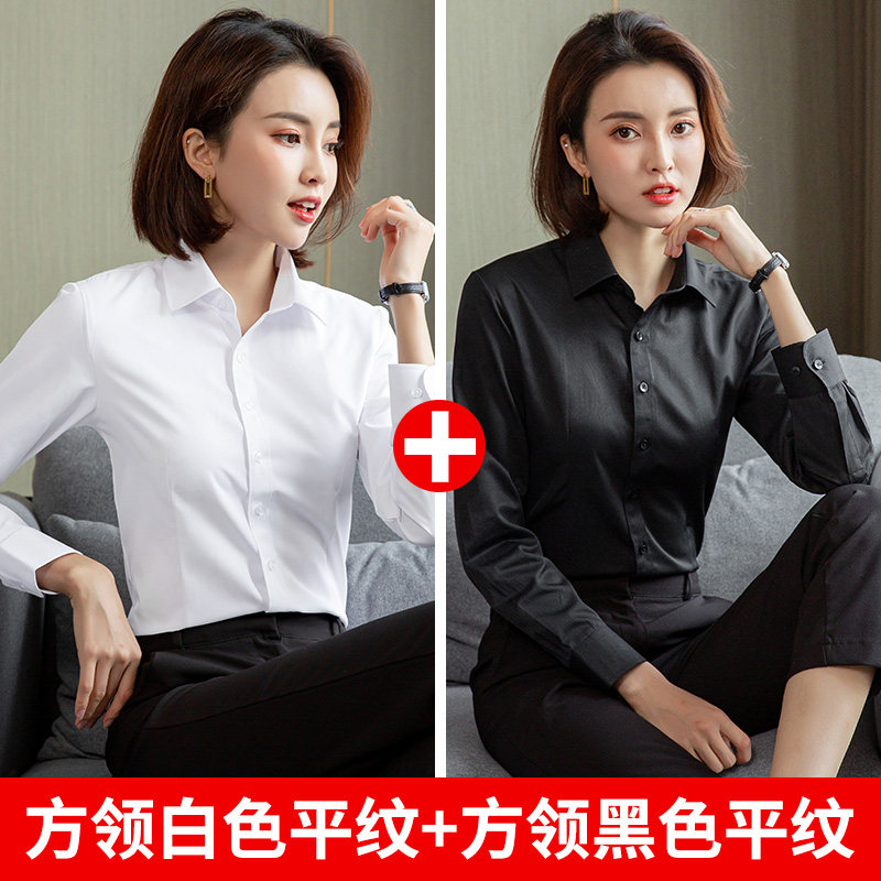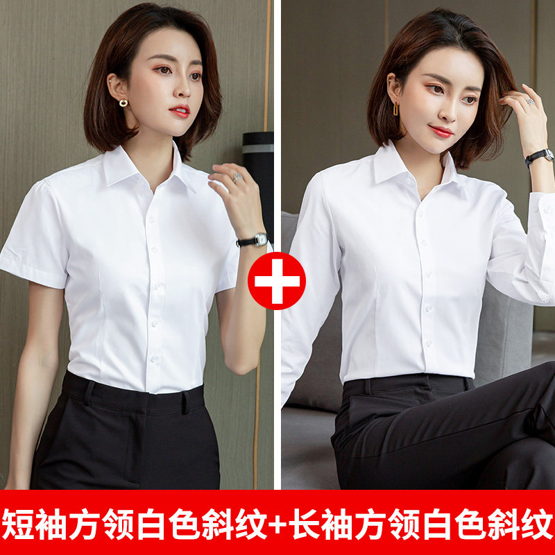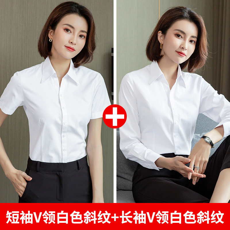 白色短袖衬衫女职业夏季2026新款V领通勤正装工作服长袖气质衬衣