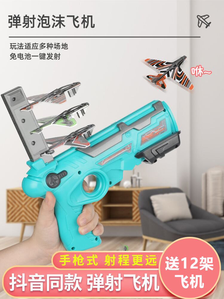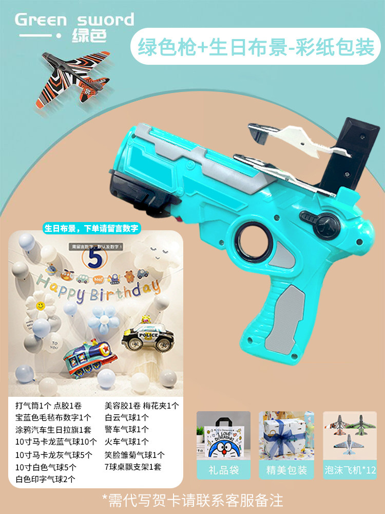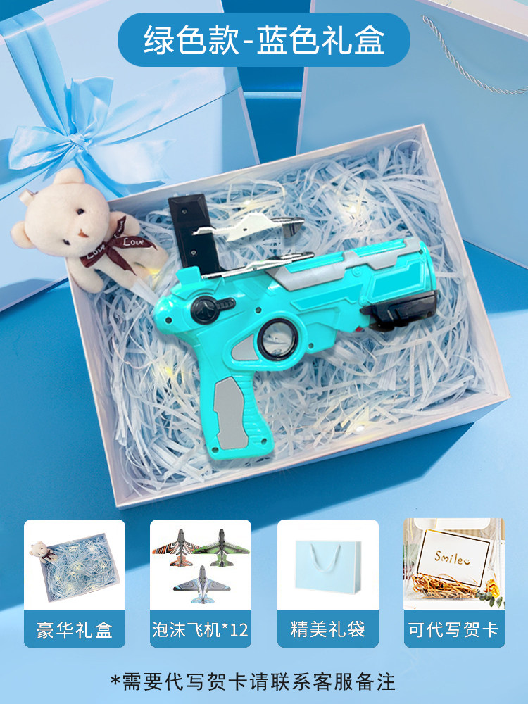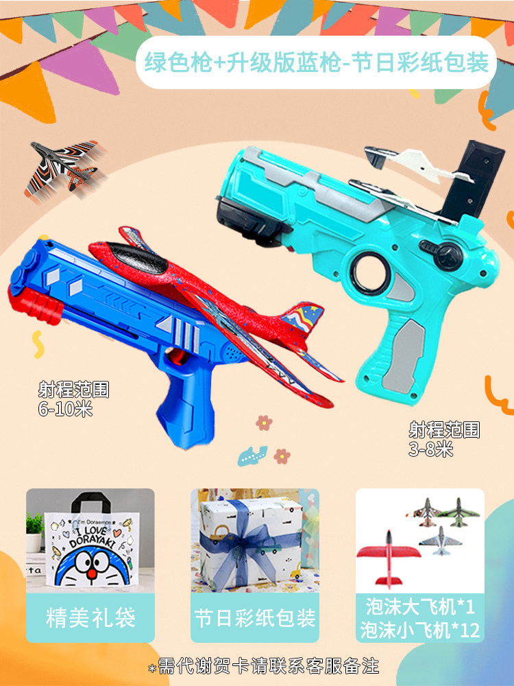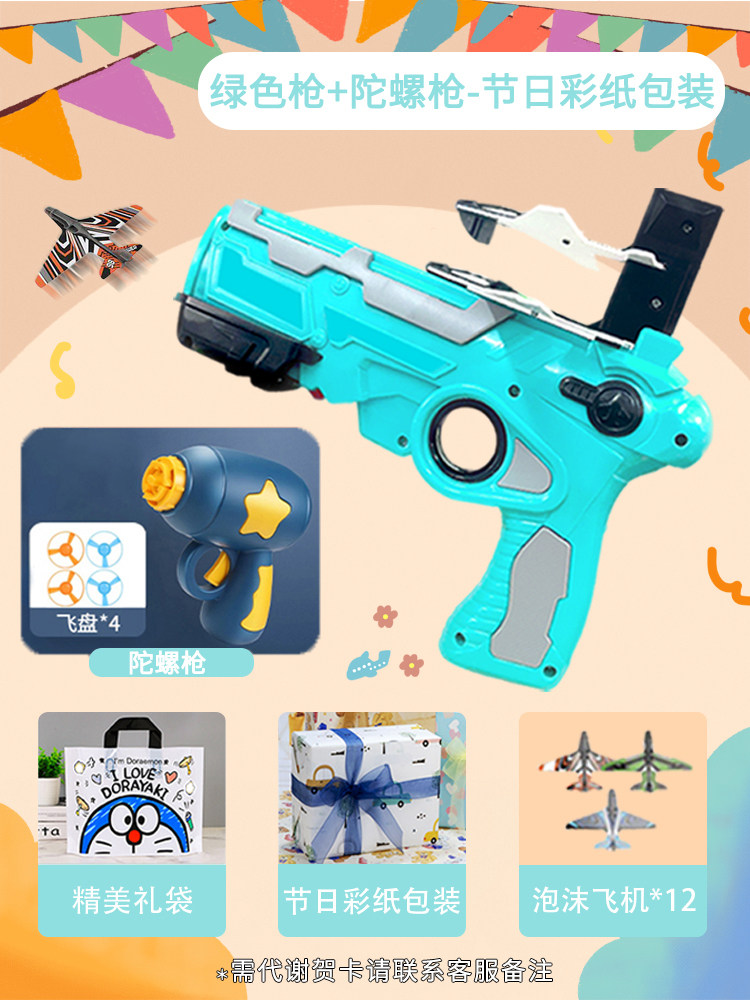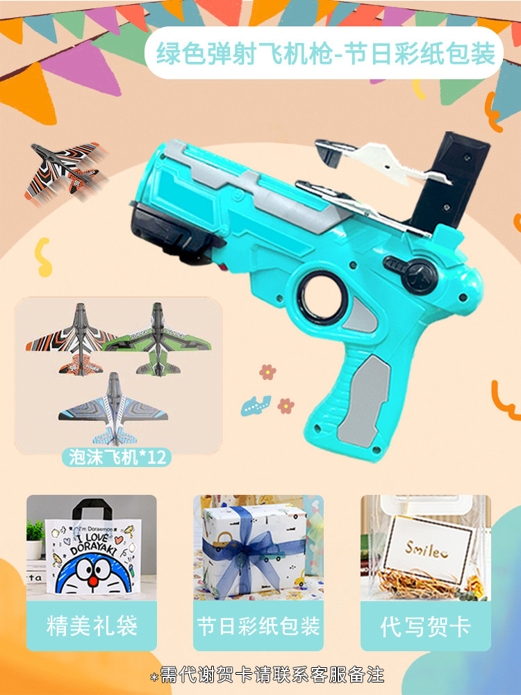 弹射玩具飞机枪/绿色【节日彩纸包装+礼品袋+赠送12架飞机】