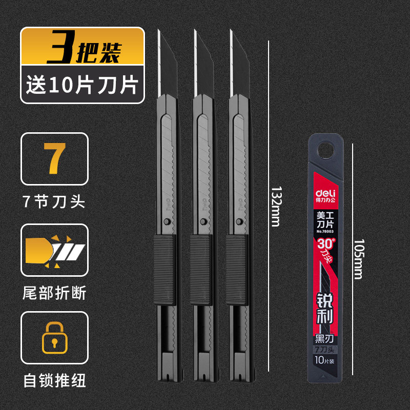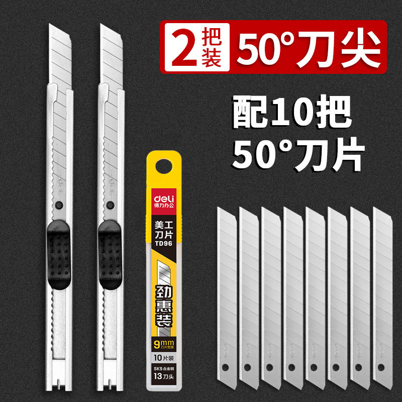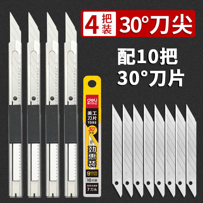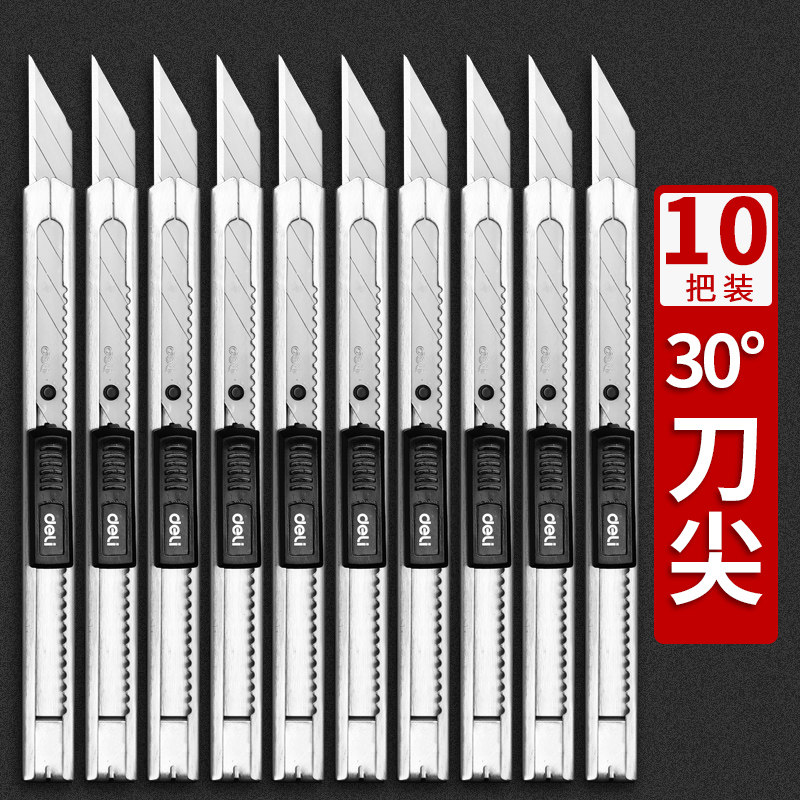 得力美工刀裁纸刀壁纸刀拆快递刀开箱包裹手工刀不锈钢锋利小刀子刀具美术生专用墙纸刀拆纸刀割纸刀刀片批发