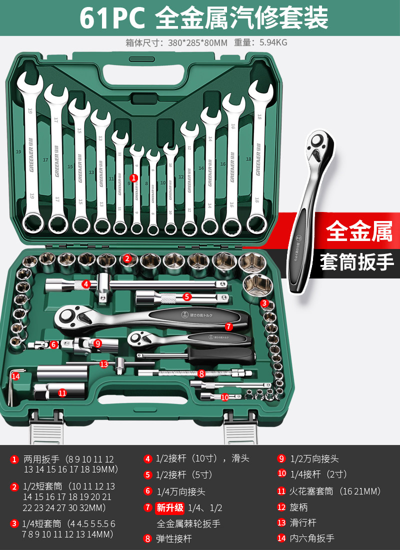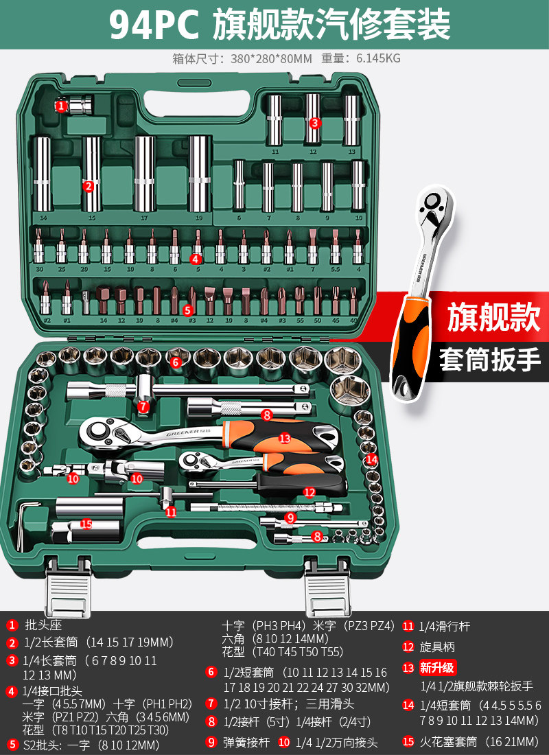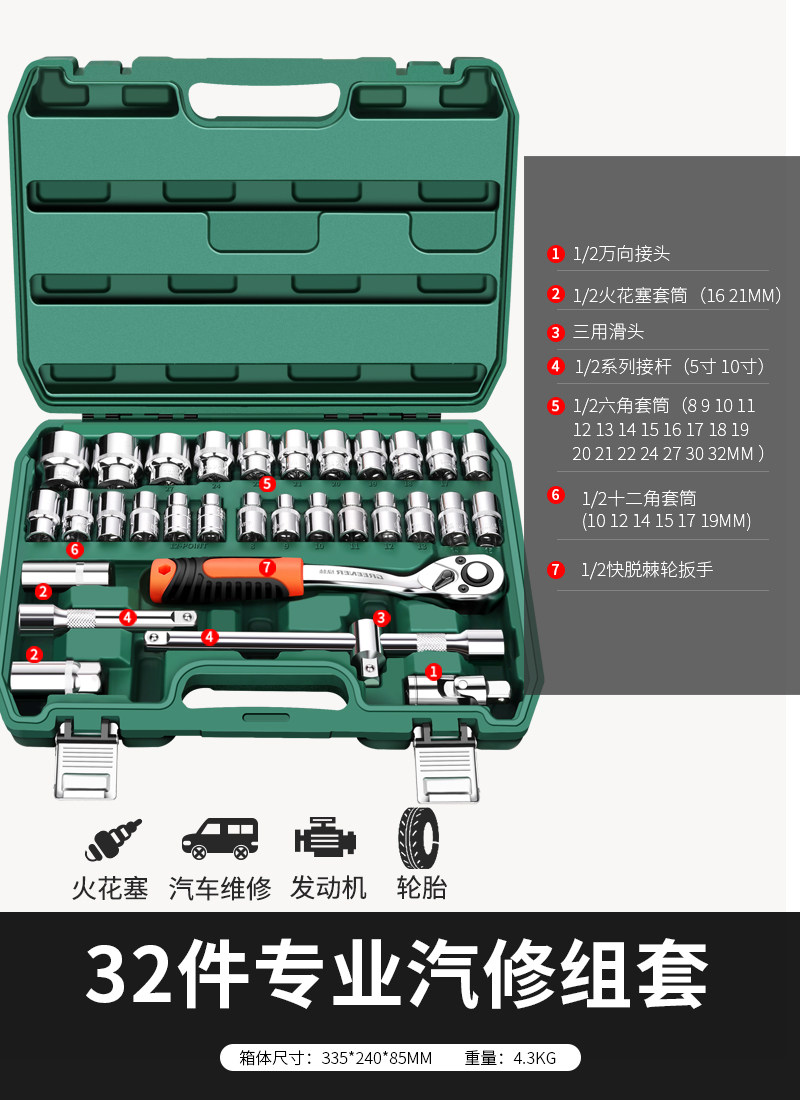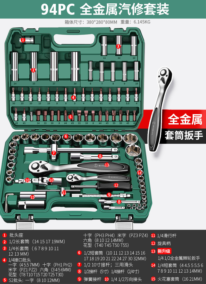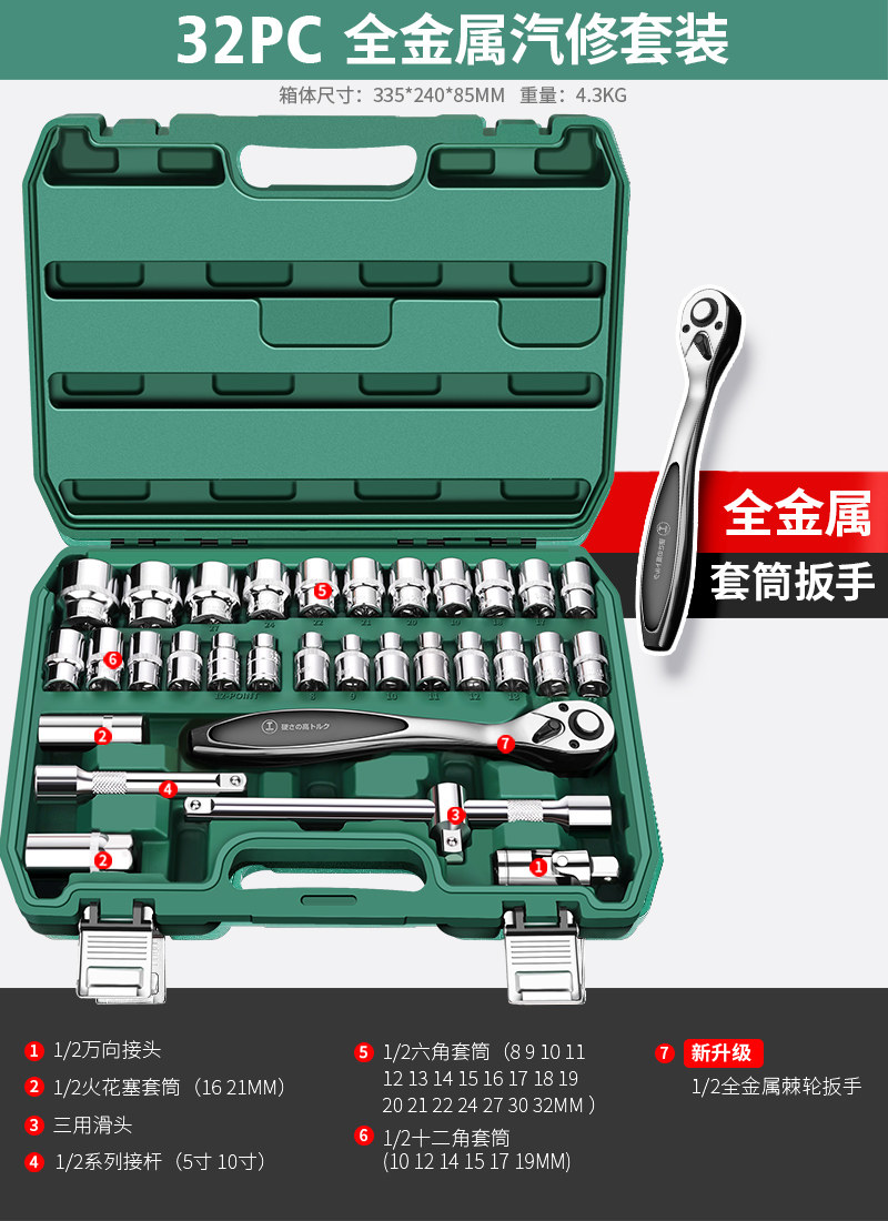 升级72齿弯柄汽修32件套