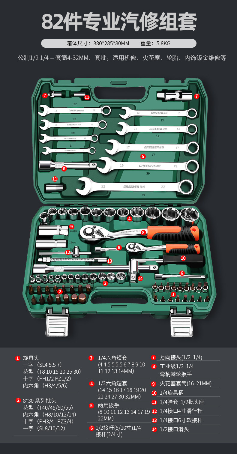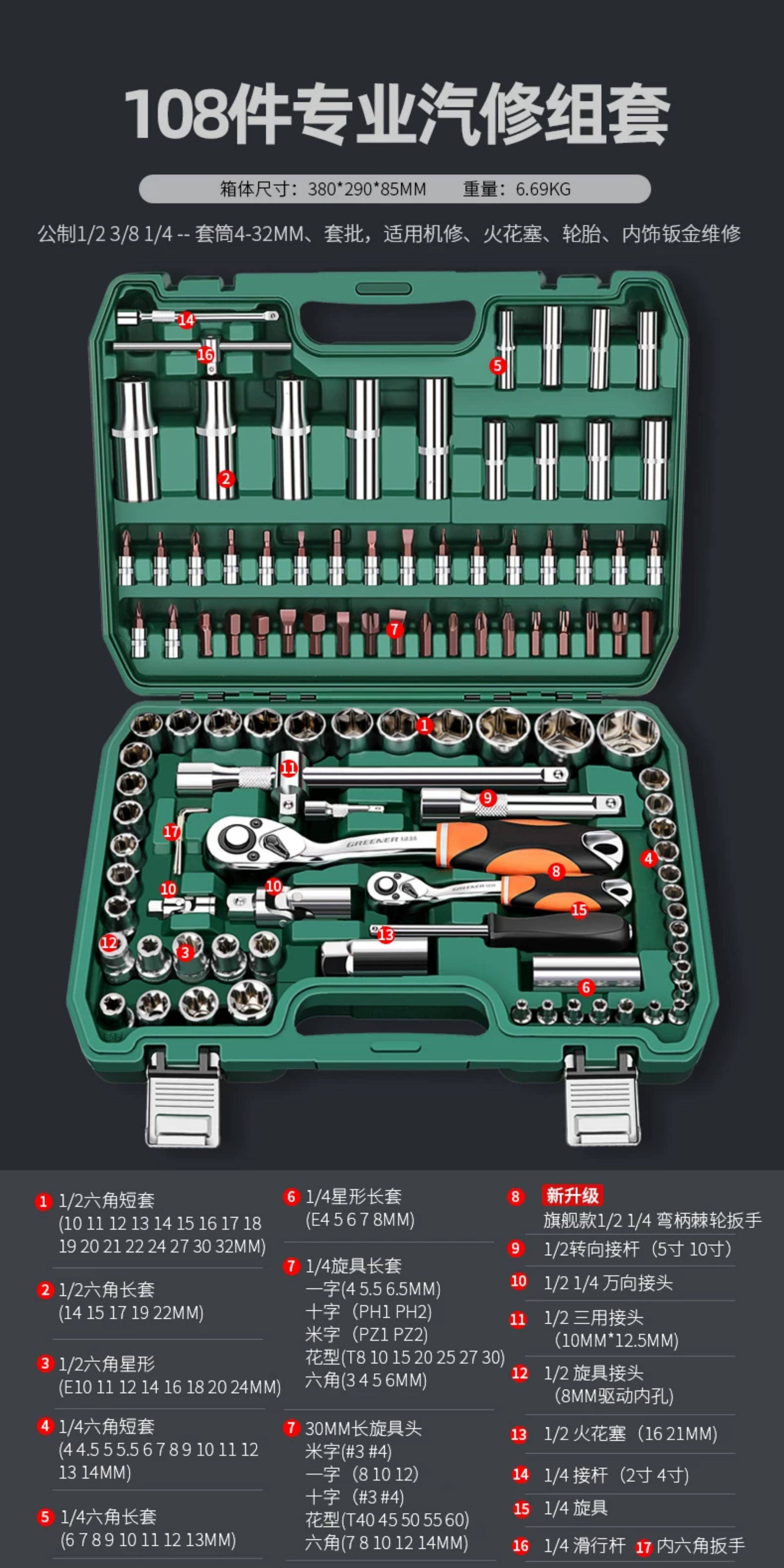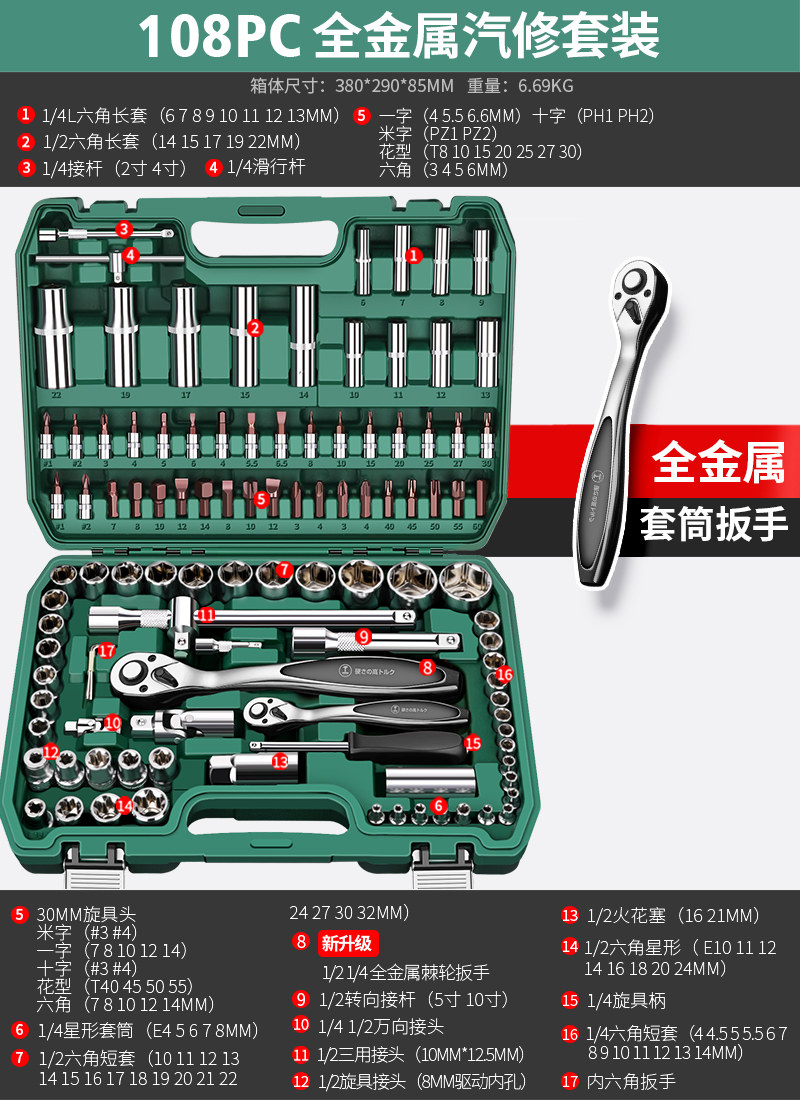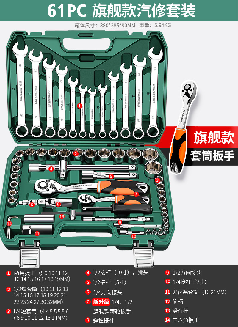 升级72齿弯柄汽修32件套
