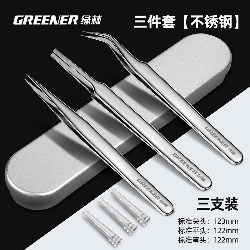 HomeProducts绿林镊子不锈钢燕窝挑毛神器高精密工具维修弯头尖头捏聂子夹摄子