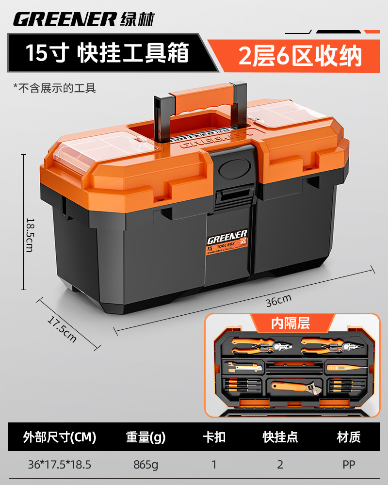 绿林工具箱收纳盒五金大号工业级家用手提式车载多功能维修电工