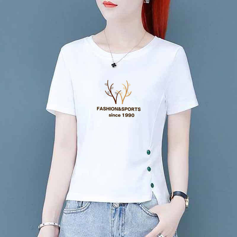 白色短袖t恤女2024新款夏季韩版修身不规则百搭短款体恤上衣ins潮