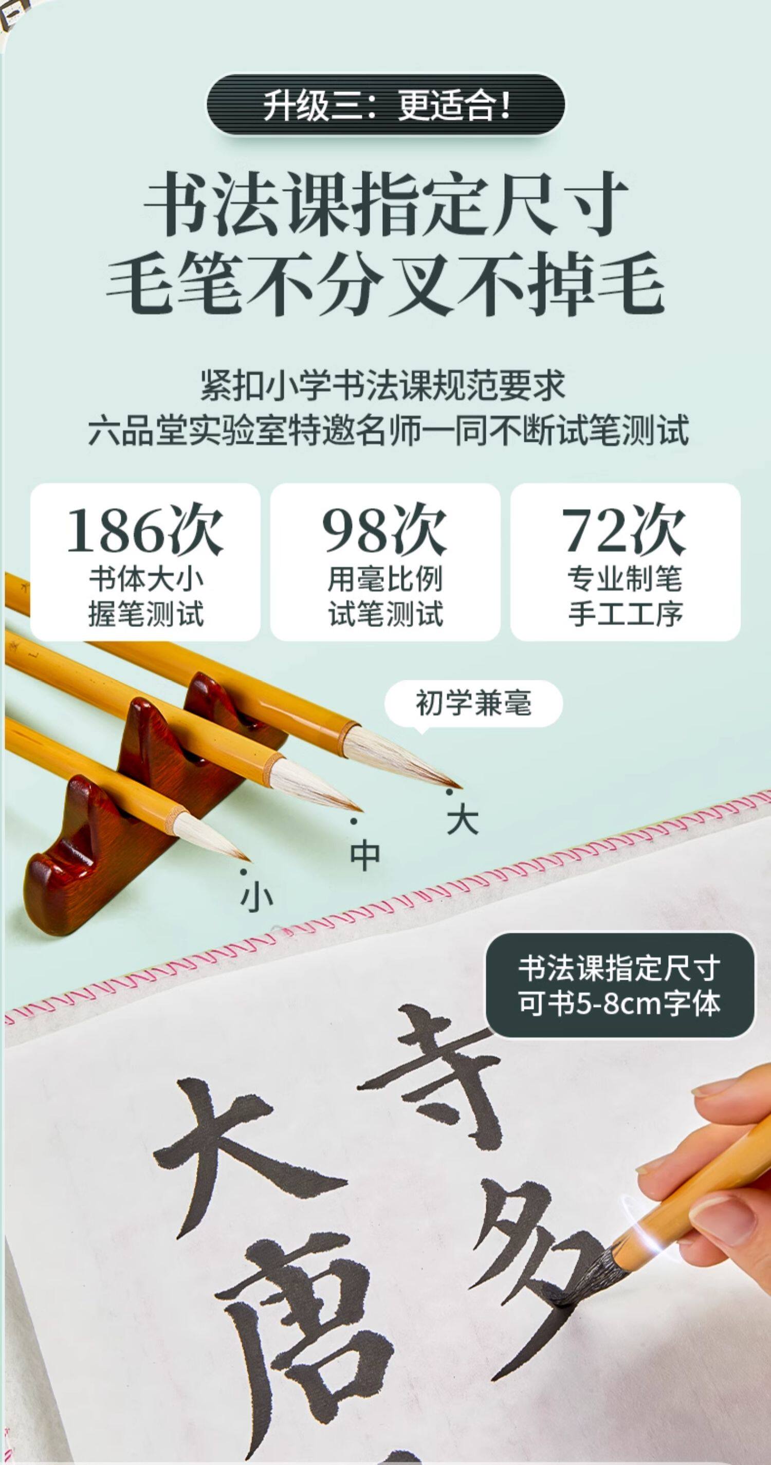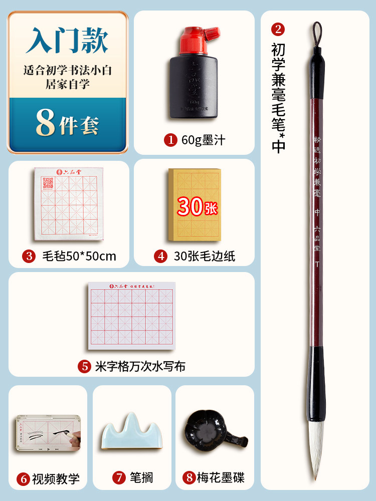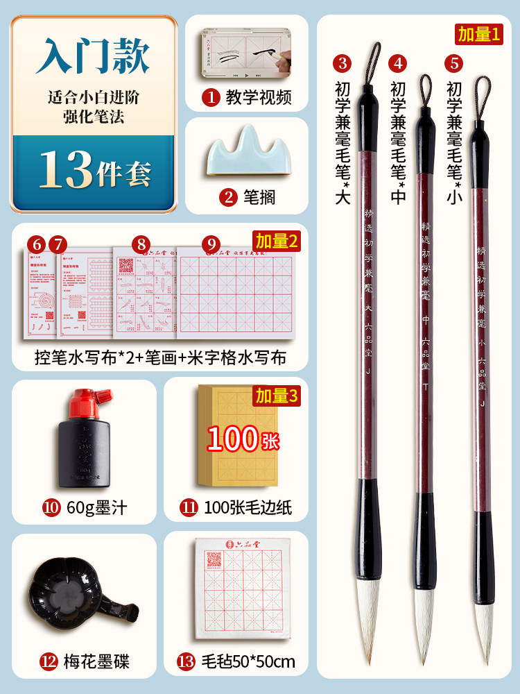毛笔初学书法套装初学者入门专用狼毫兼毫儿童小学生水写布笔墨纸砚练字全套成人专业文房四宝收纳工具六品堂