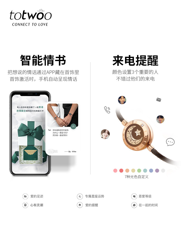 totwoo智能感应情侣手链日月恋人闪光震动异地恋原创送情人节礼物