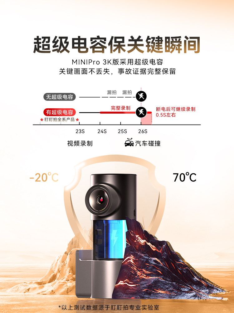 盯盯拍行车记录仪2026新款免走线汽车载超高清夜视停车监控24小时