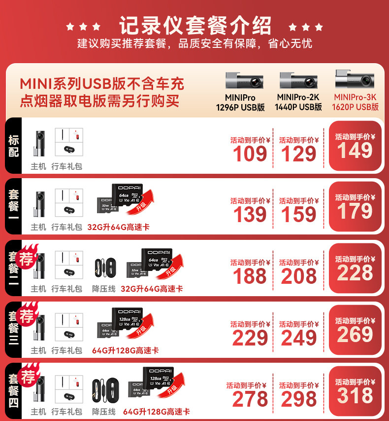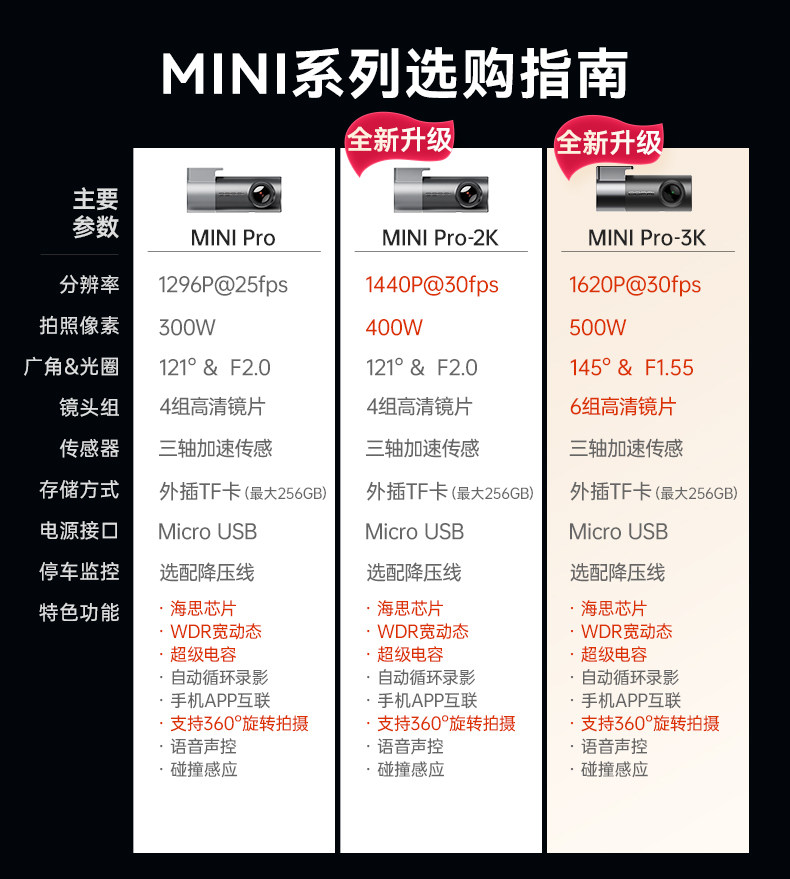 标配(无内存卡) / 单镜头 / 新品上市USB版(不含车充)-MINIPro 3K