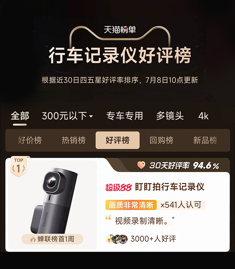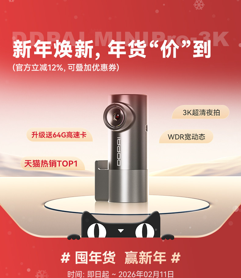HomeProducts盯盯拍行车记录仪2026新款免走线汽车载超高清夜视停车监控24小时
