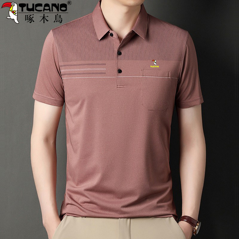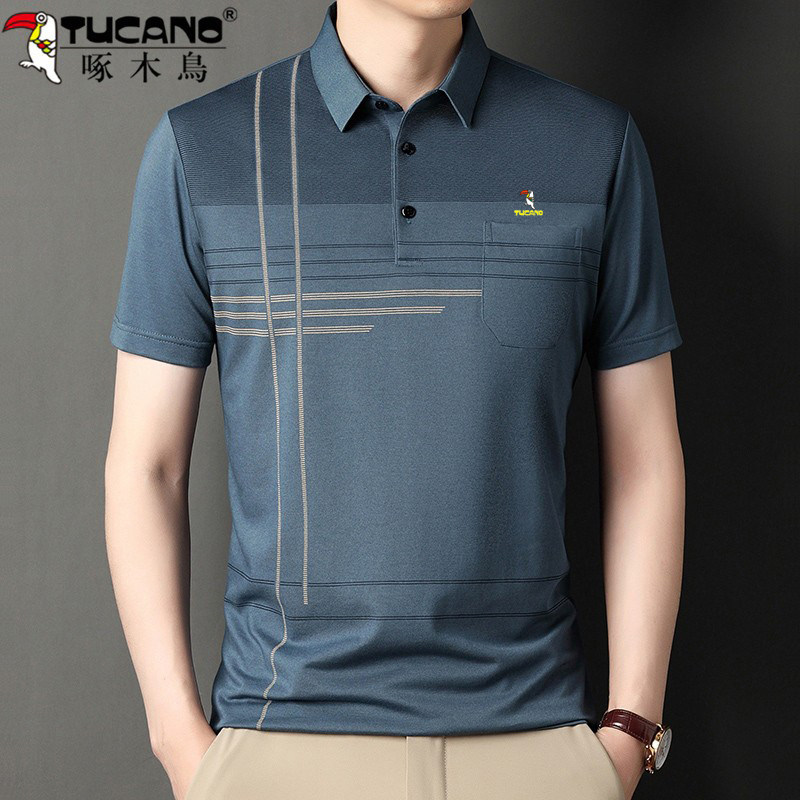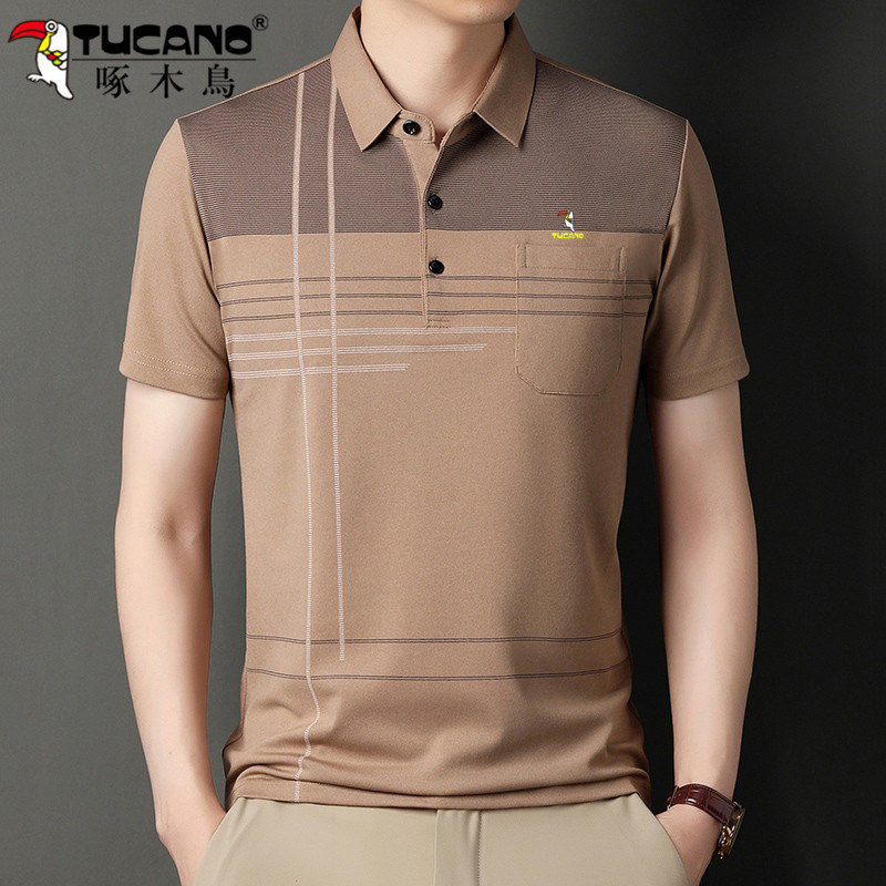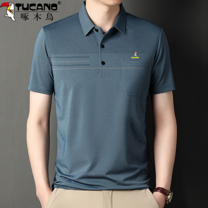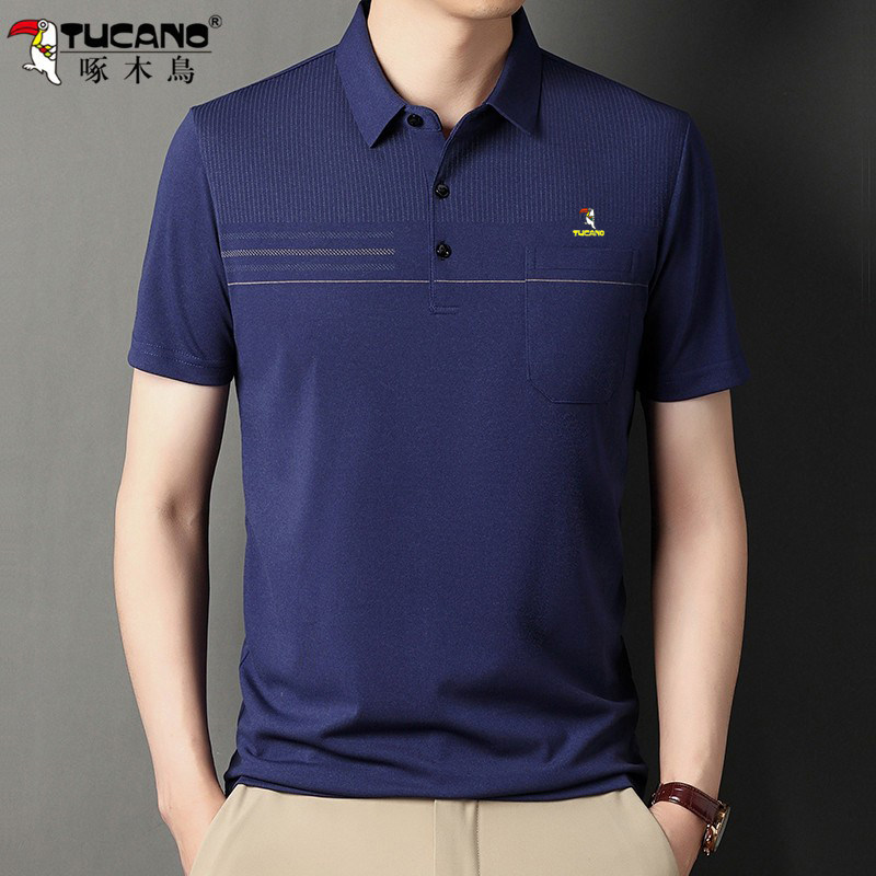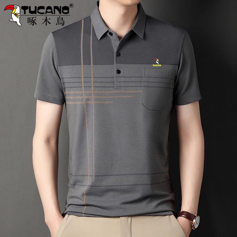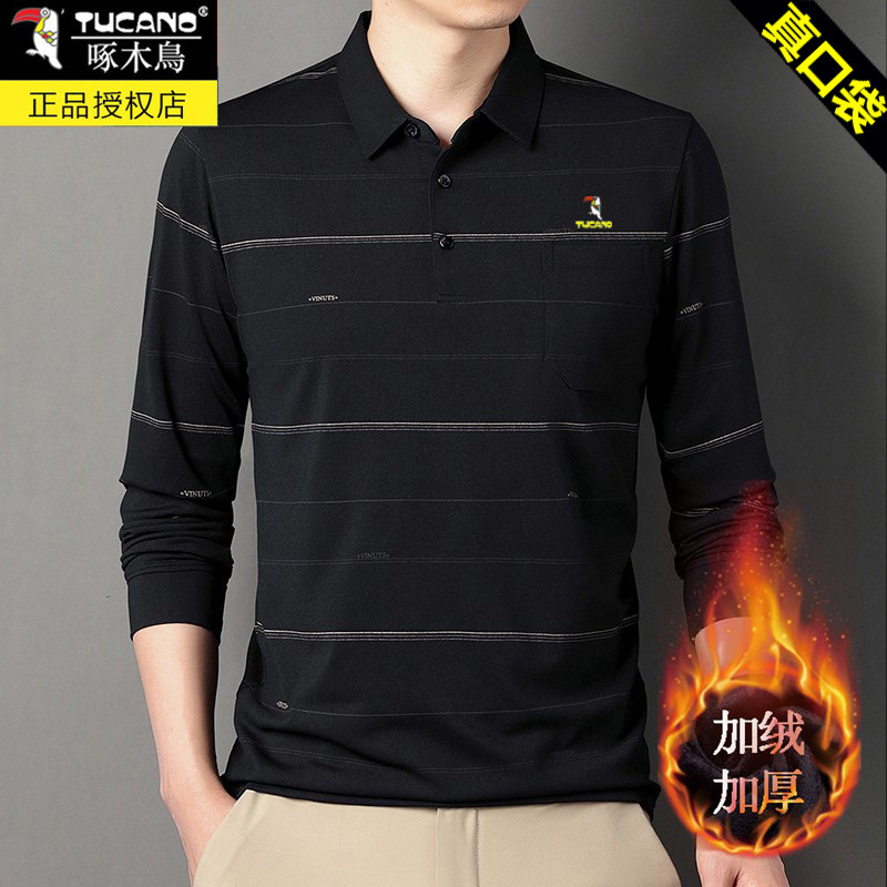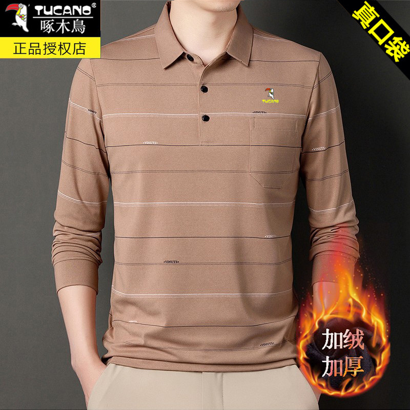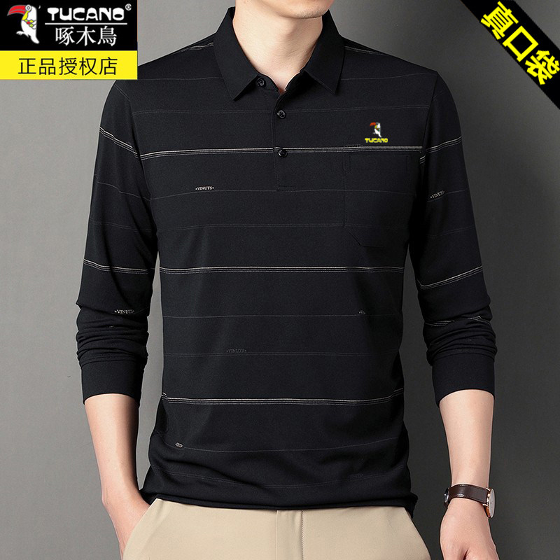HomeProducts啄木鸟爸爸春装长袖t恤纯棉父亲中老年秋衣男有领口袋打底衫上衣
