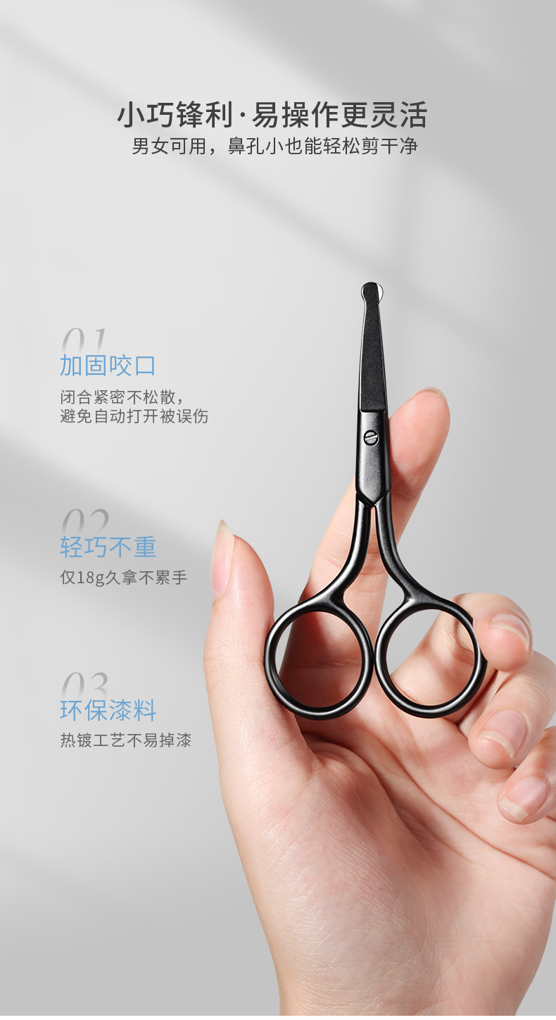 古迪德国精工鼻毛修剪器男士鼻毛剪刀圆头手动鼻孔安全剃刮去神器