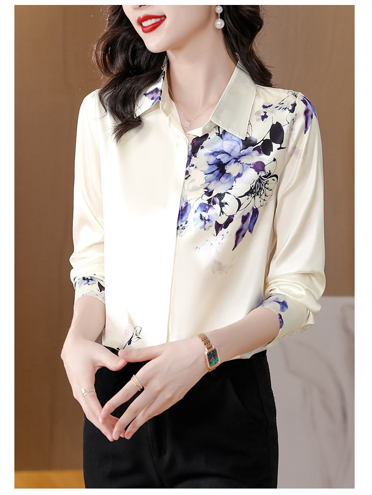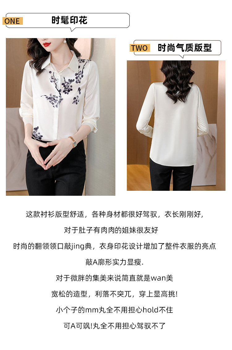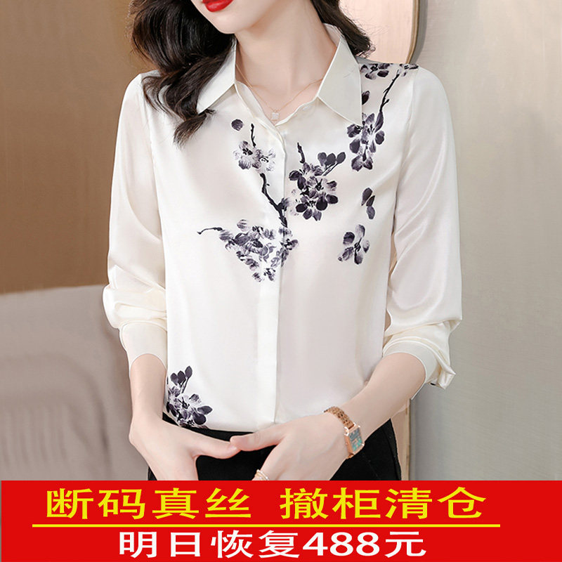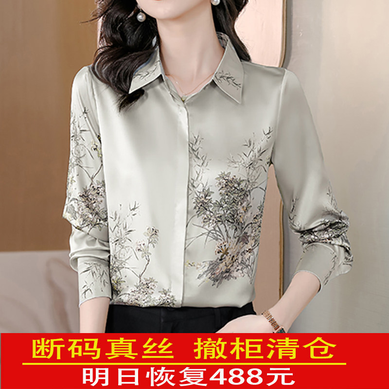 动感 哥弟真丝衬衫女上衣2026春秋装新款韩版正品印花桑蚕丝衬衣