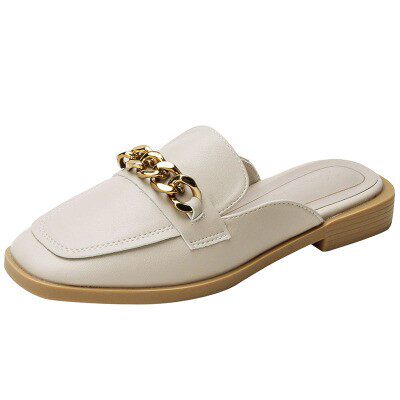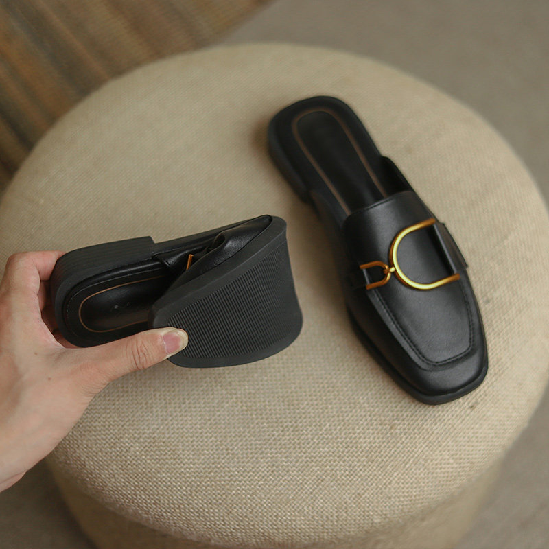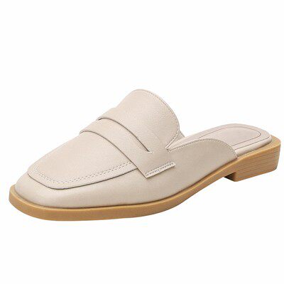 半拖单鞋女外穿夏季2023新款时尚软皮凉鞋包头凉拖平底懒人穆勒鞋