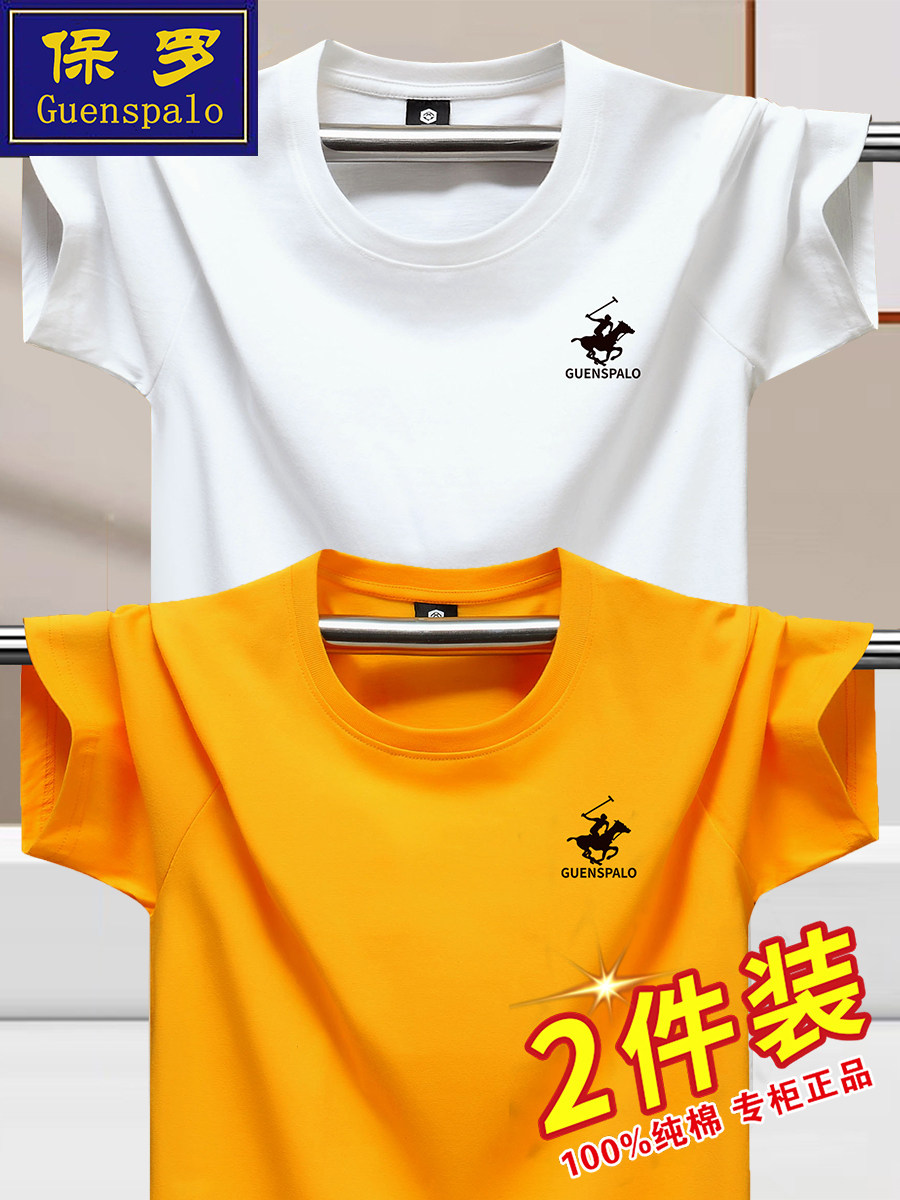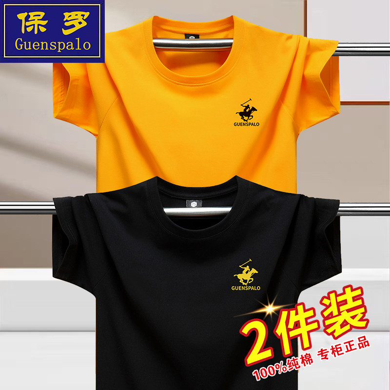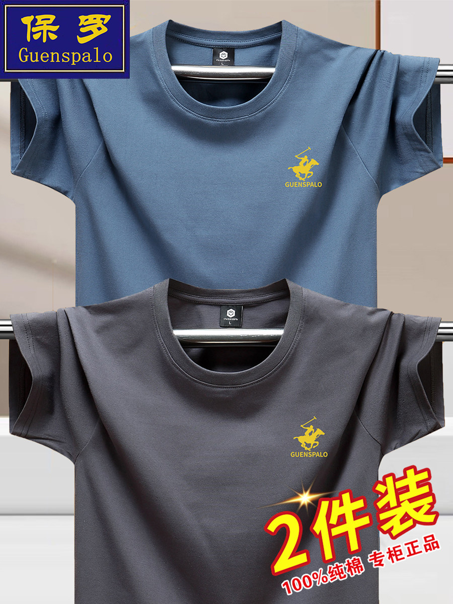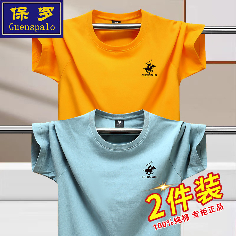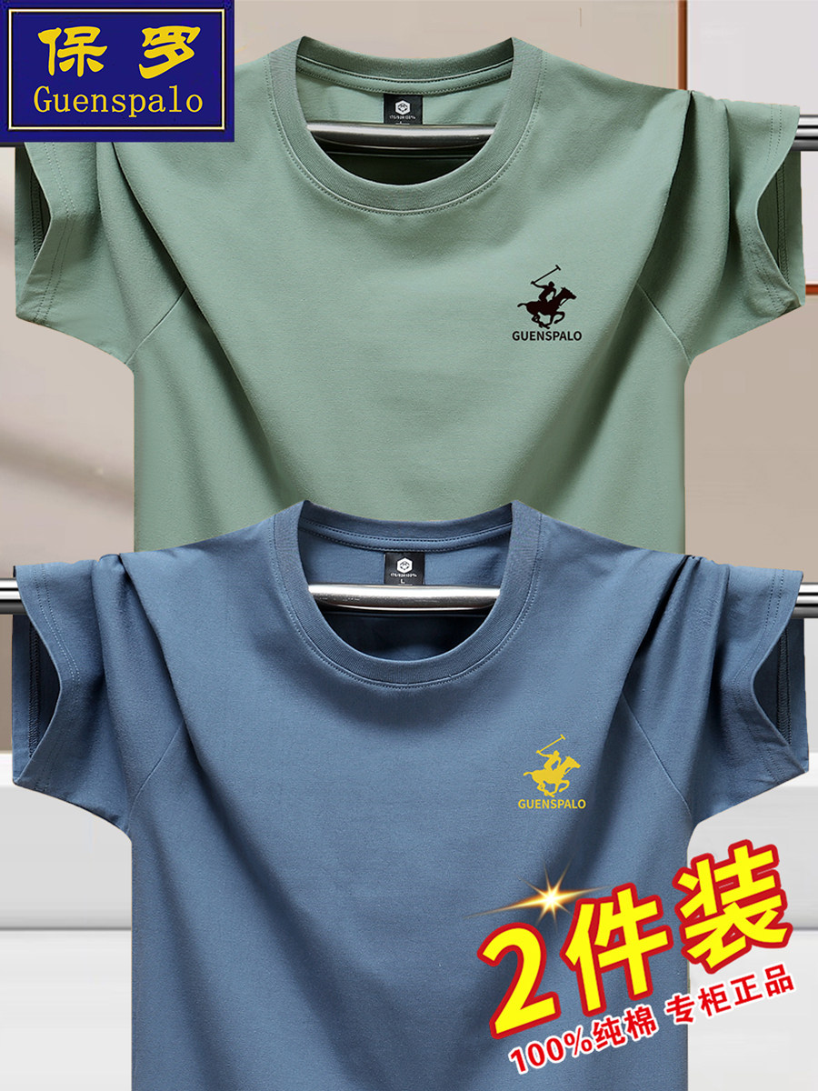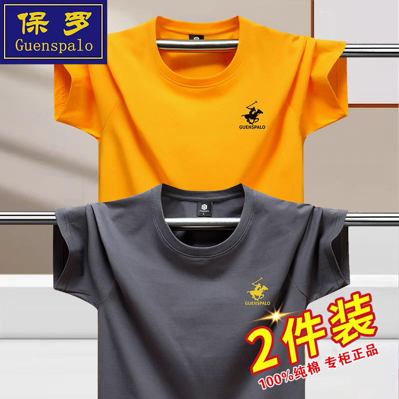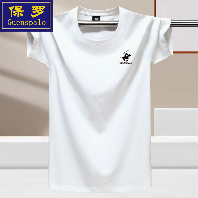 保罗正品短袖t恤男圆领纯棉薄款体恤宽松休闲大码半袖纯色打底衫