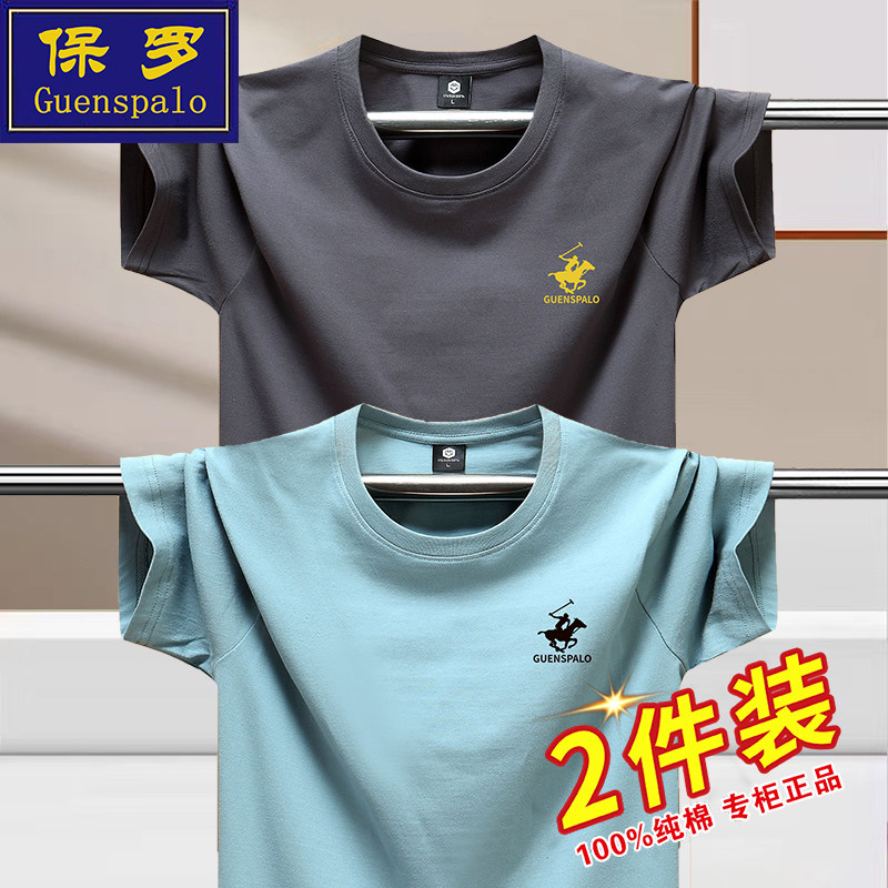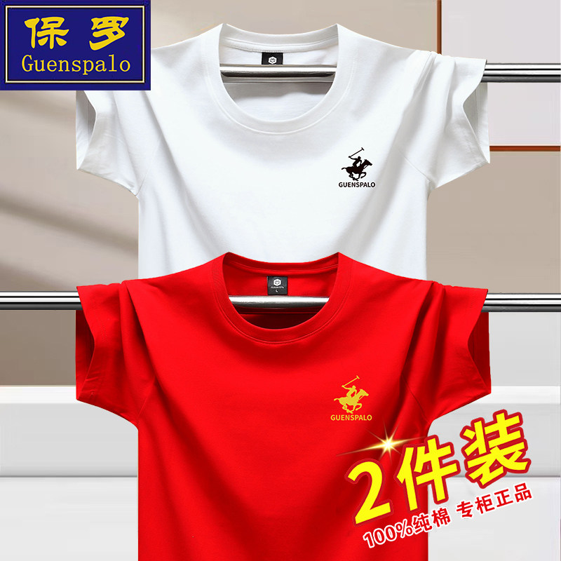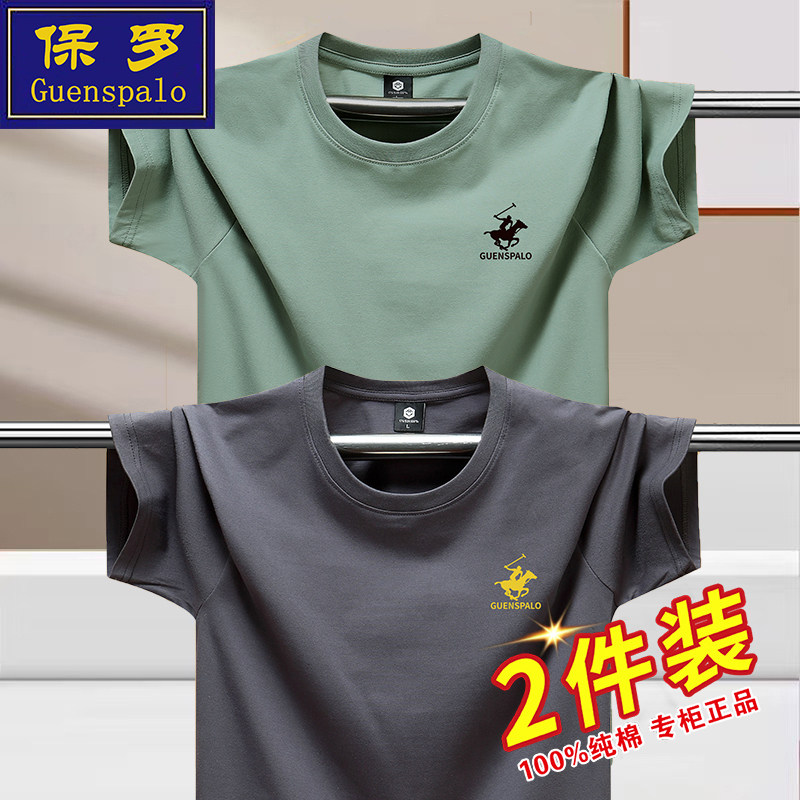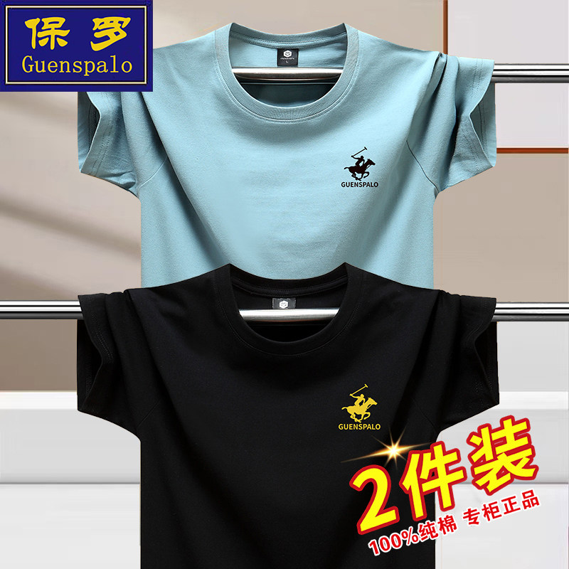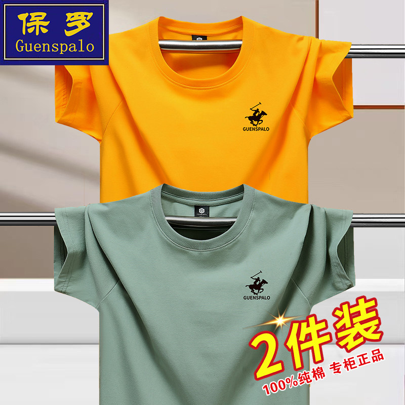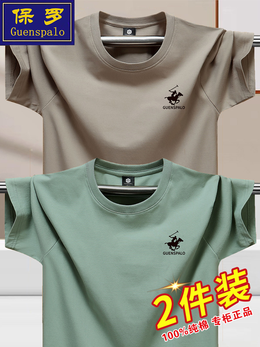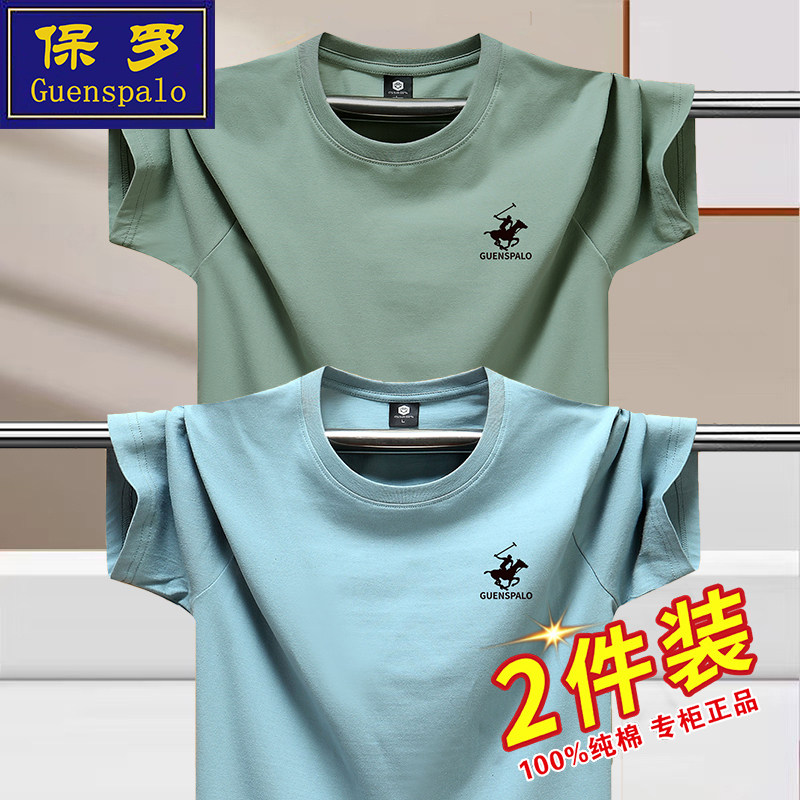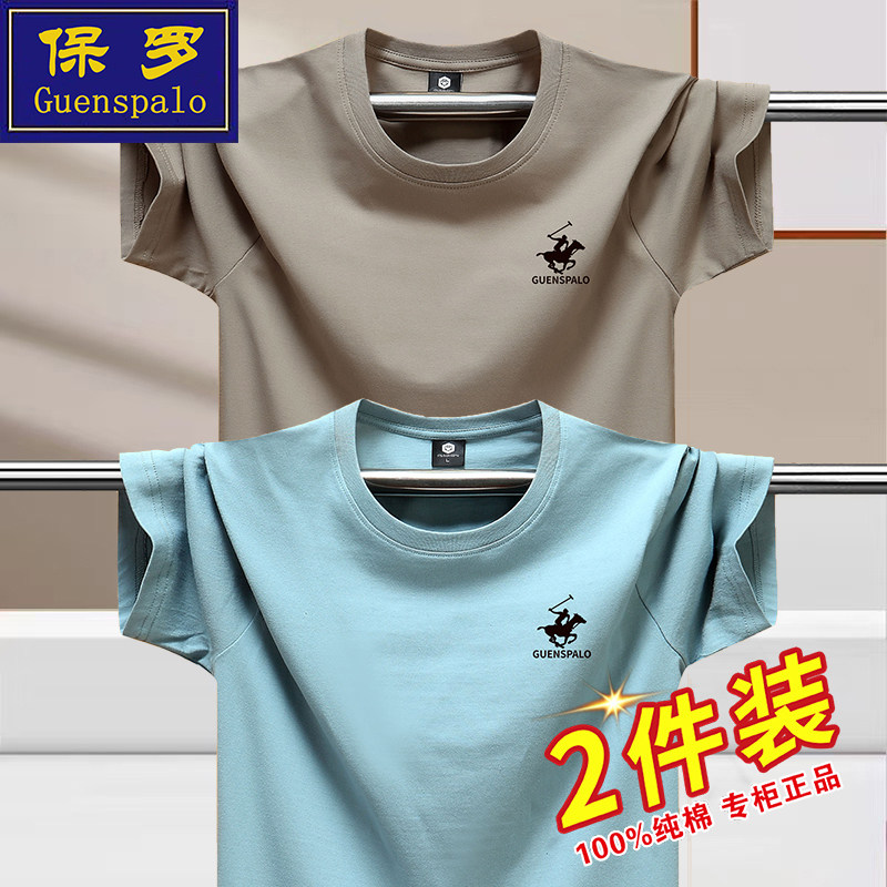 保罗正品短袖t恤男圆领纯棉薄款体恤宽松休闲大码半袖纯色打底衫