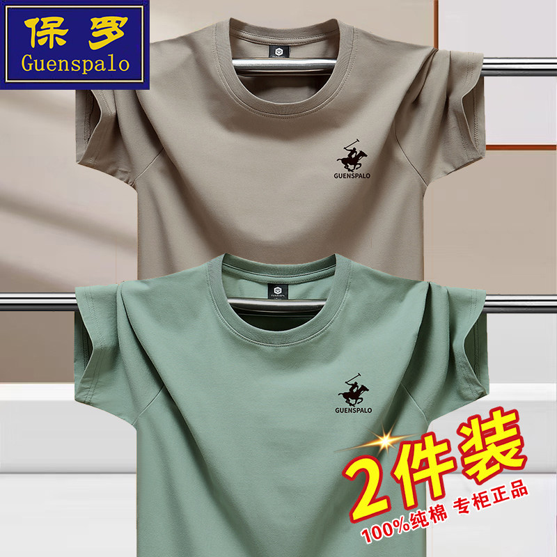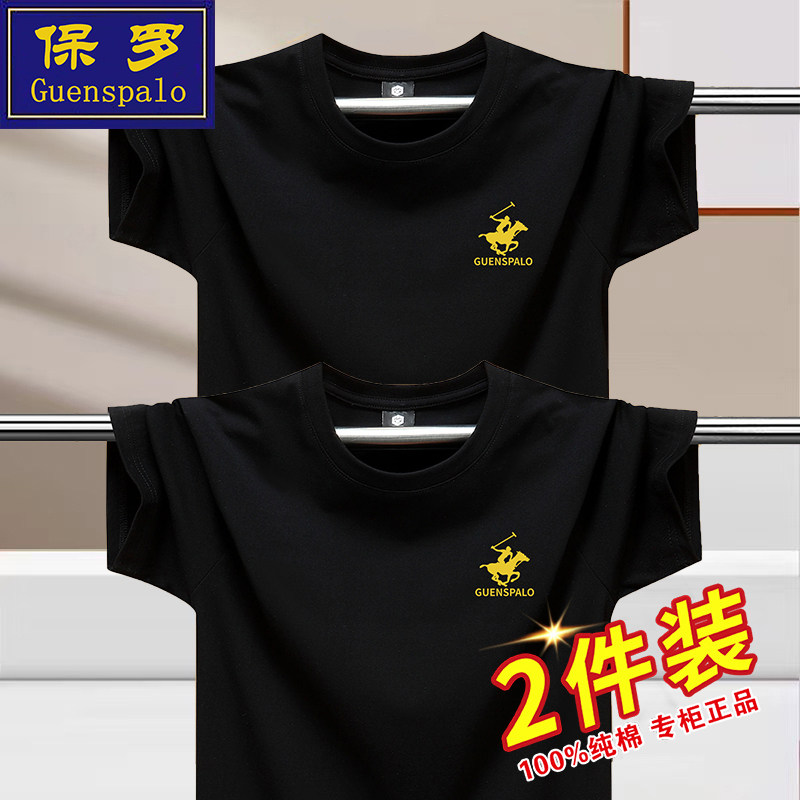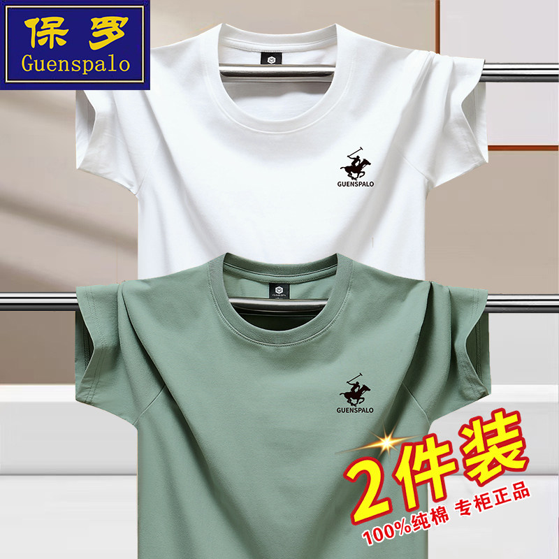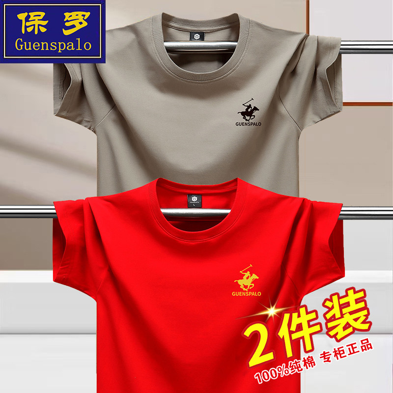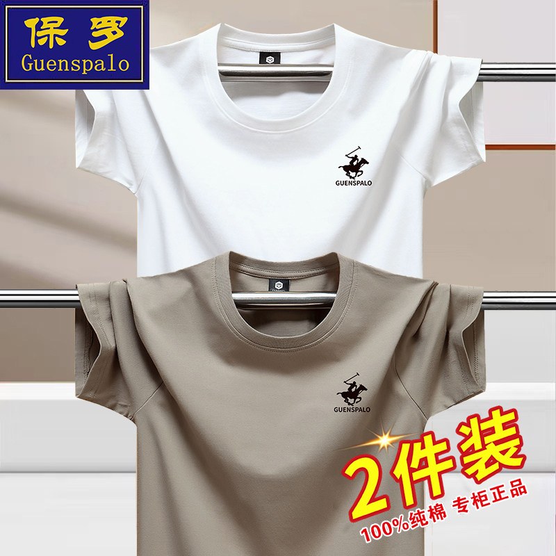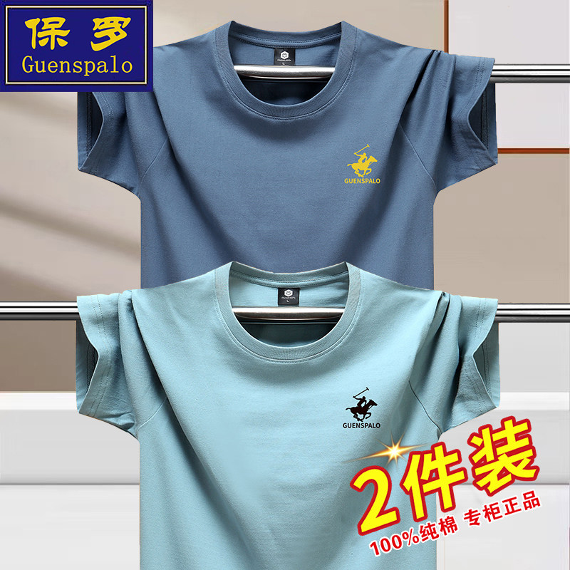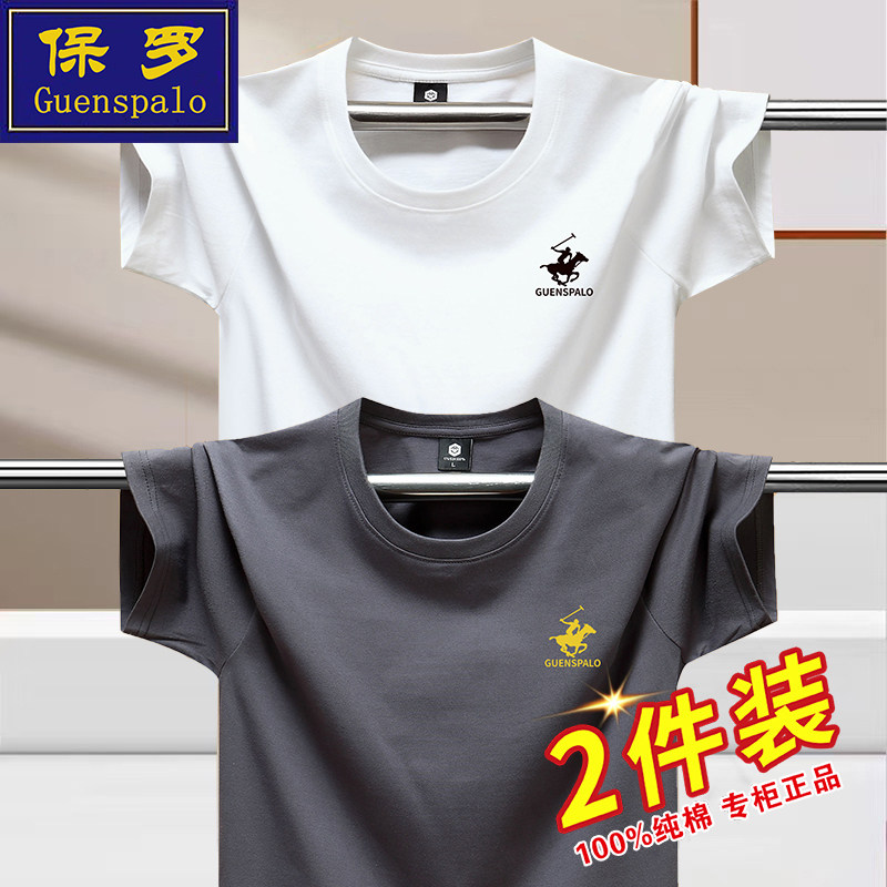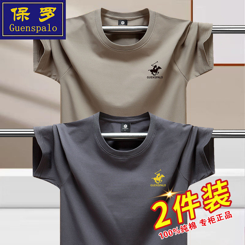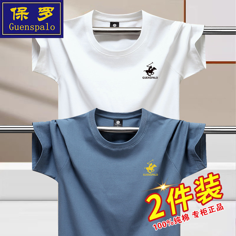 保罗正品短袖t恤男圆领纯棉薄款体恤宽松休闲大码半袖纯色打底衫
