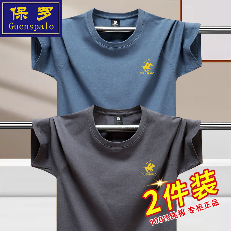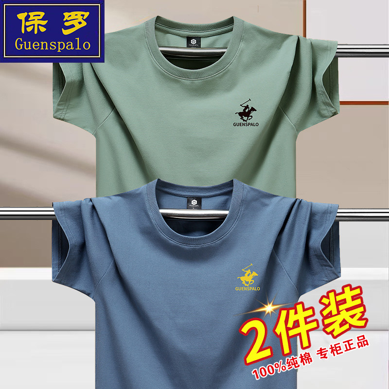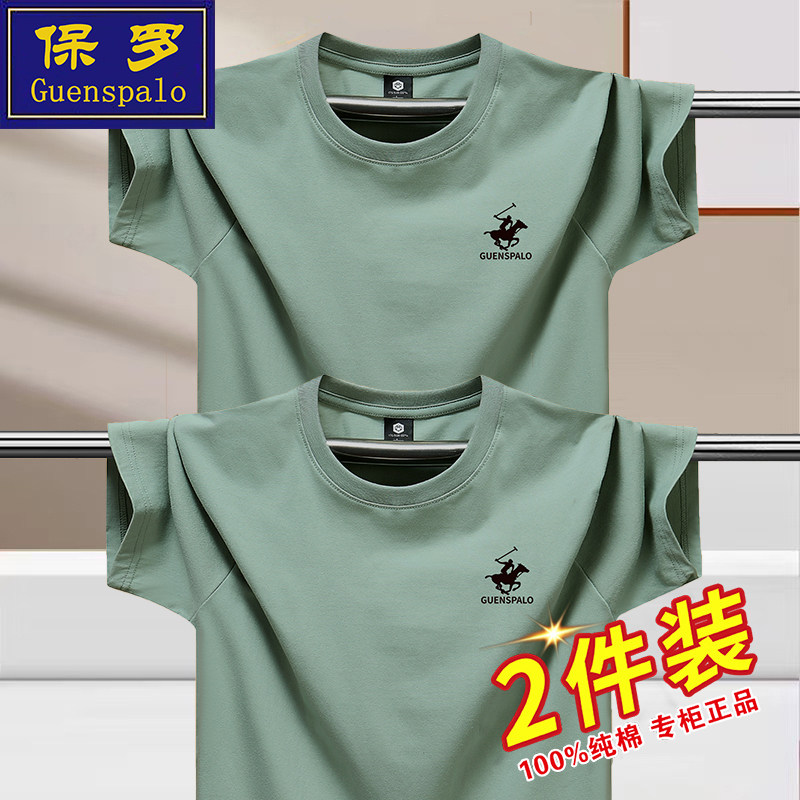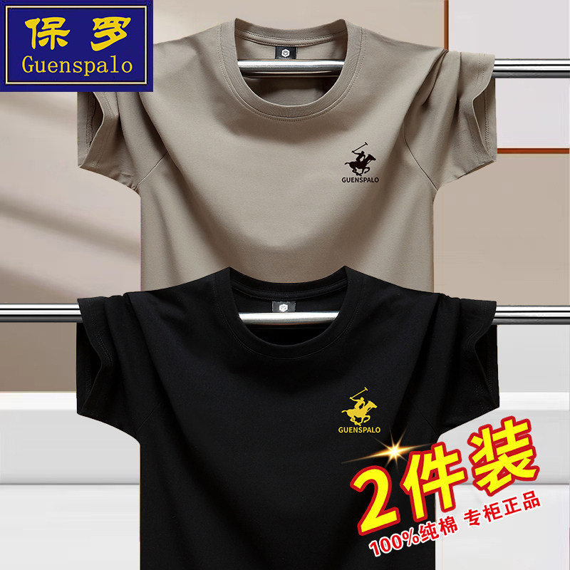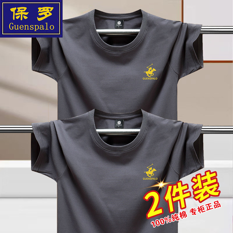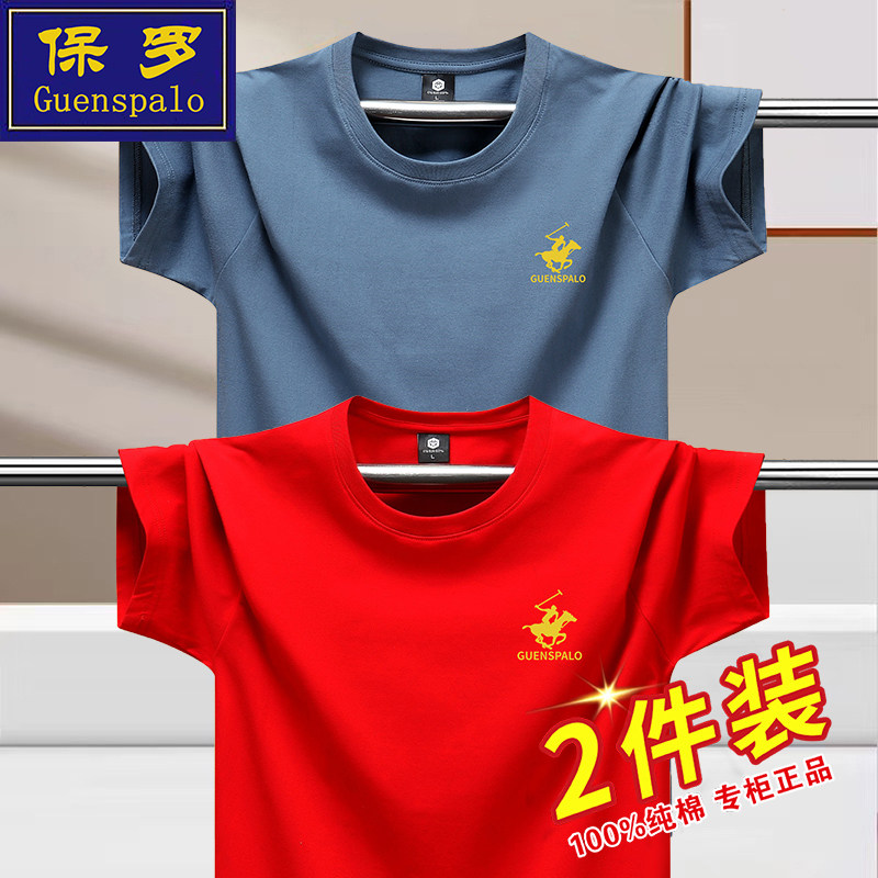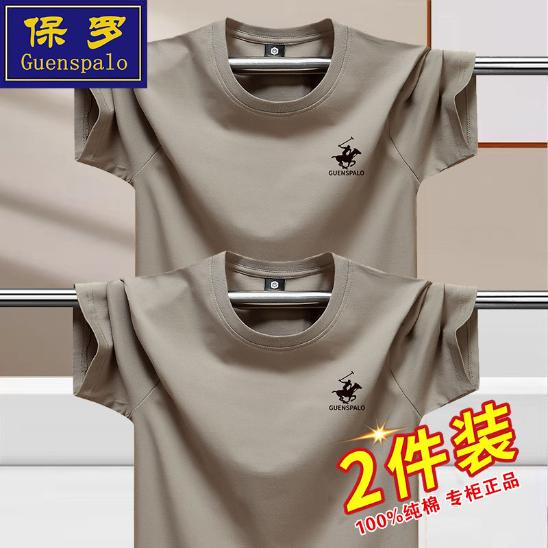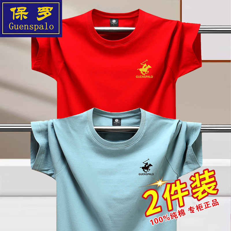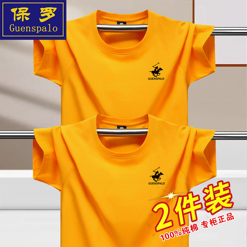 保罗正品短袖t恤男圆领纯棉薄款体恤宽松休闲大码半袖纯色打底衫