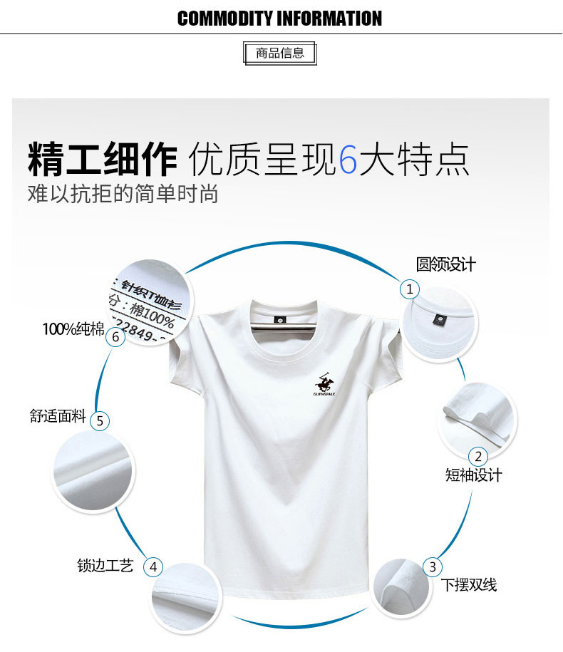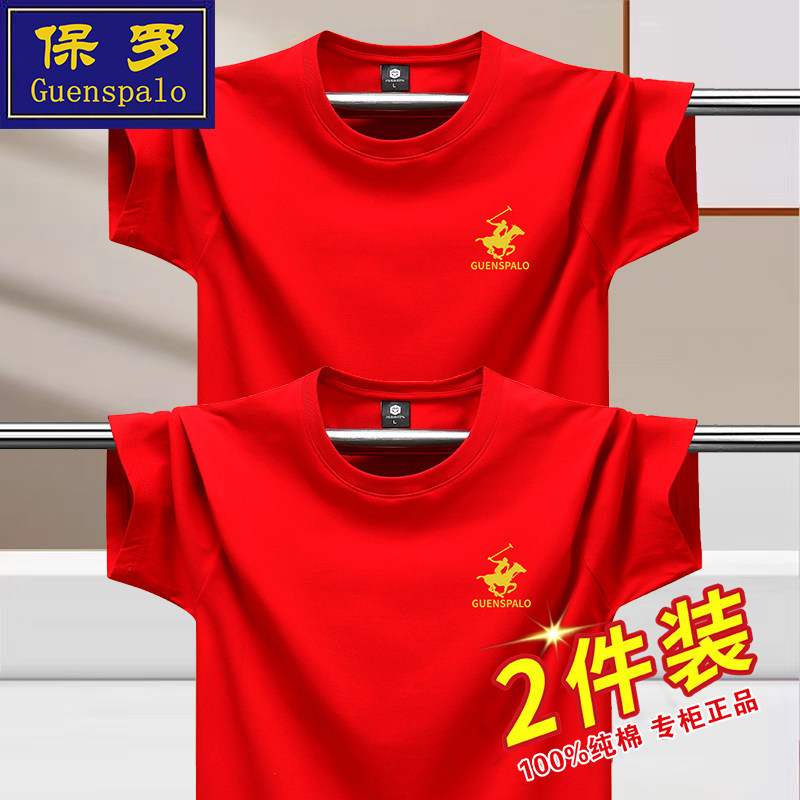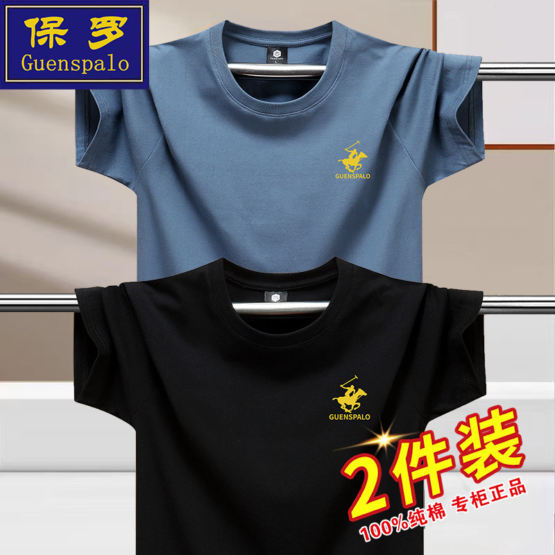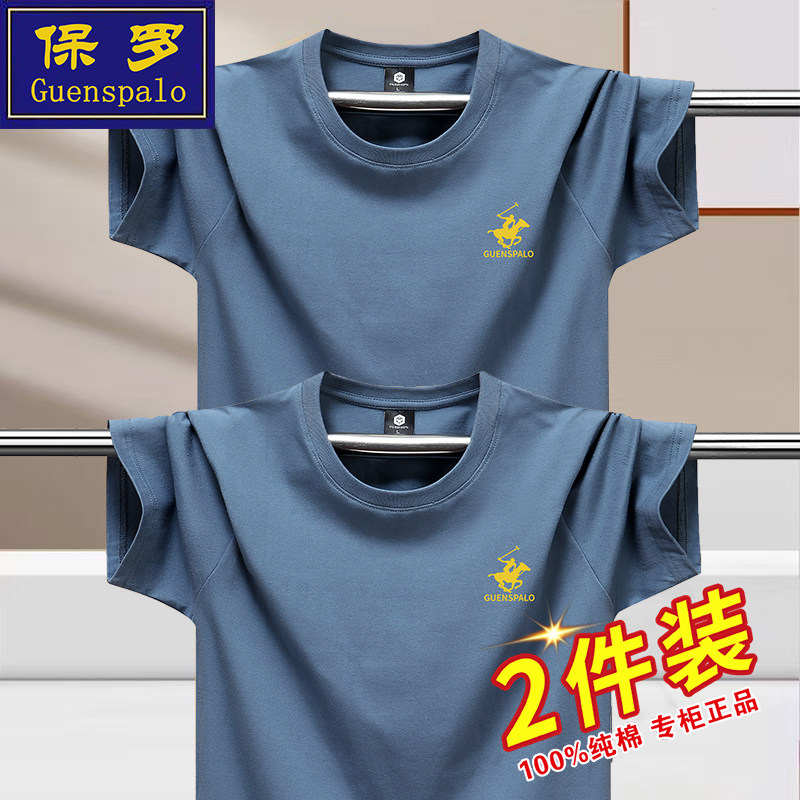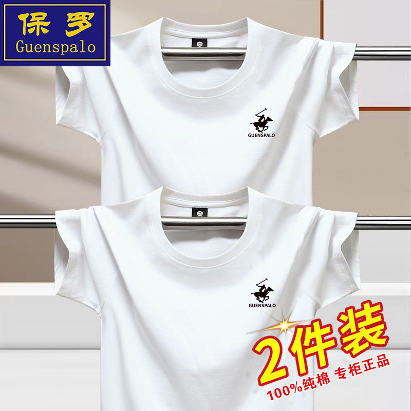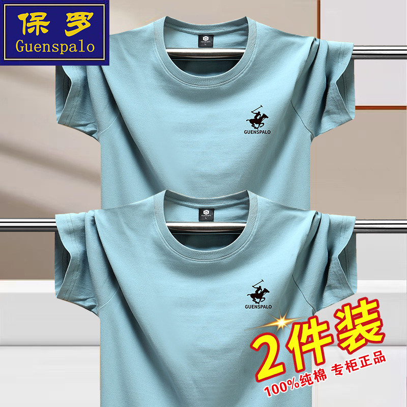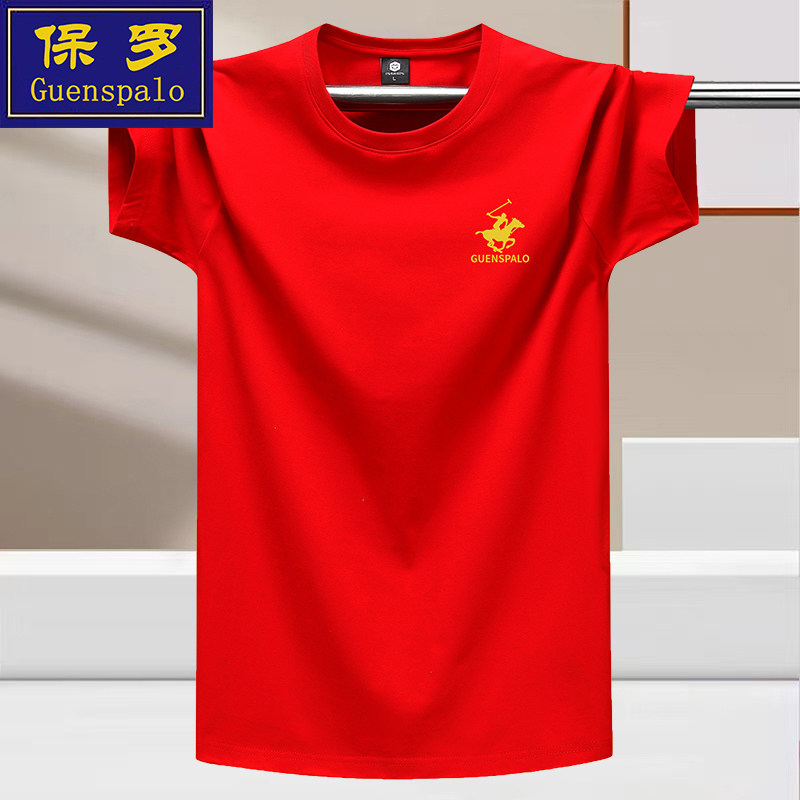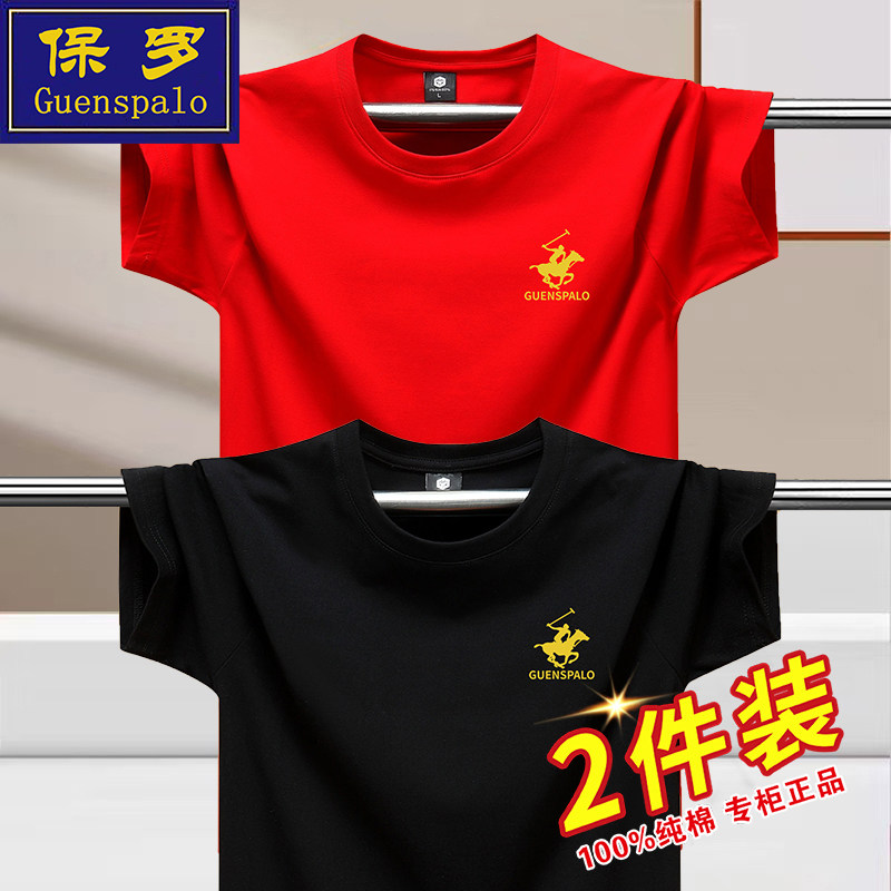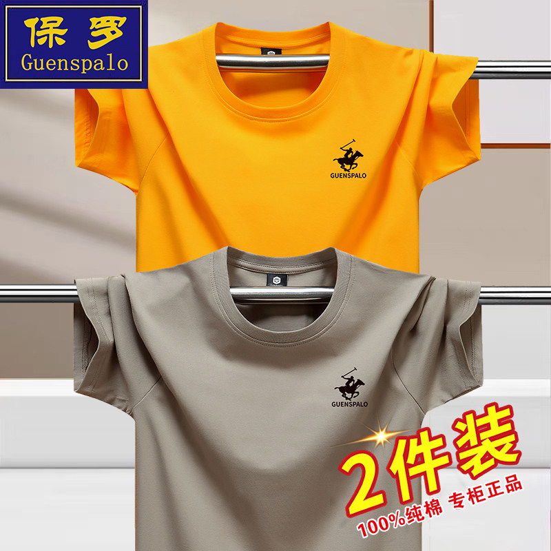 保罗正品短袖t恤男圆领纯棉薄款体恤宽松休闲大码半袖纯色打底衫