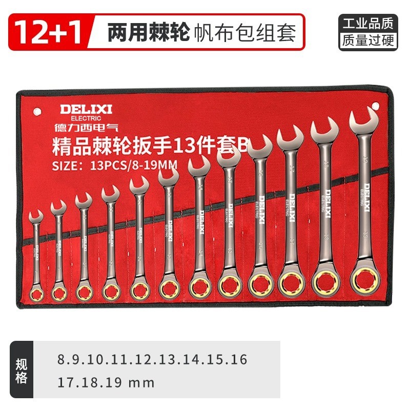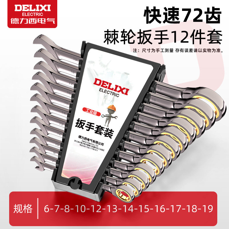 HomeProducts德力西两用快速棘轮扳手套装省力自动梅花开口13快轮万能工具大全