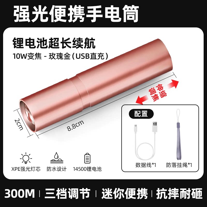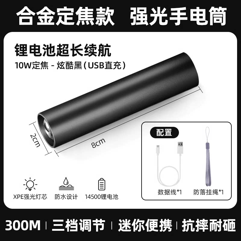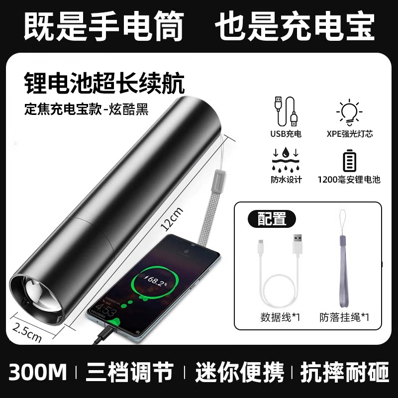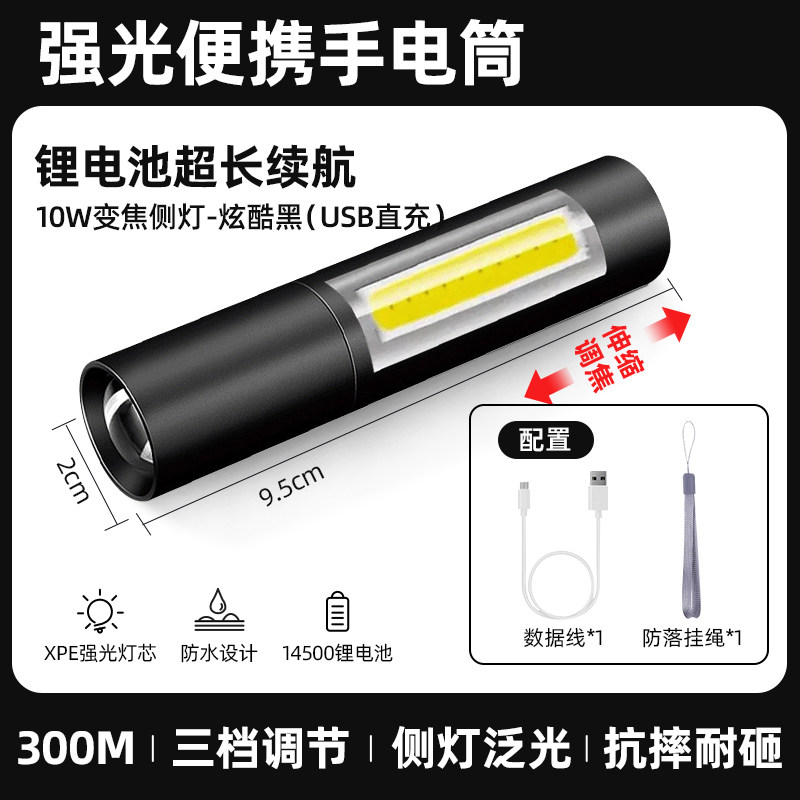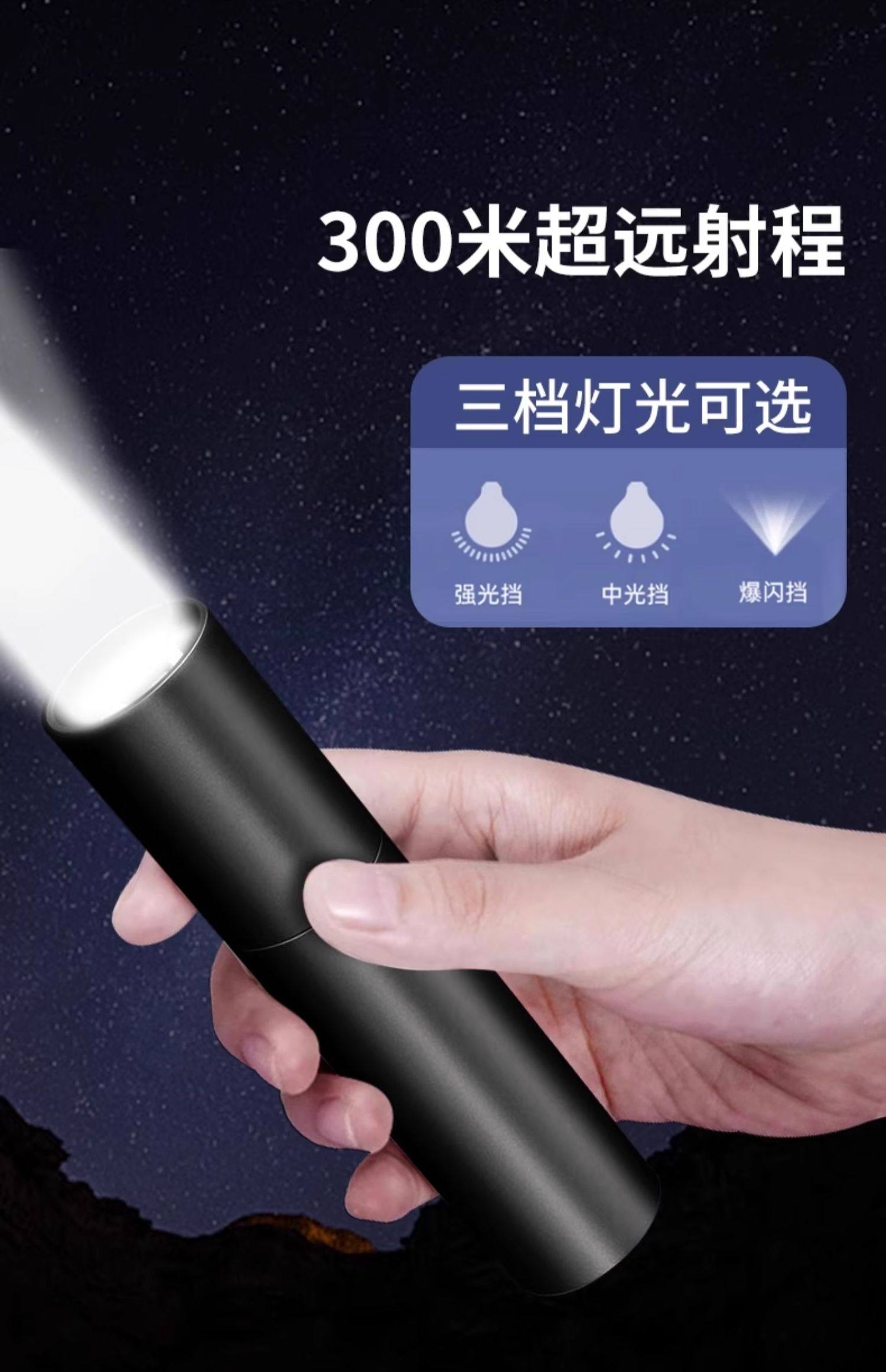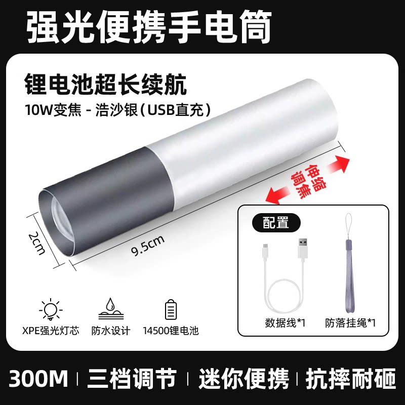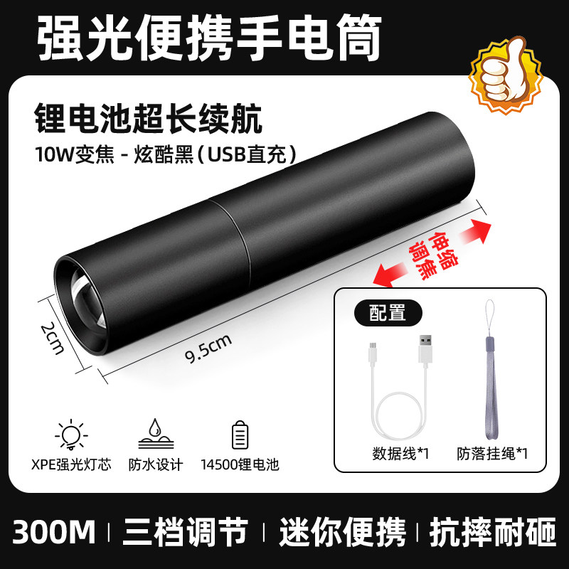【镇店之宝❤️旗舰款】10W伸缩变焦+3挡调节+防落挂绳+超长续航 +USB充电(炫酷黑)