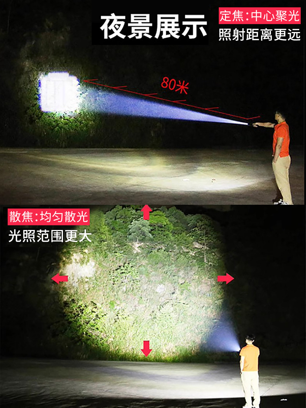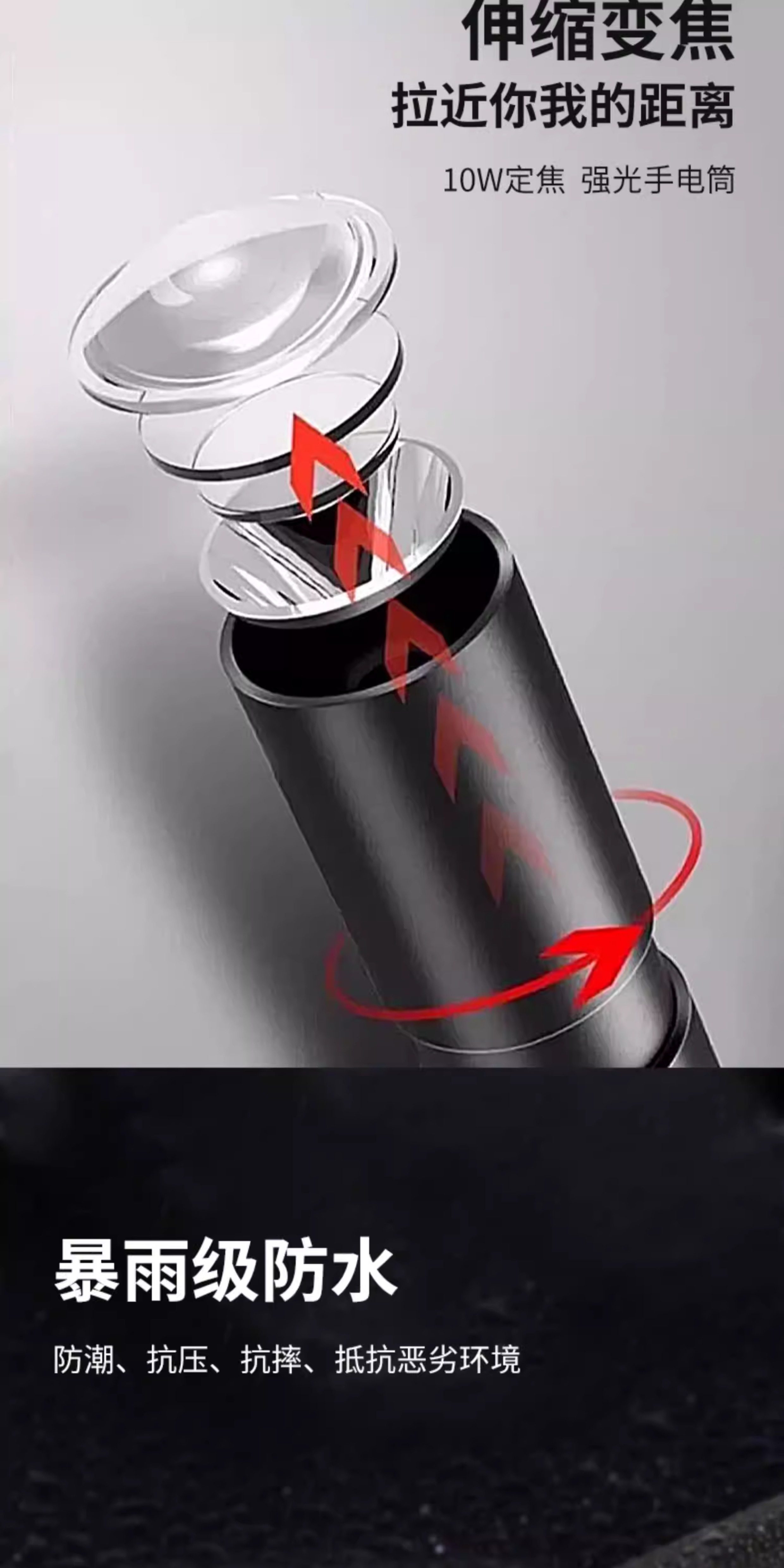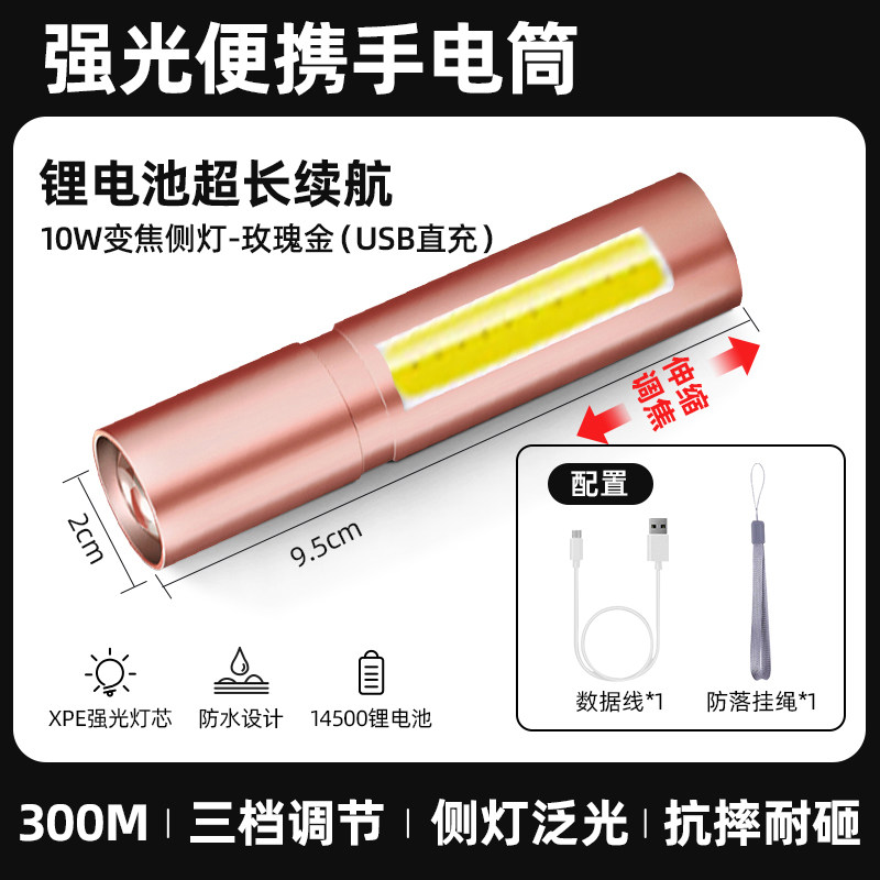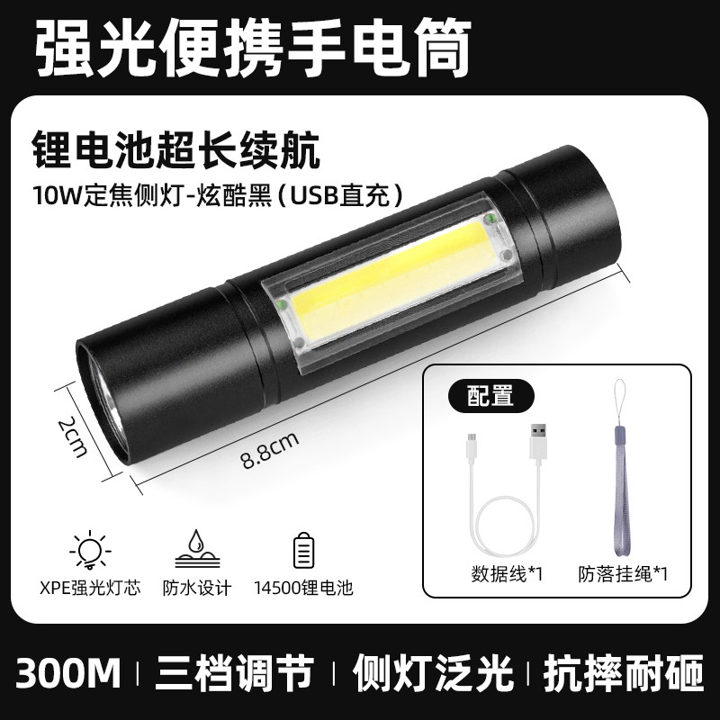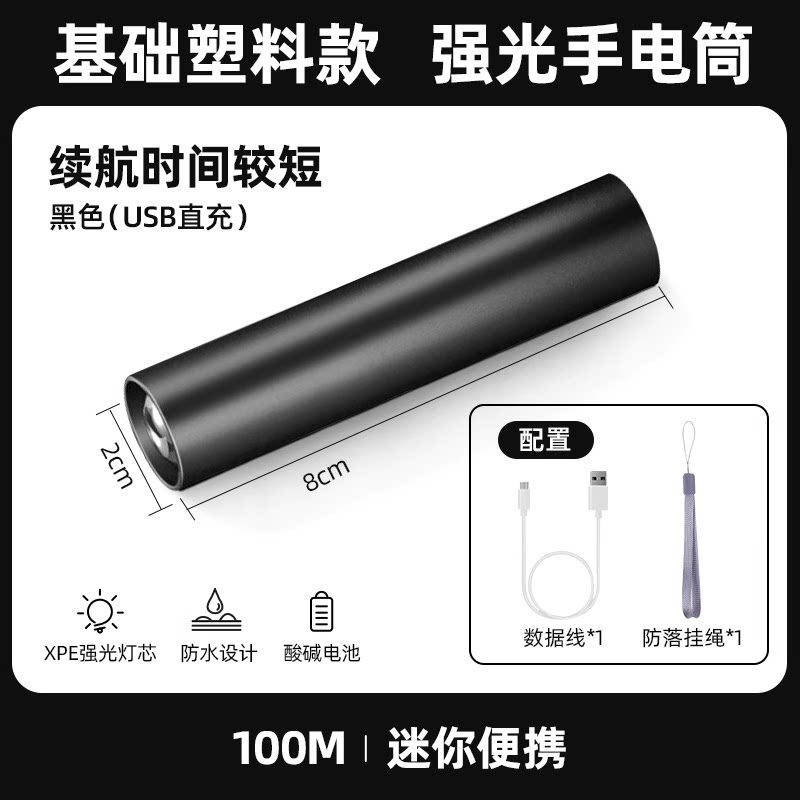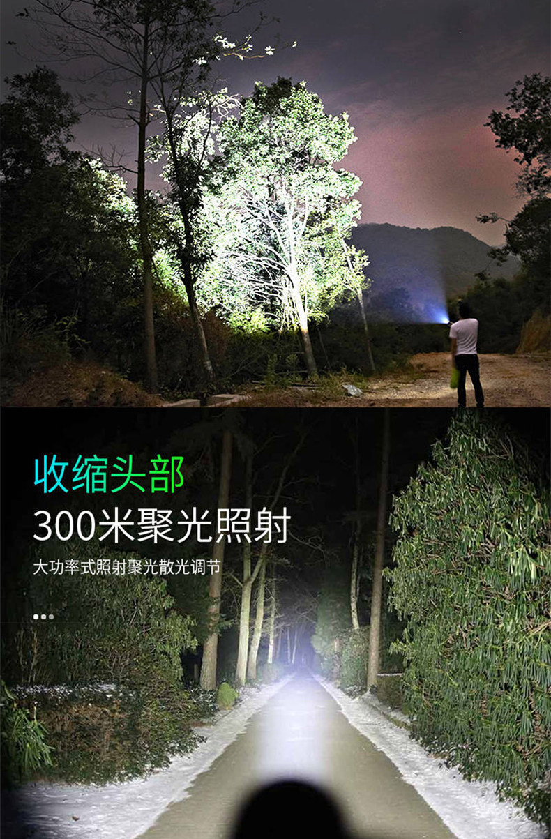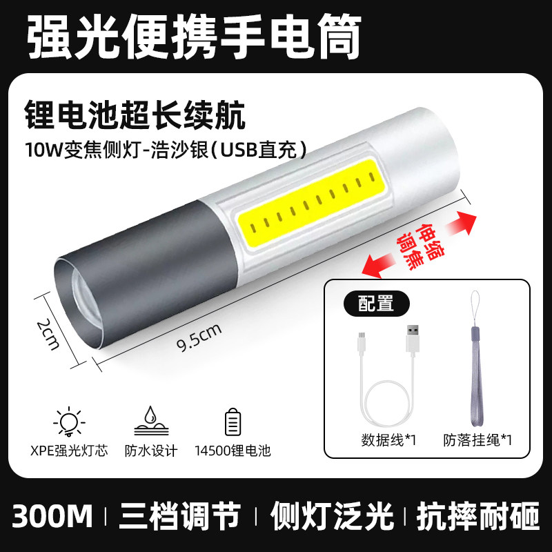 【镇店之宝❤️旗舰款】10W伸缩变焦+3挡调节+防落挂绳+超长续航 +USB充电(炫酷黑)