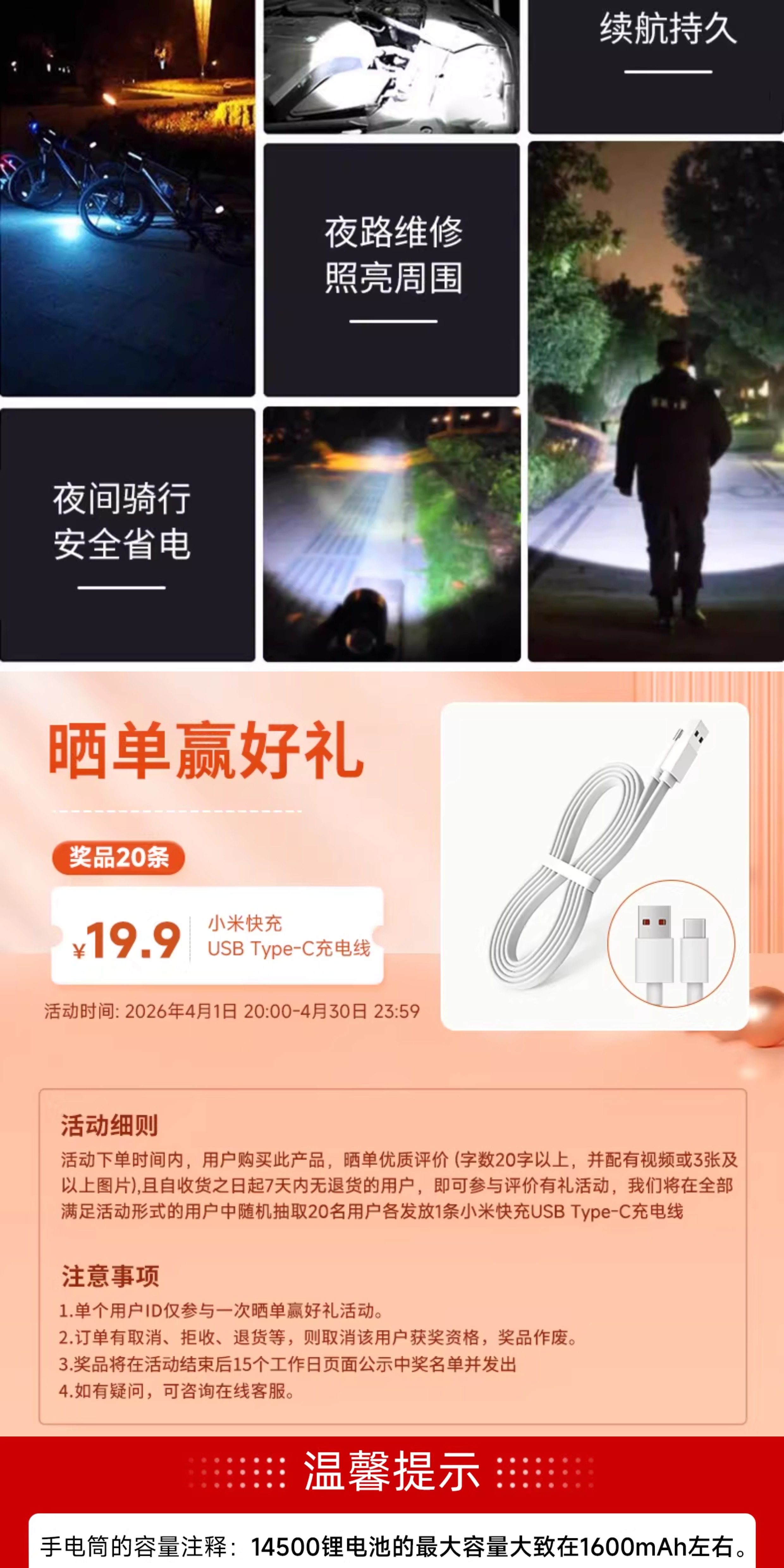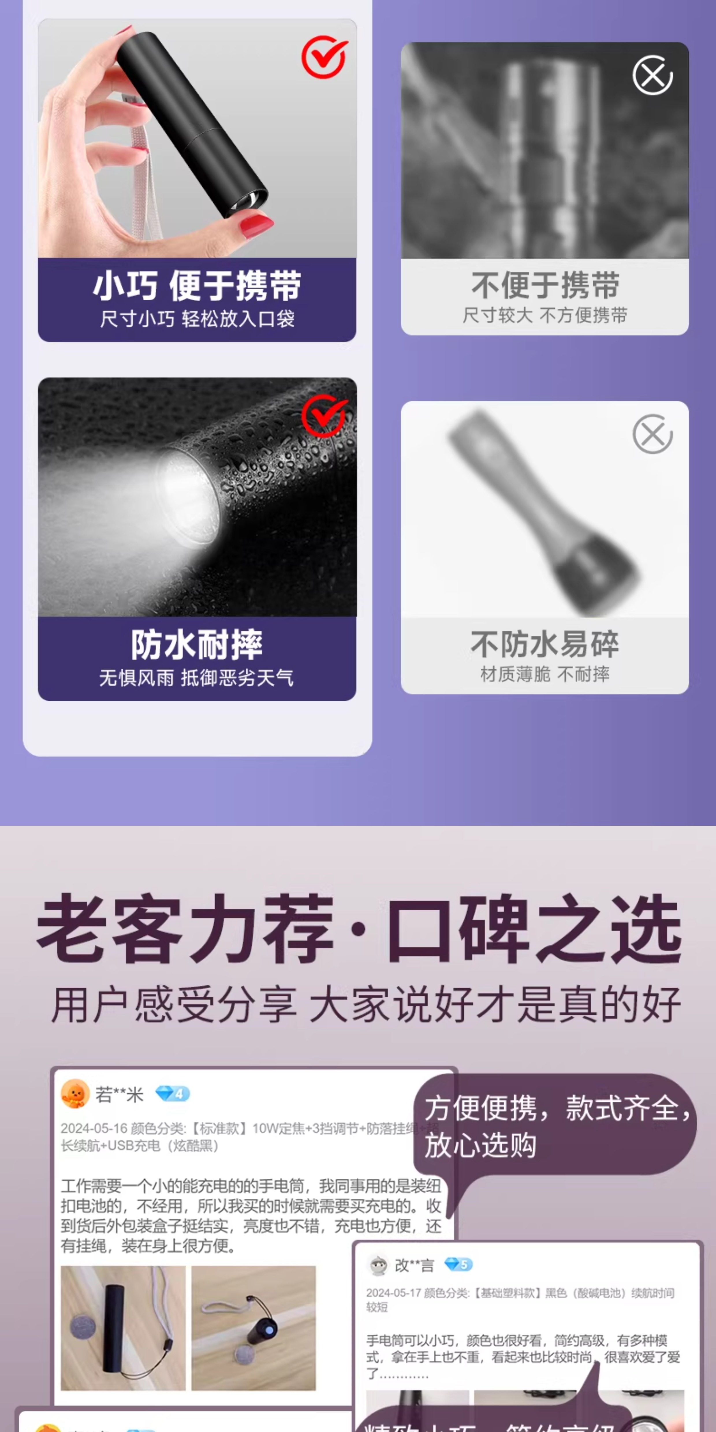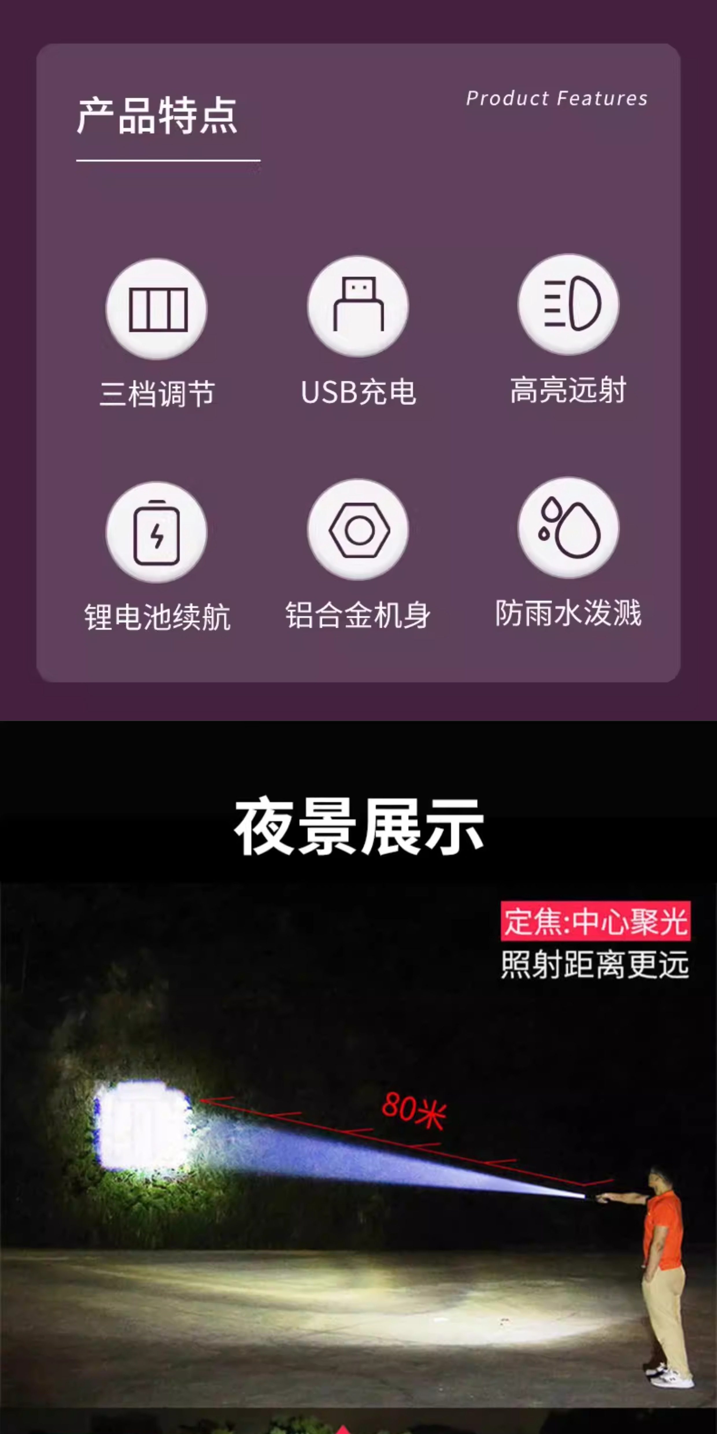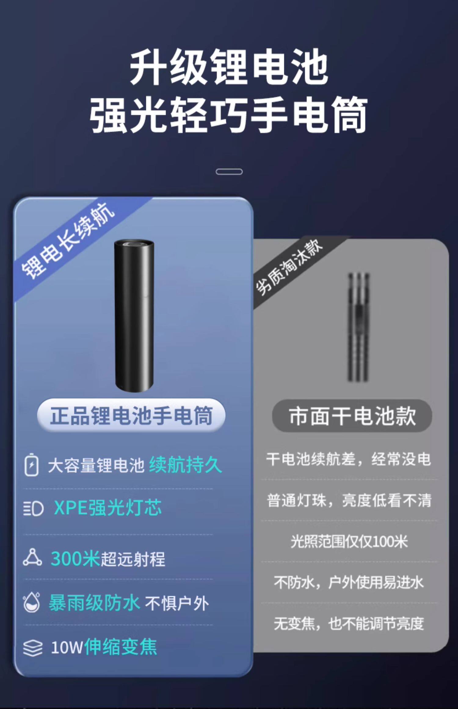 【镇店之宝❤️旗舰款】10W伸缩变焦+3挡调节+防落挂绳+超长续航 +USB充电(炫酷黑)